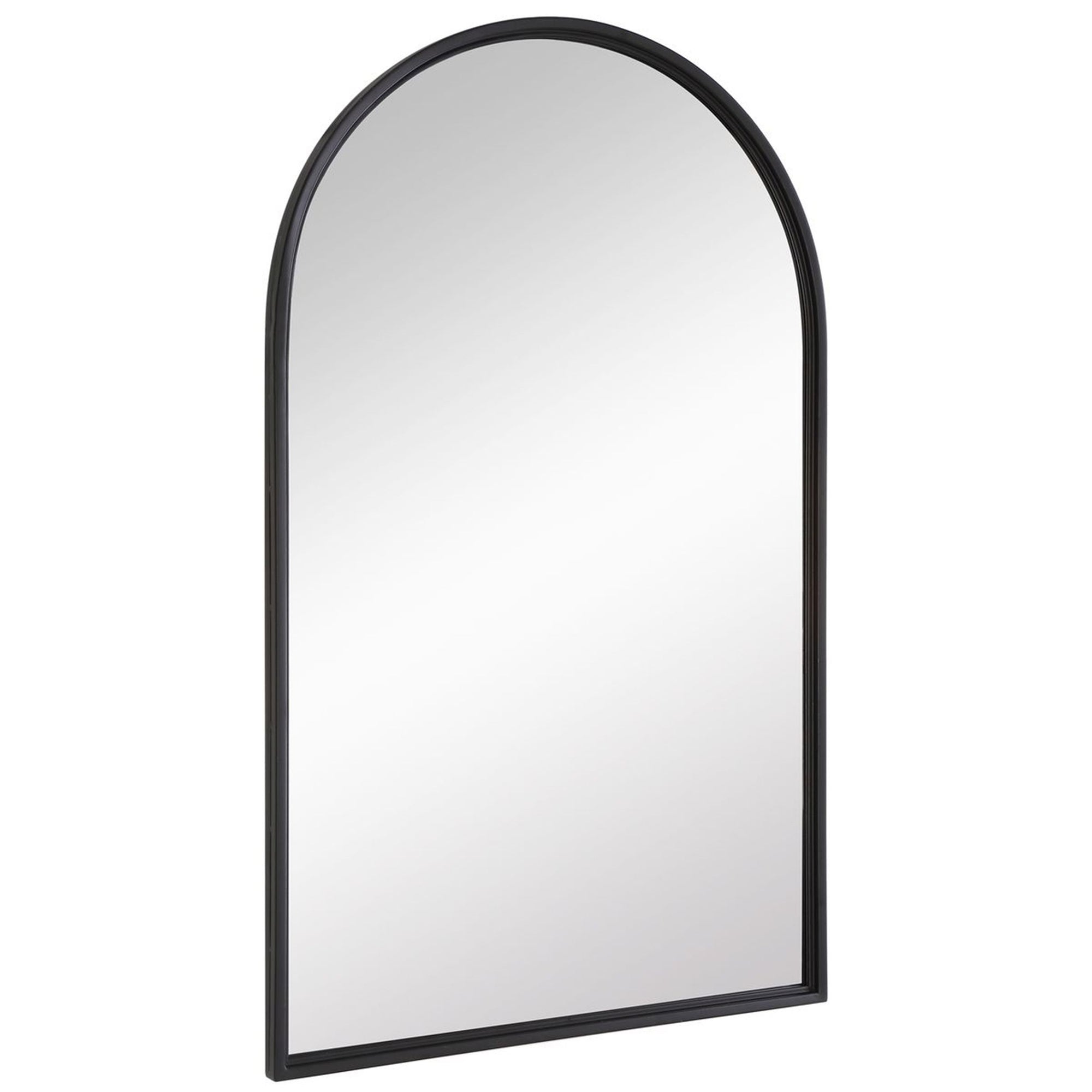 The Liana Mirror features a clean, minimalist metal arch-top design with a thin frame profile, finished in matte black. Perfect for bathrooms, foyers, or living spaces, it may be hung either vertically or horizontally.