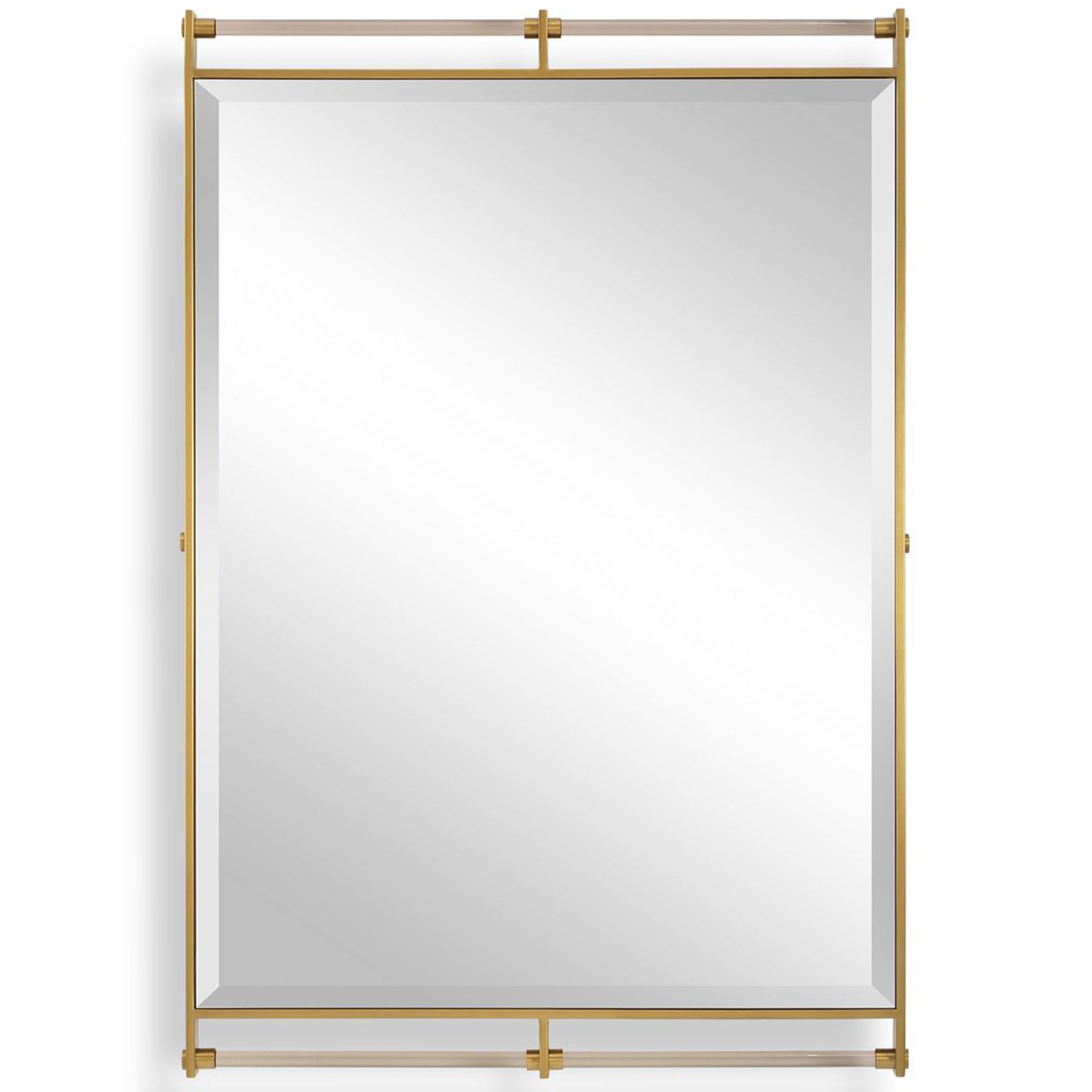 The Ripoll Mirror features a striking industrial-inspired design with a clean-lined frame. Unique amber bars accent the top and bottom of the frame, adding a sophisticated architectural touch to the piece. This versatile wall mirror may be hung horizontal or vertical, allowing it to adapt perfectly to your specific room layout or decor needs. Its bold presence and refined details make the Ripoll Mirror an ideal choice for an entryway, living room, or office seeking a modern, high-end look.