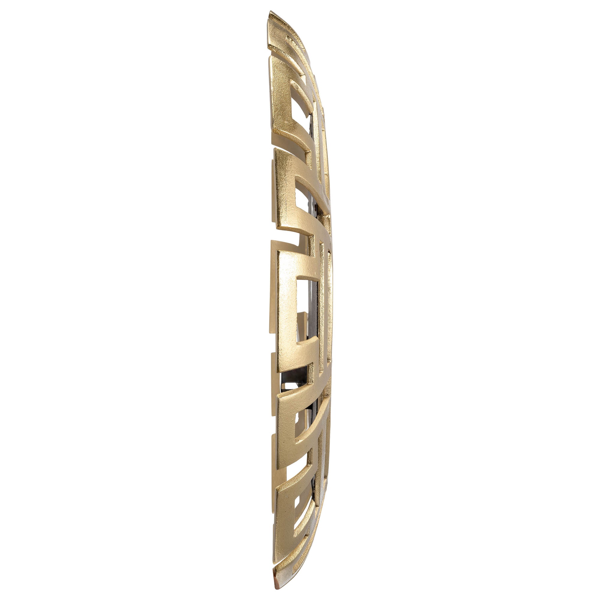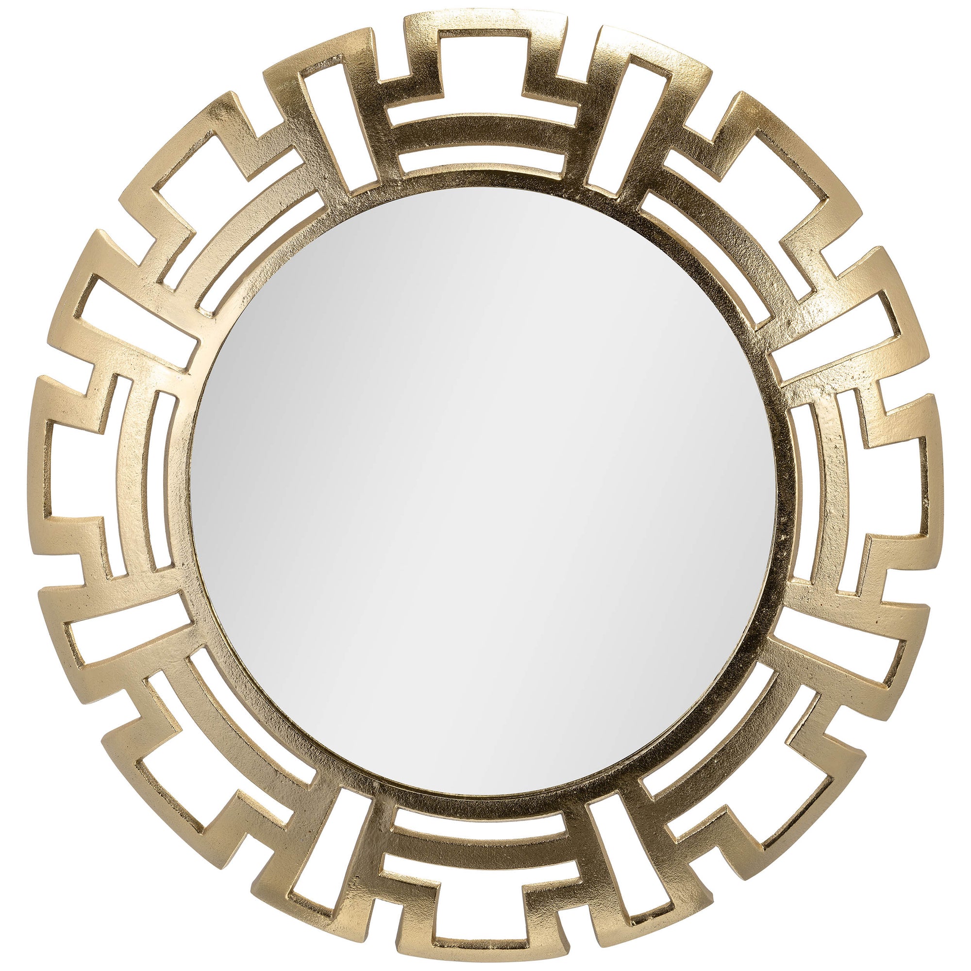 The stunning Round Mirror comes in a unique abstract tribal design and a metallic gold color to bring a bold, glam look to any space.