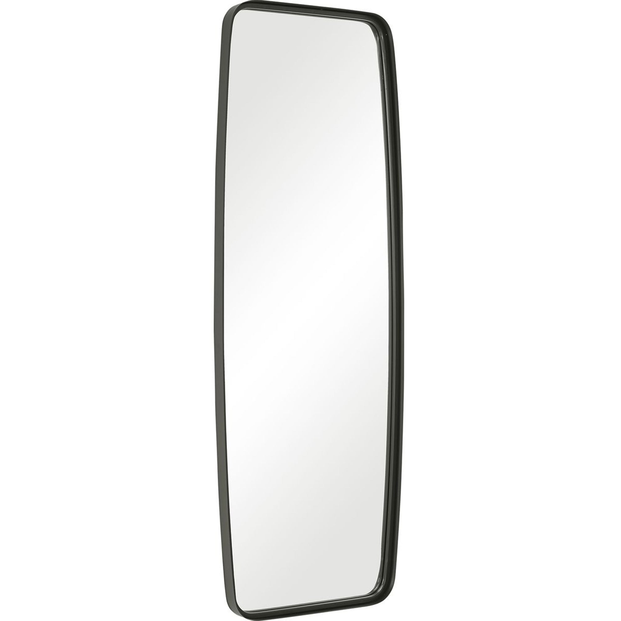 The Rowan Mirror features a shaped frame with rounded corners, crafted from a wide band of metal with a thin inner metal tubing surrounding the mirror. Finished in matte black, it adds a bold and contemporary statement. May be hung either vertically or horizontally.