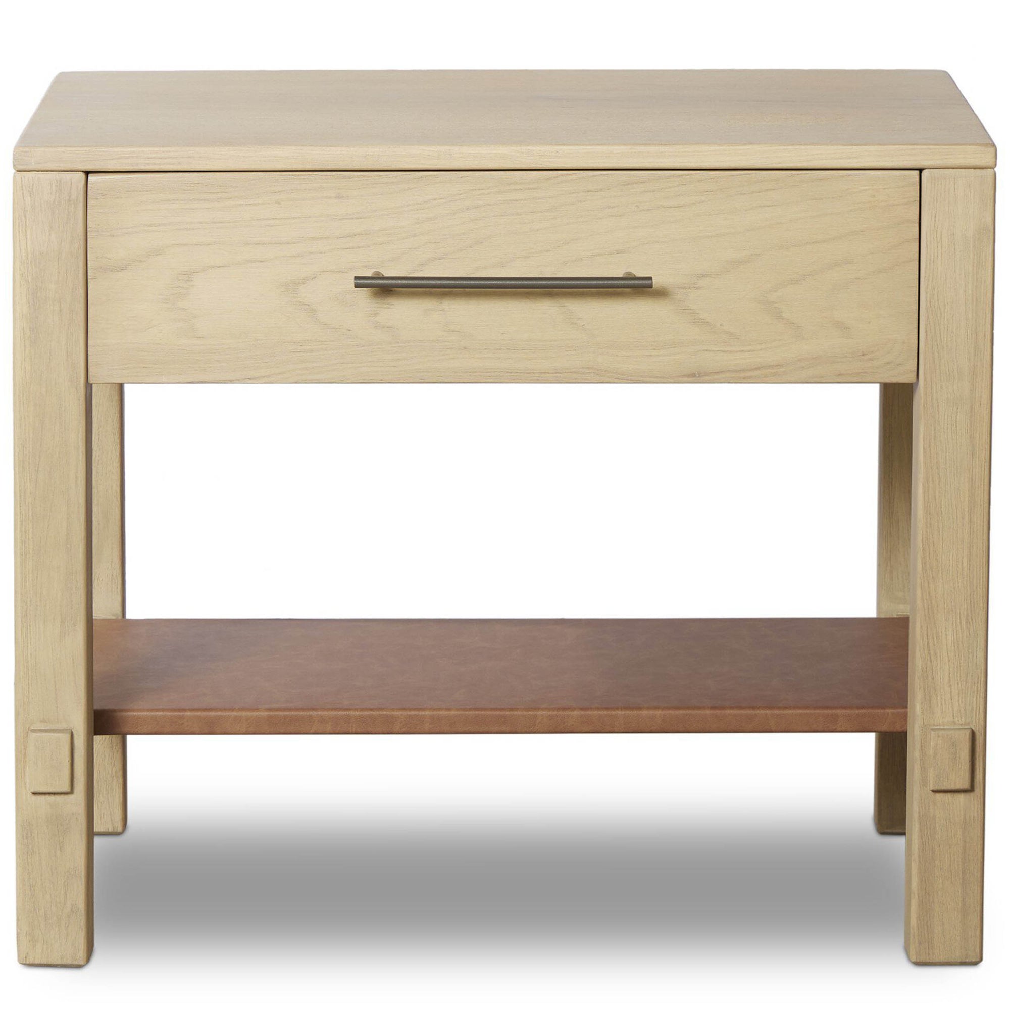 The Blake Nightstand brings Nordic-inspired simplicity to the bedside with a clean, solid ash frame and thoughtful storage. A single soft-close drawer offers concealed organization, while an open shelf wrapped in regenerated leather adds warmth and contrast. Designed with a balanced rectangular silhouette, this nightstand works seamlessly in modern and minimalist bedroom settings.