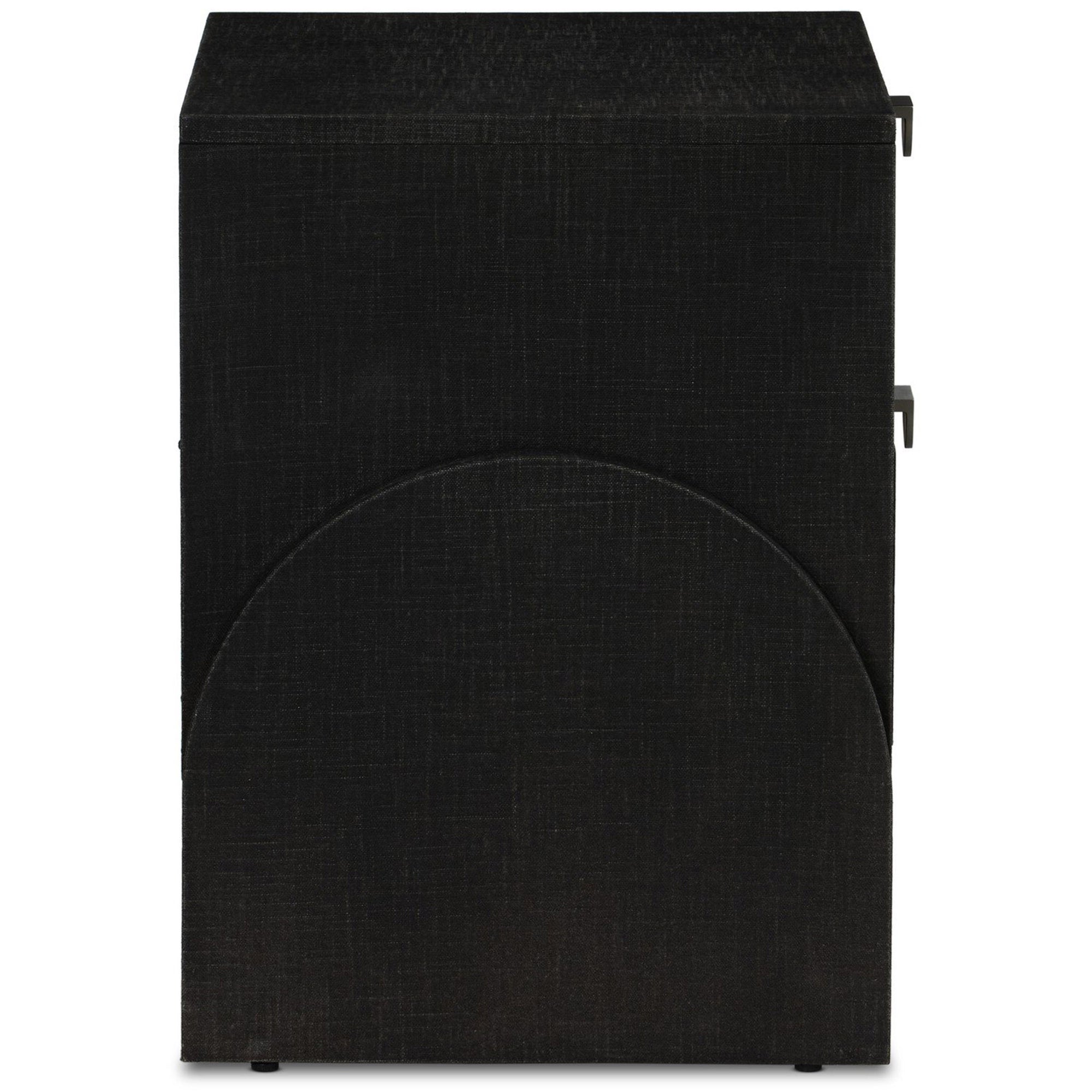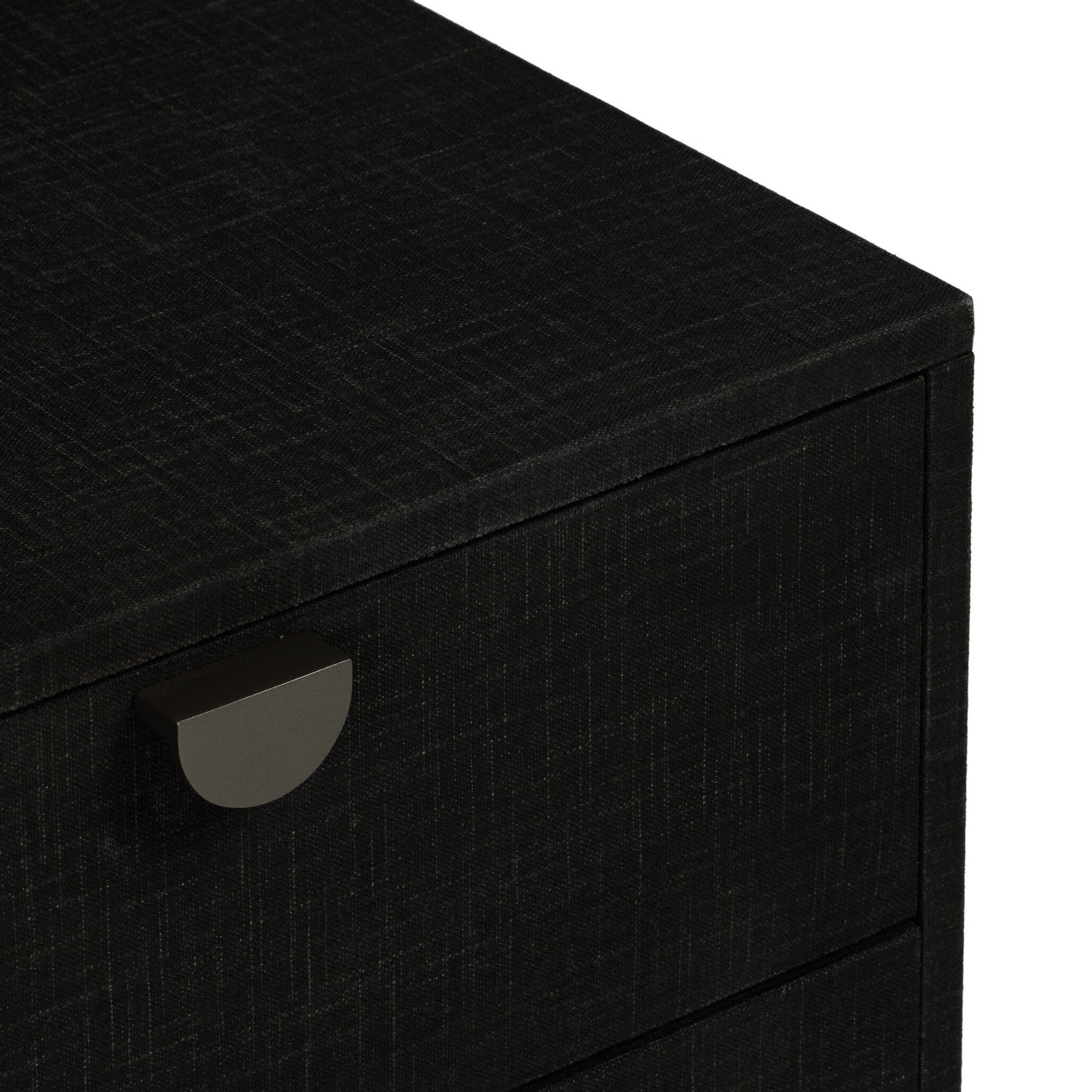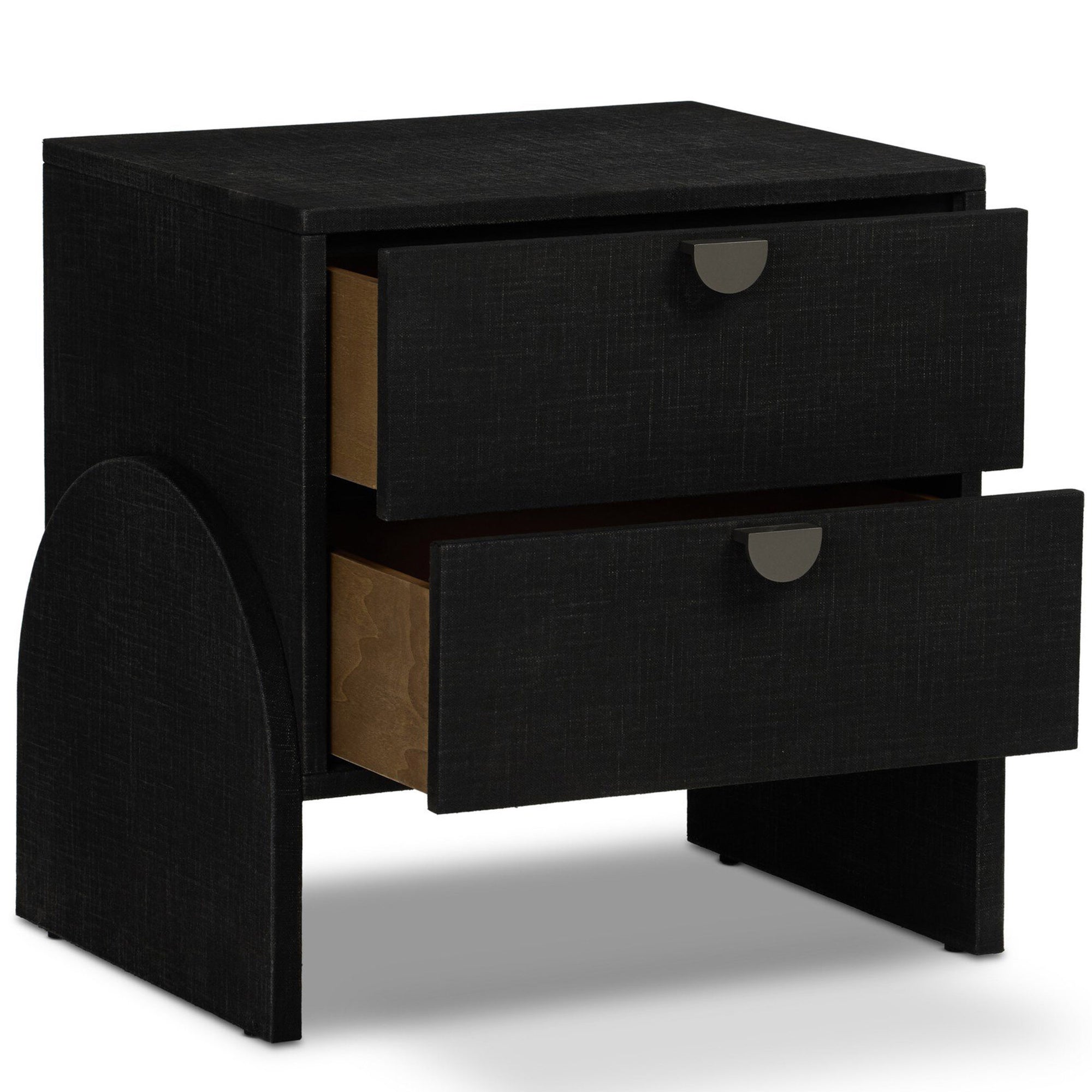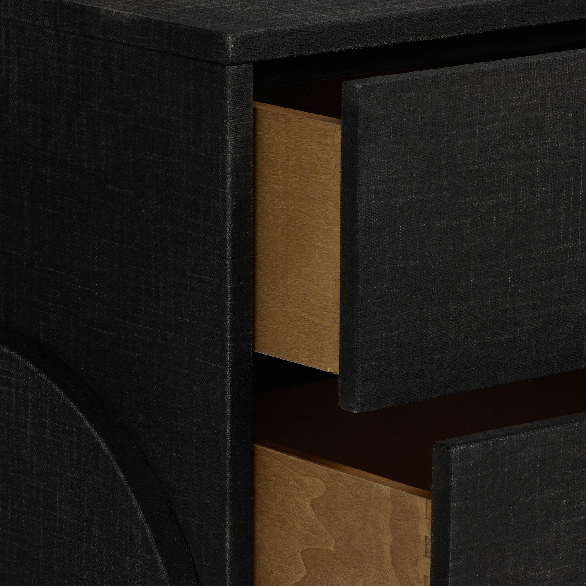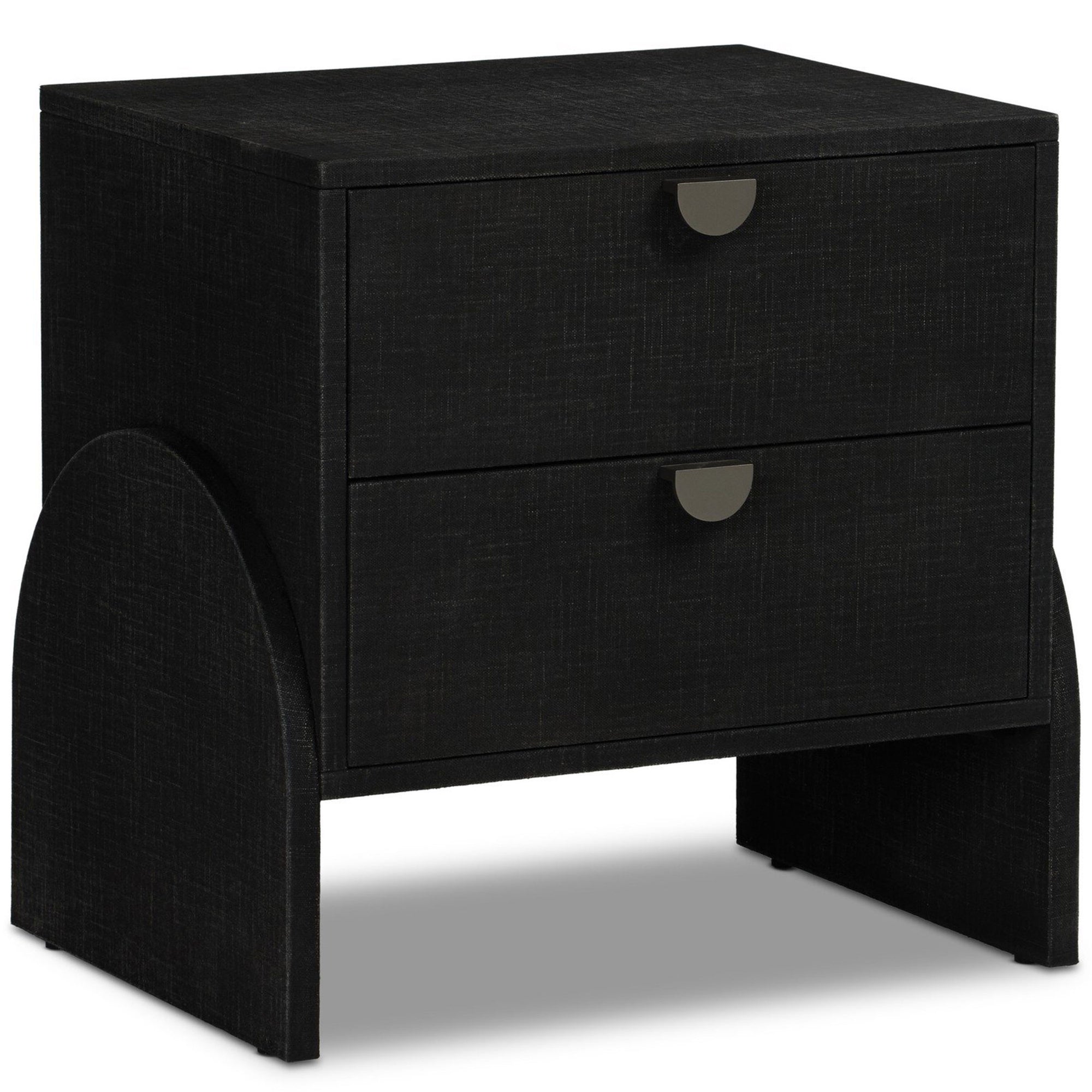 The Cressida Nightstand features a sleek rectangular silhouette with two soft-close drawers, providing practical storage for bedroom essentials. Crafted with painted linen and mahogany veneer, it combines timeless design with sturdy construction. Anti-tip hardware is included for added safety, making it both stylish and functional.