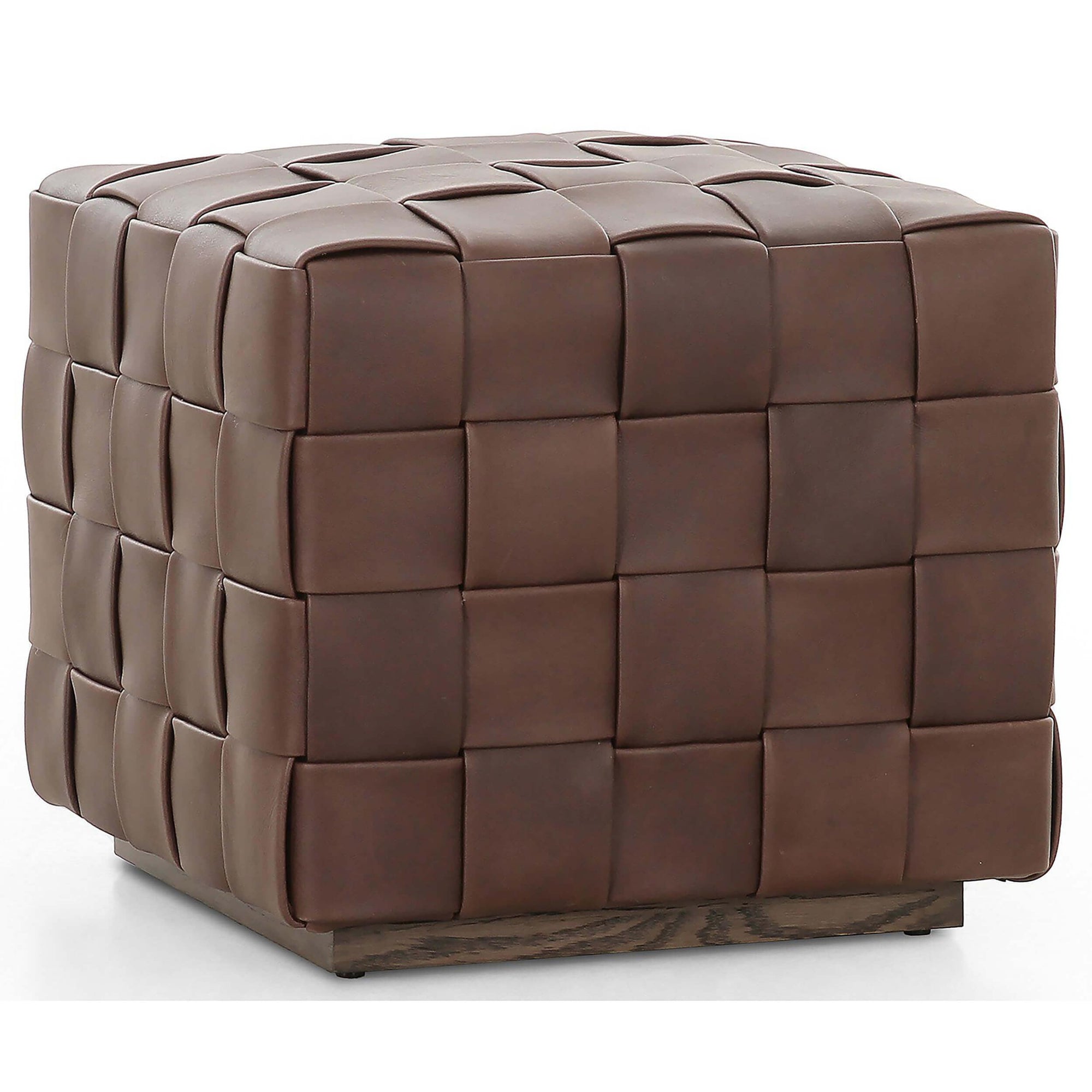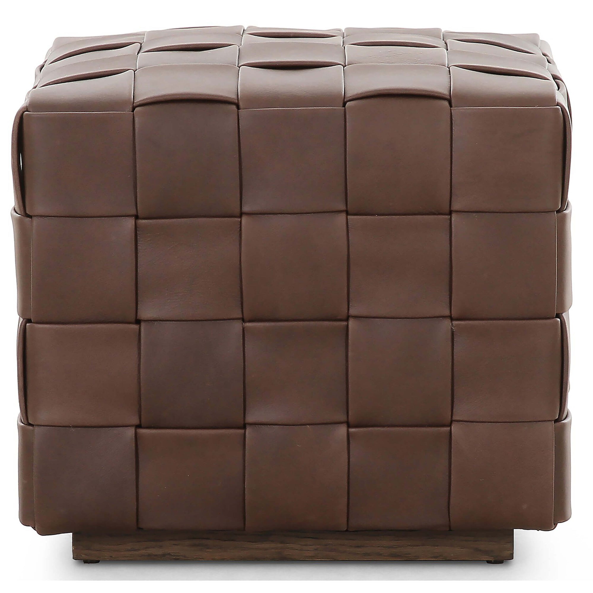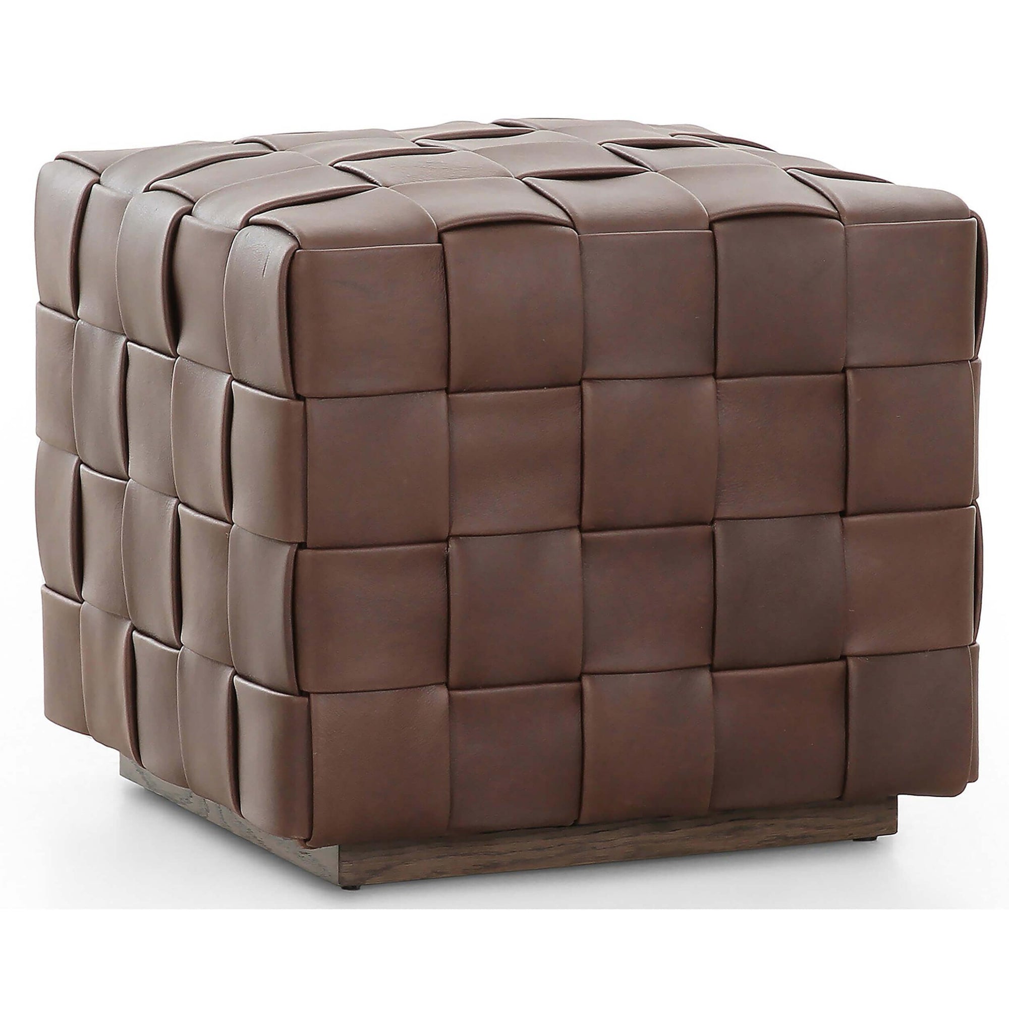 The Flores Leather Ottoman features hand-woven, top-grain leather that creates a look reminiscent of a treasured vintage find. Its soft, specialized leather adds texture and character, while offering versatility as additional seating or as a stylish surface when paired with a tray. Perfect for enhancing any space with both form and function.