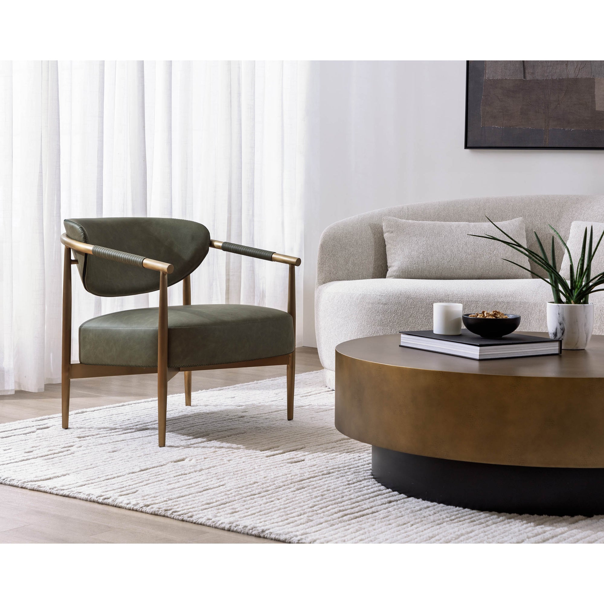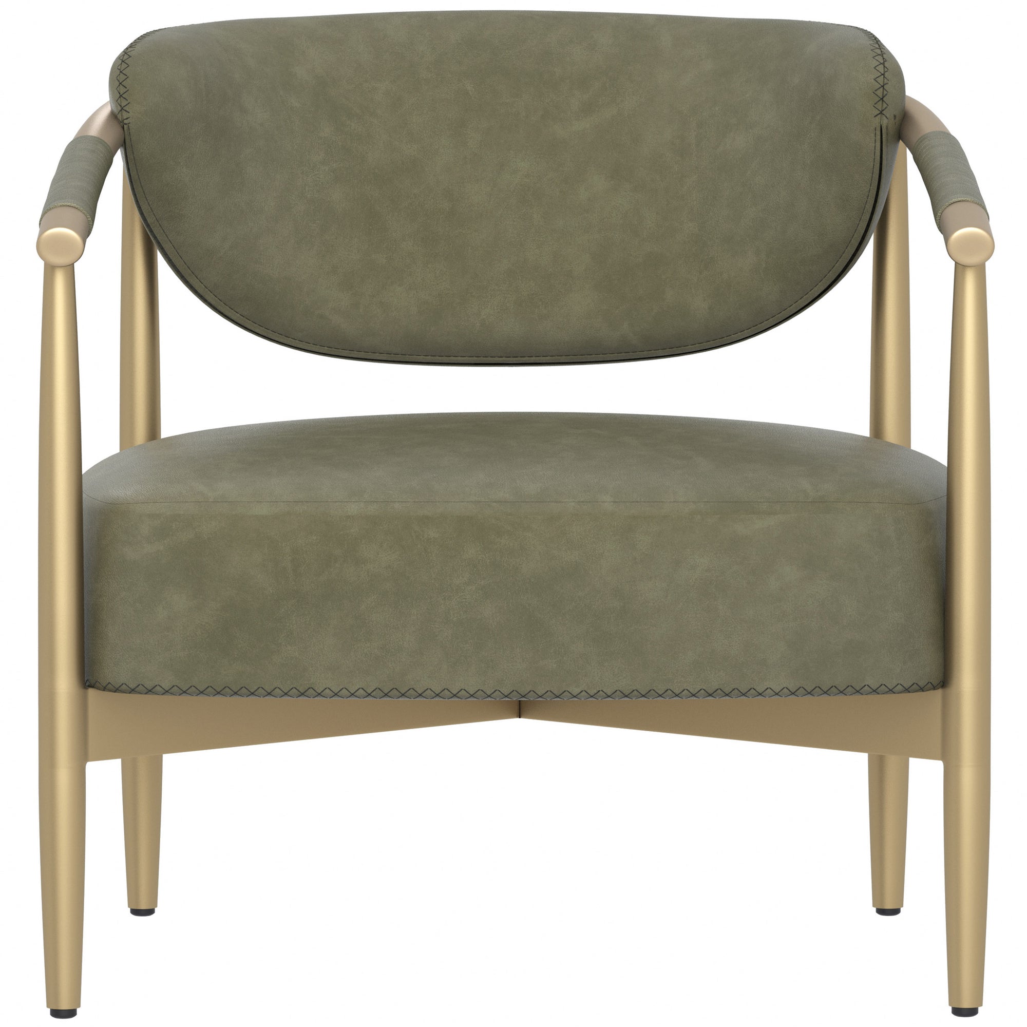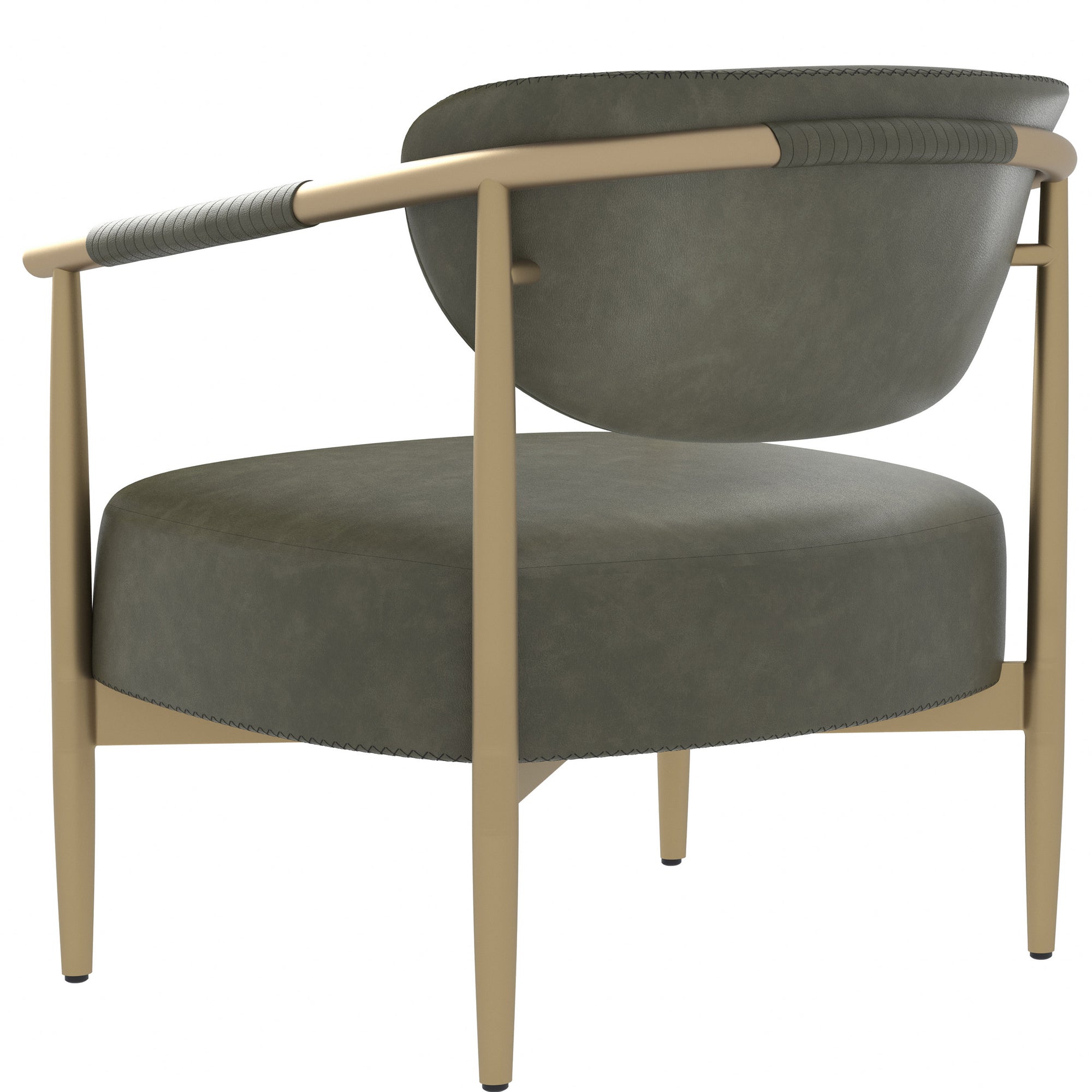 The Heloise Chair pairs purpose-driven design with handsome details. Bravo black faux leather upholstery and rope detailing are combined with powder-coated gold stainless steel for optimal style and comfort. Visible stitching on the seat and backrest accentuates the smooth contours of the frame. This versatile lounge chair serves as an ideal accent for bedroom corners or living spaces. Manufactured to reflect the natural characteristics of leather, the faux leather may feature appreciated variations such as markings, wrinkles, and light scratches.