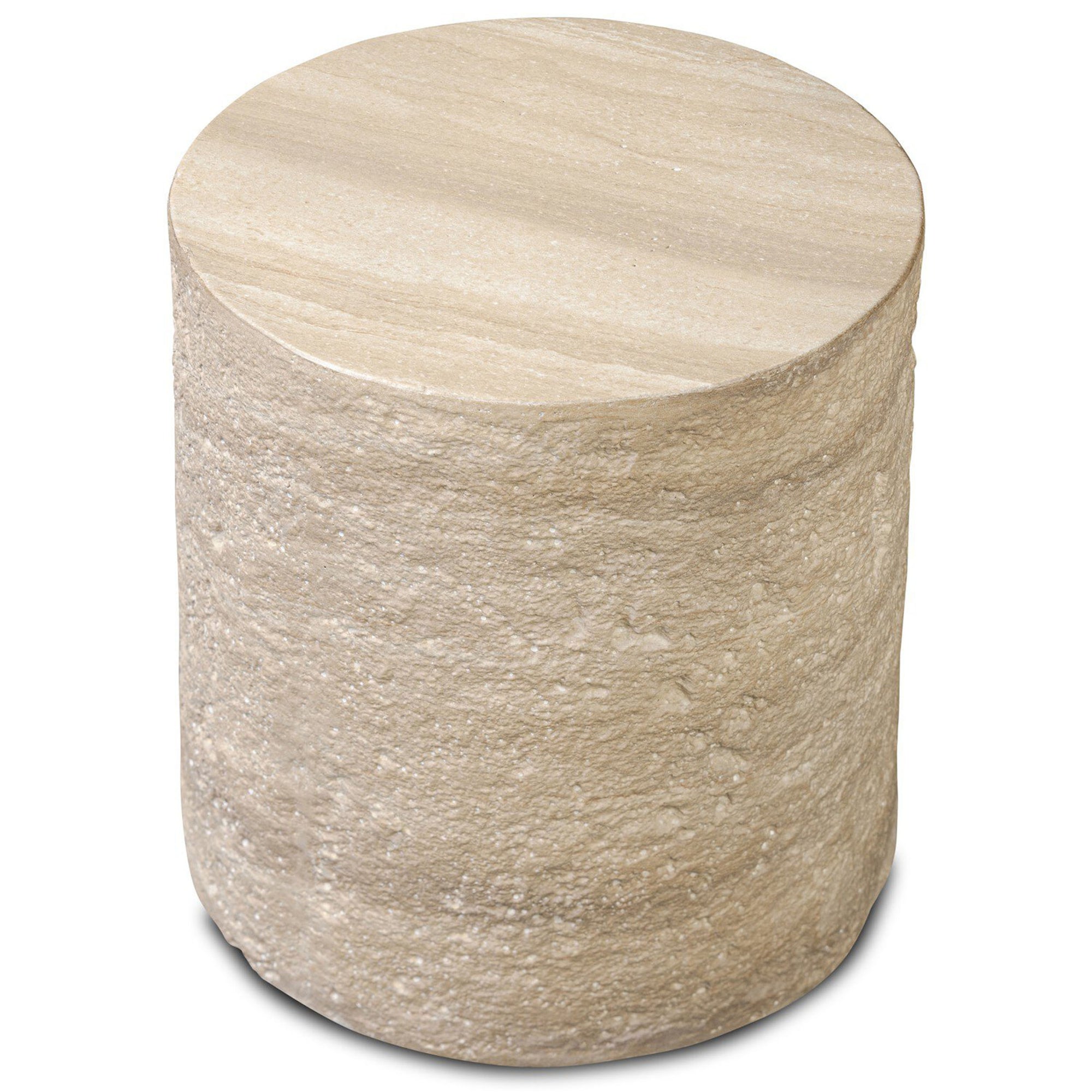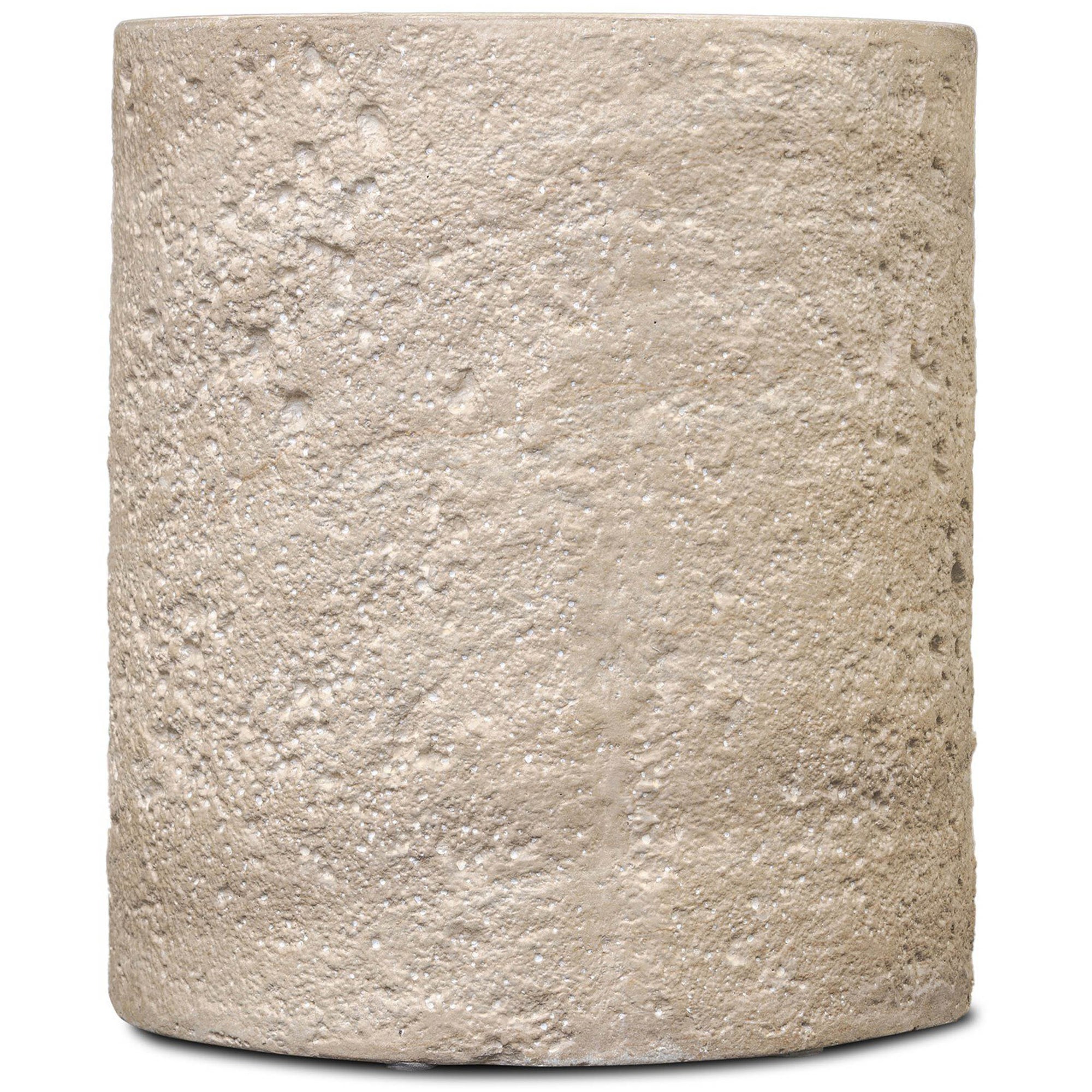 The Ettis Outdoor End Table brings textured, sculptural style to outdoor spaces. Crafted from solid concrete that mimics natural stone, its simple yet elegant silhouette is designed to complement any patio or lounge area. Cover or store indoors during inclement weather and when not in use.
