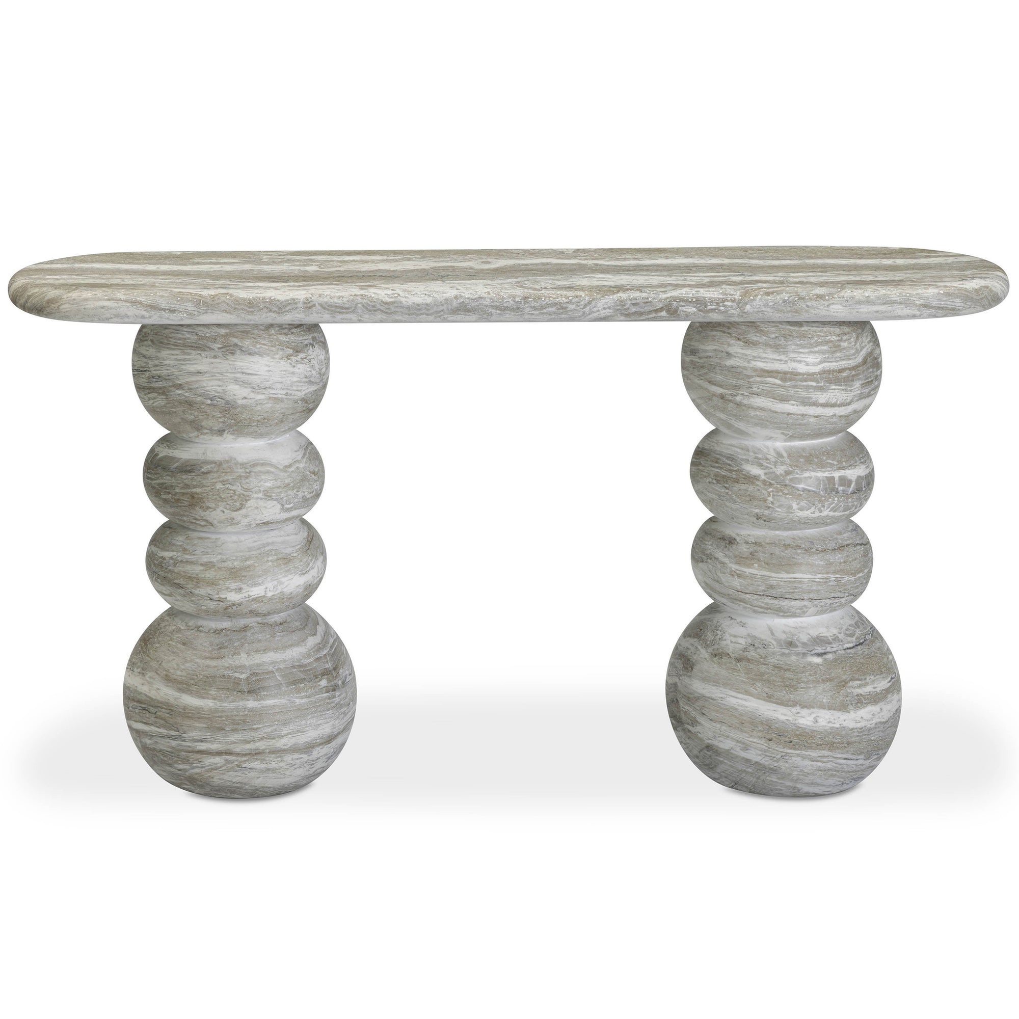The Hyre Outdoor Console Table features reinforced fiberglass concrete for durability and a faux travertine finish that's stylish and low-maintenance. Sleek and versatile, it brings modern style and lasting function to patios, living rooms, and entryways, making it perfect for both indoor and outdoor use.