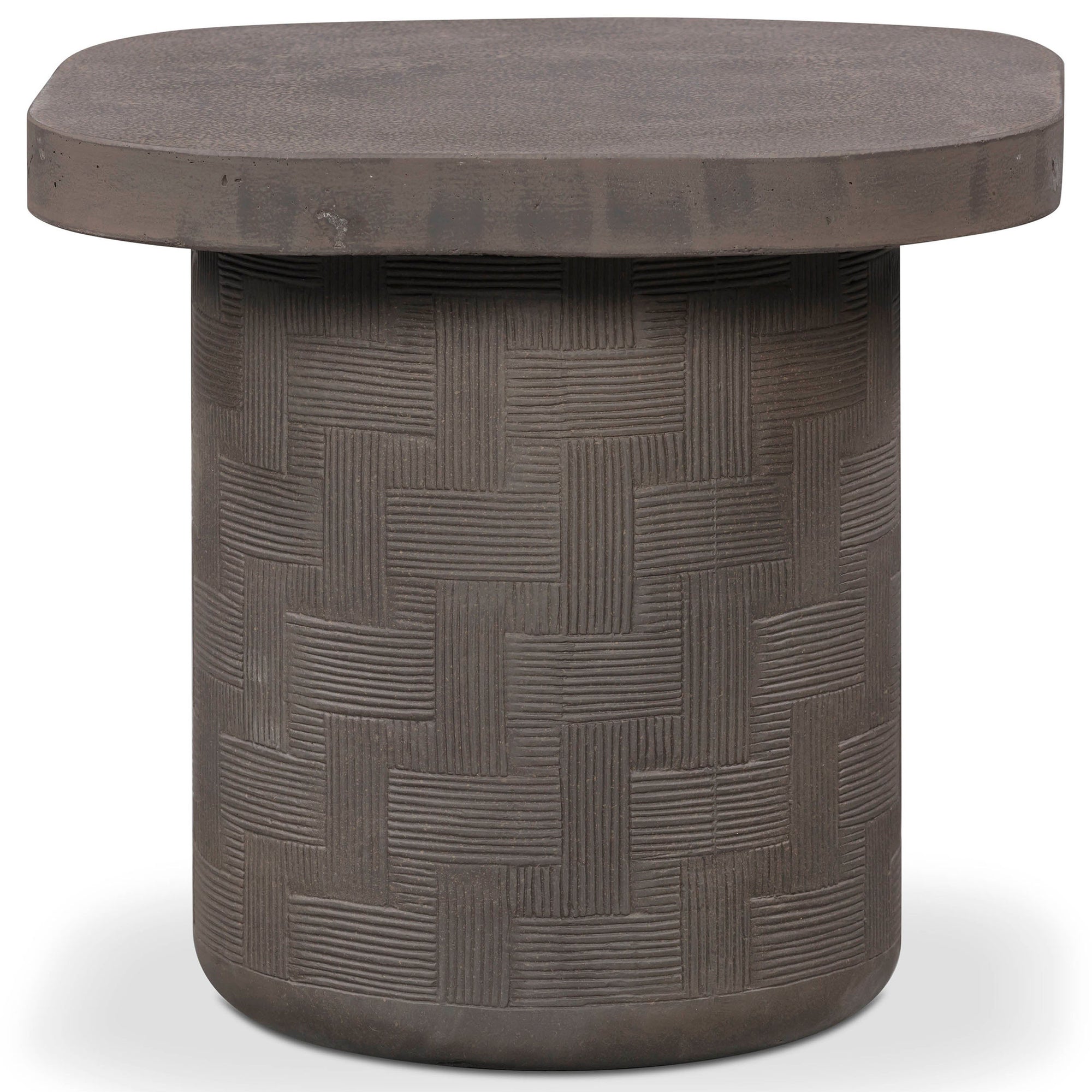 The Suraya Outdoor Side Table is sculptural, modern, and designed to live anywhere, bringing artful texture to your space. Its soft, rounded form and chic crosshatch pattern add warmth indoors or out. The durable, weather- and stain-resistant finish ensures lasting style through every season. This table is crafted using fiberglass reinforced concrete and is available in three versatile, easy-to-style colors.