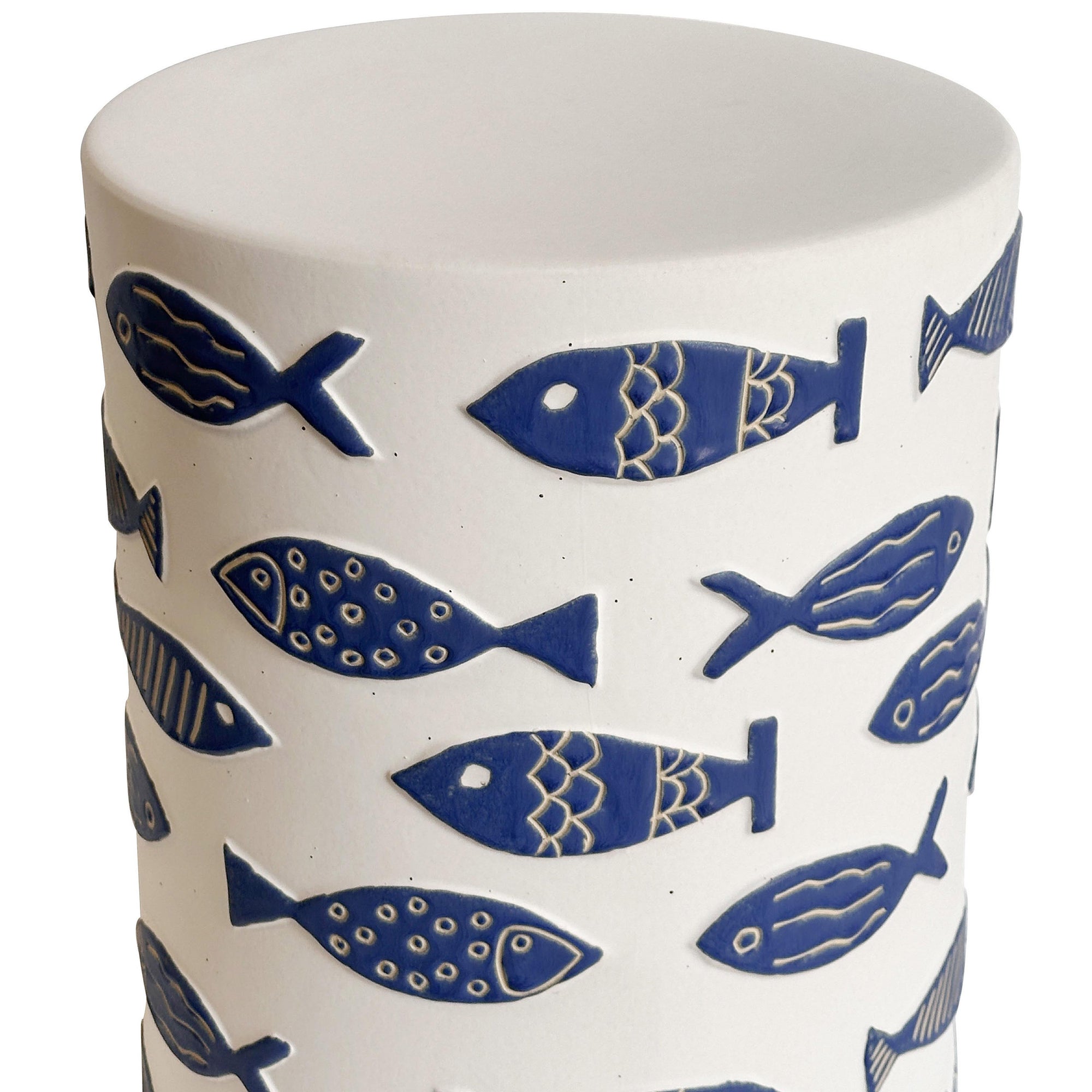 The Tempest Outdoor Table adds charm and versatility to any space with its handmade, hand-painted ceramic design. Each piece is a one-of-a-kind work of art, featuring a blue fish design on a white finish. Its durable ceramic construction ensures it is both functional and beautiful, while the artisanal finish adds a touch of global-inspired elegance. This stool effortlessly elevates living rooms, patios, or bedrooms with color, character, and style.
