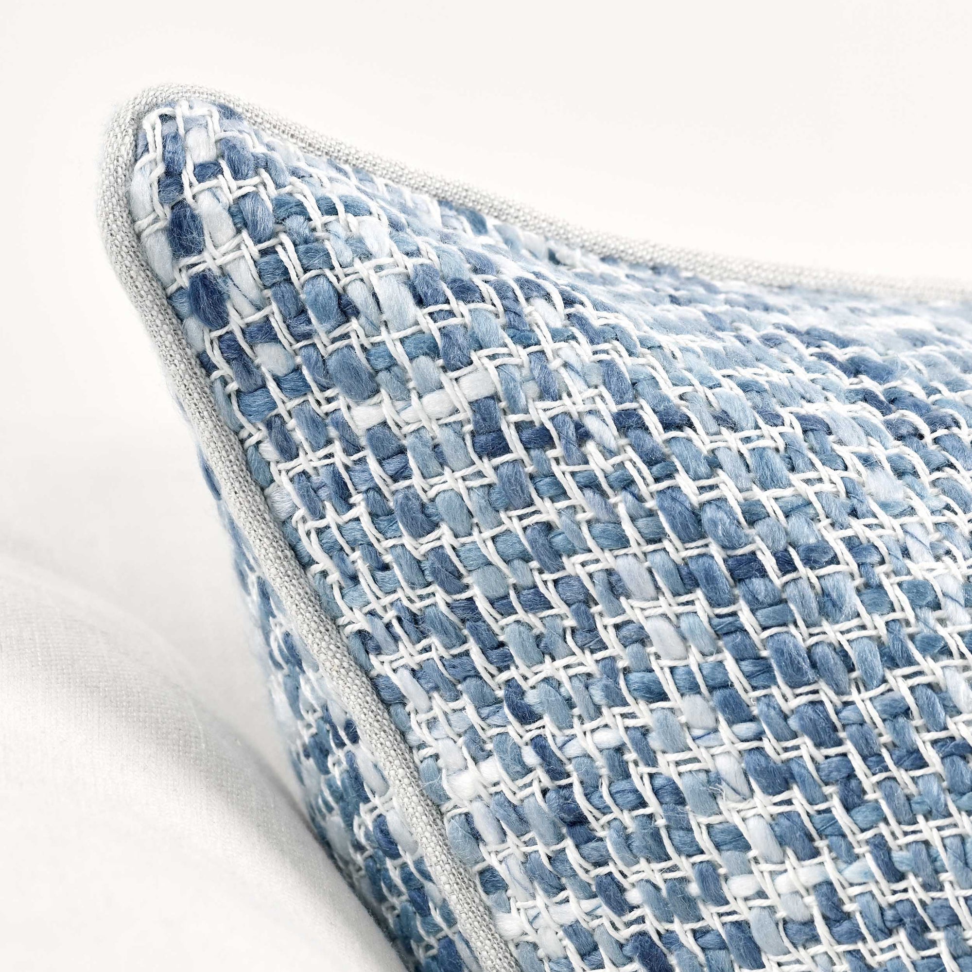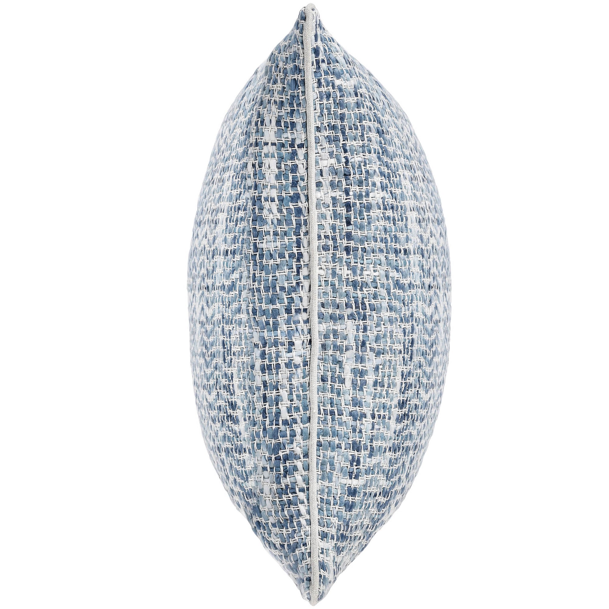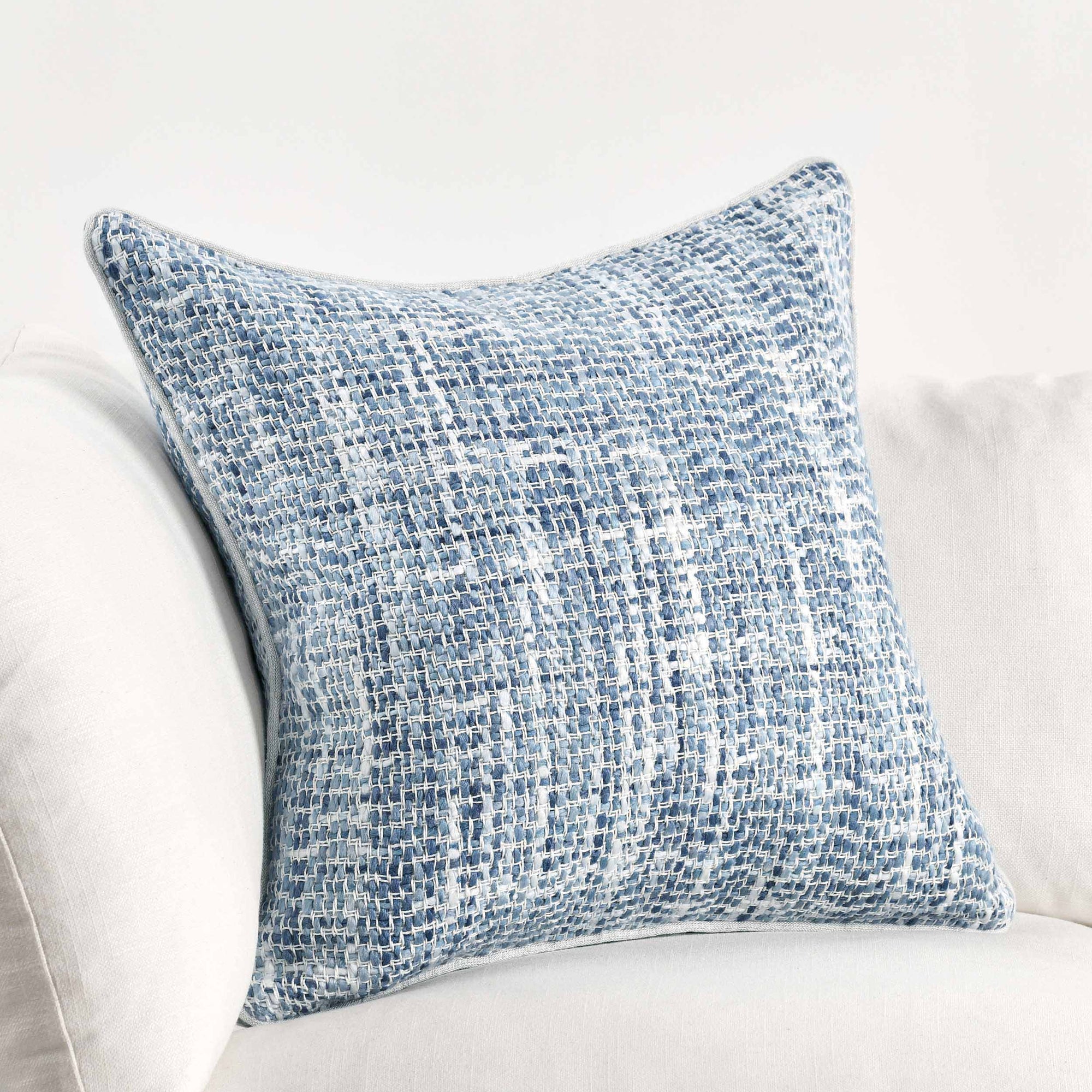 The Brax Pillow captures the jewel tones of coastal waters with rich blue hues showcased in a mesmerizing handwoven pattern. Crafted by skilled artisans, this pillow reflects the eclectic flair of Asian and African cultures. Filled with plush down, it offers inviting comfort and a striking design.