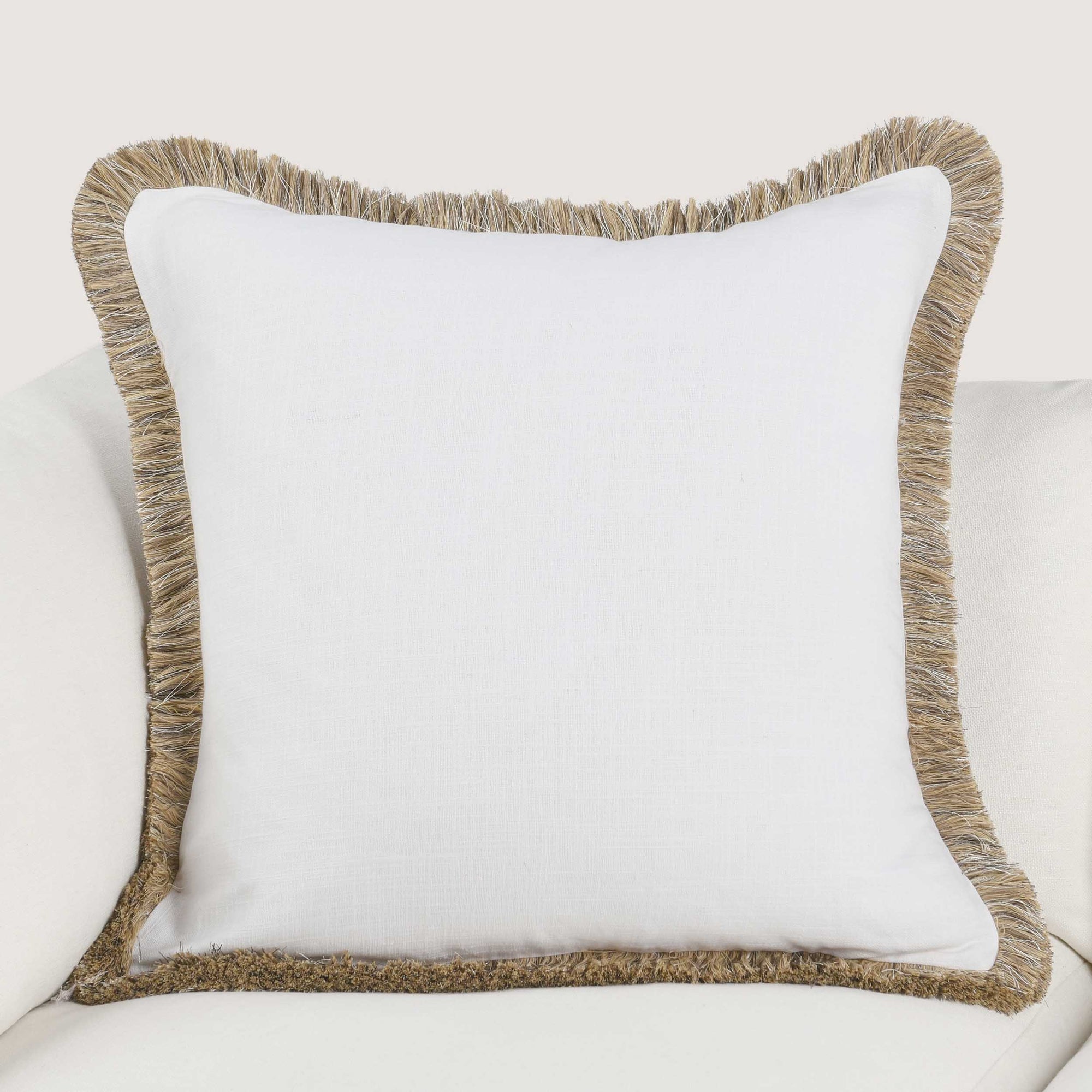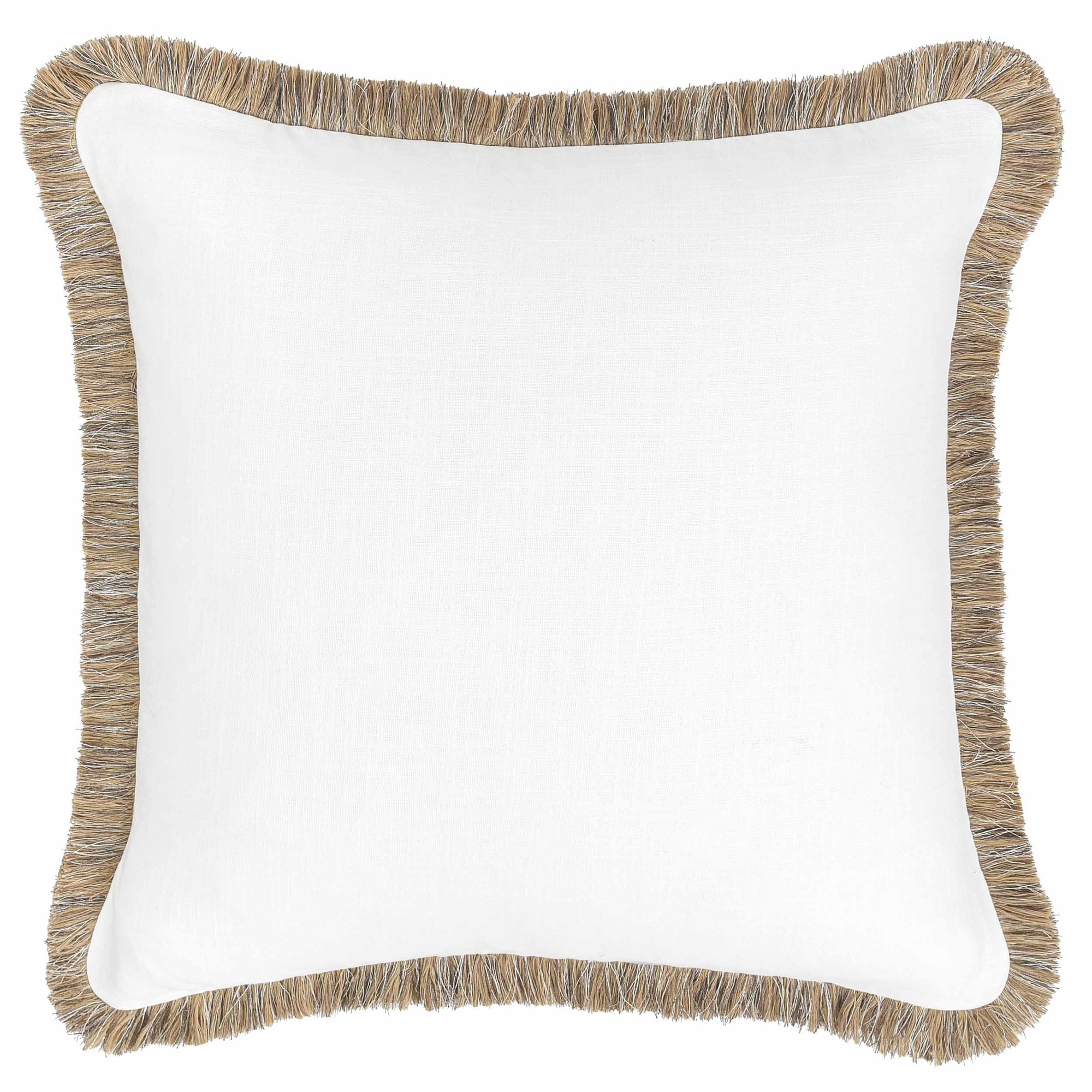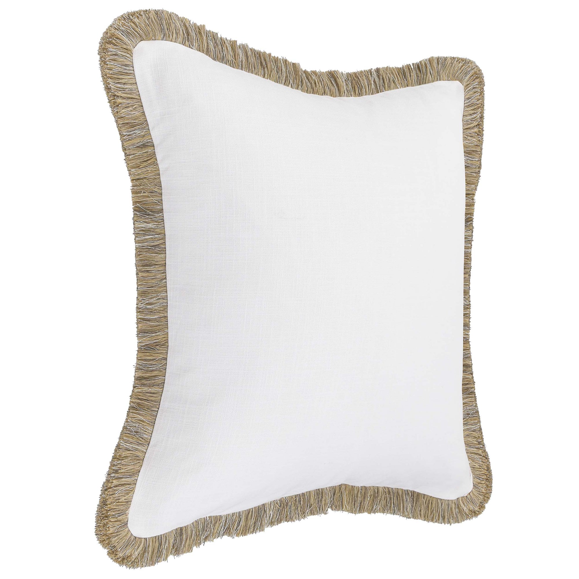 The Cara Pillow features a grounded cotton and linen textured fabric that highlights the lush texture of fringe around its design. A perfect pillow for layering, its soft feather and down blend insert provides a lavishly supportive feel, making it as comfortable as it is beautiful.