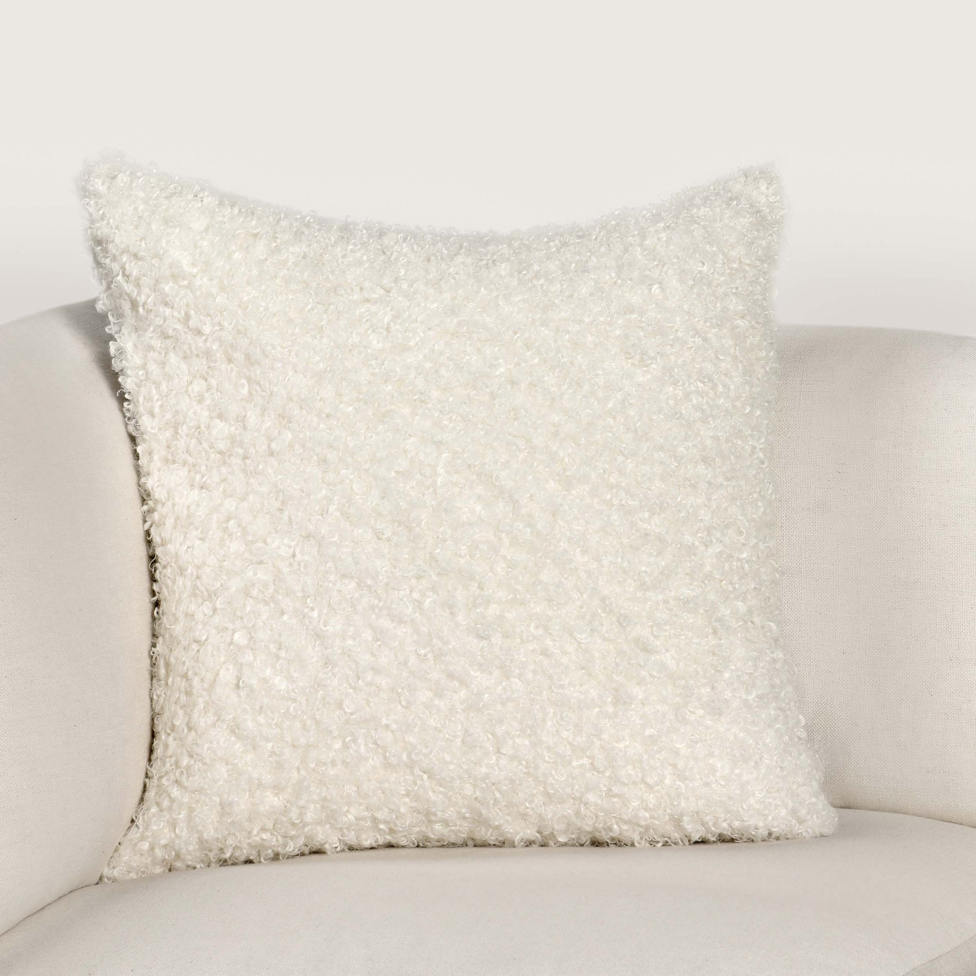 The Carter Pillow brings playful texture and cozy charm to your space with its curly faux wool shearling front. Backed with a smooth cotton-linen blend and filled with a feather-down insert, this compact pillow adds both comfort and dimension to any sofa, chair, or bed.
