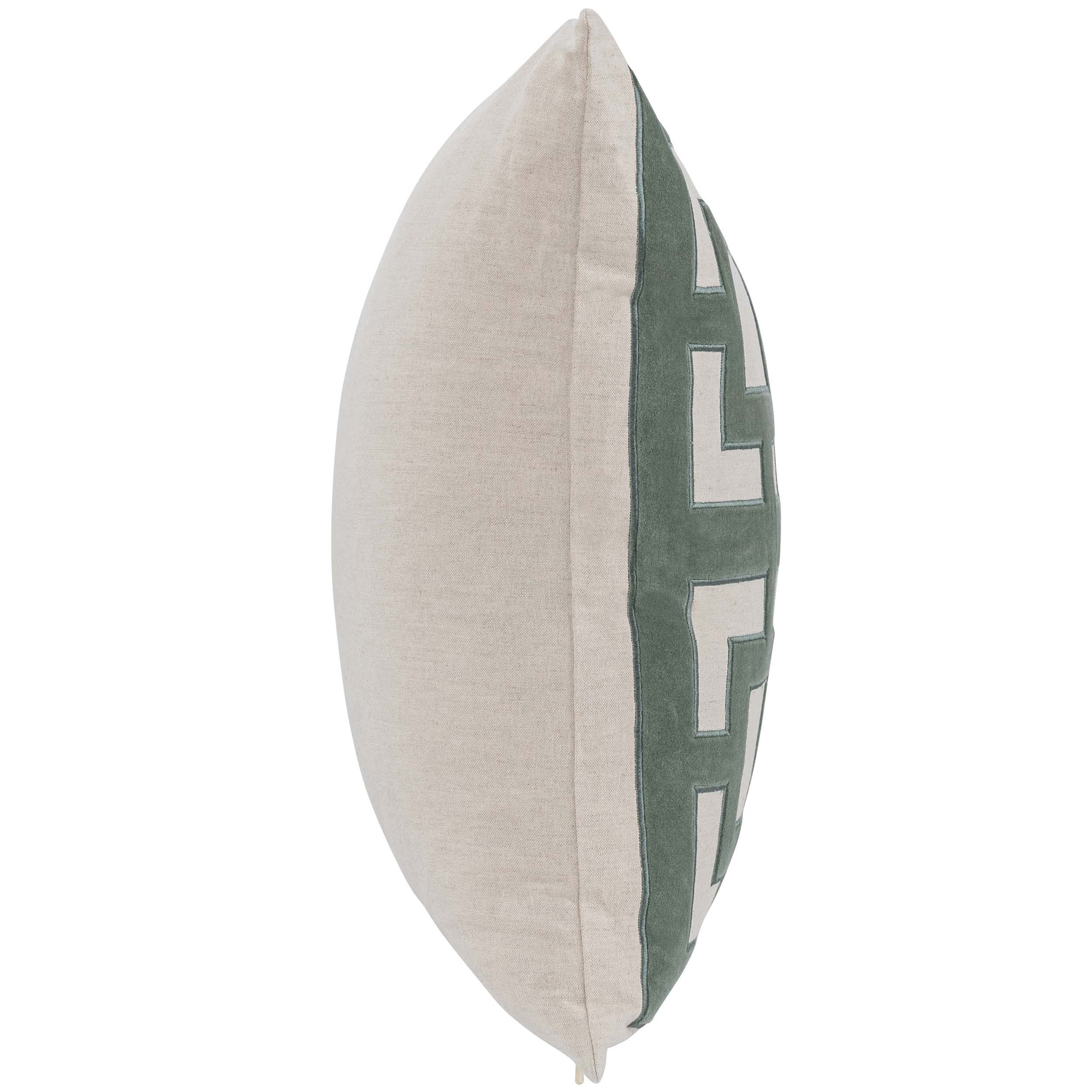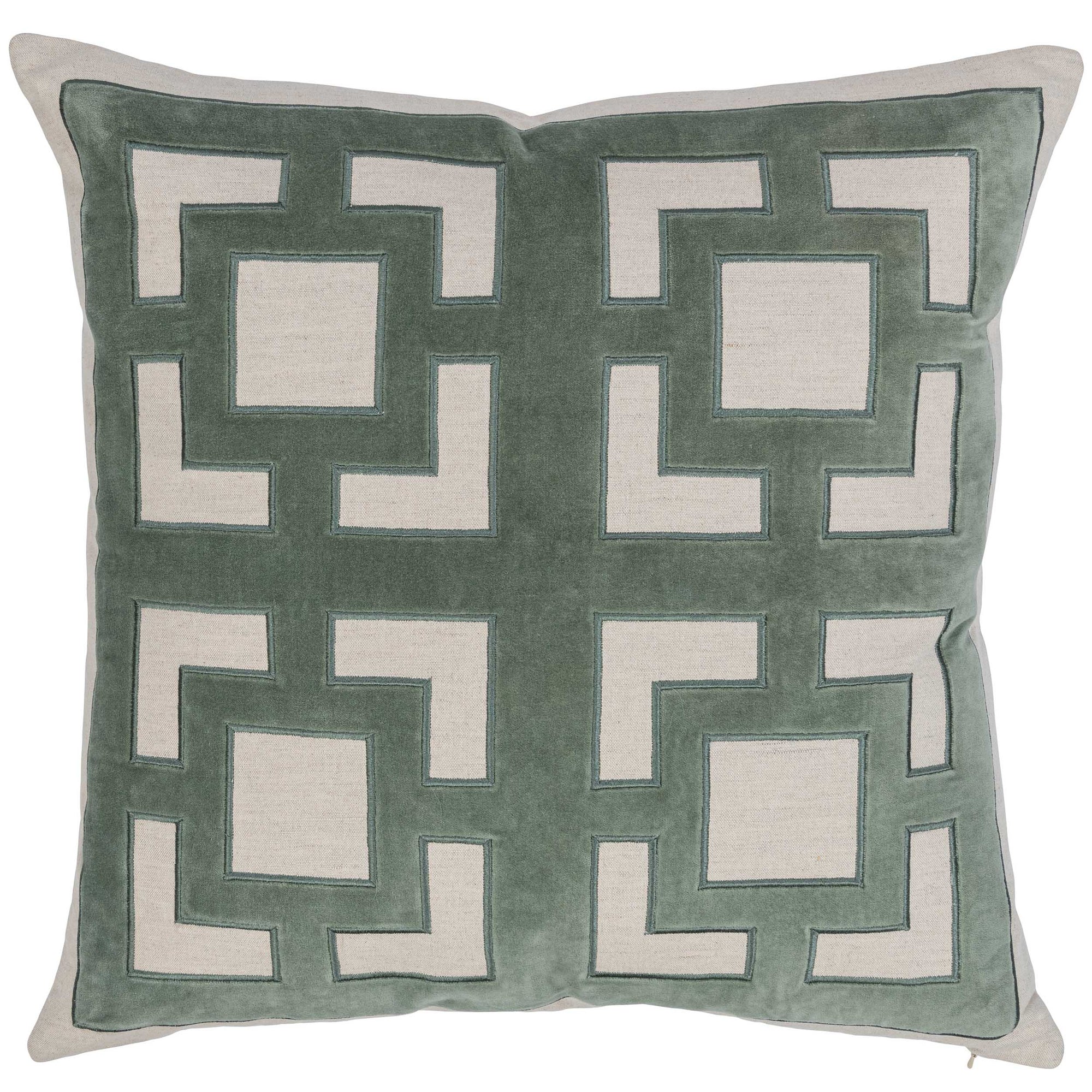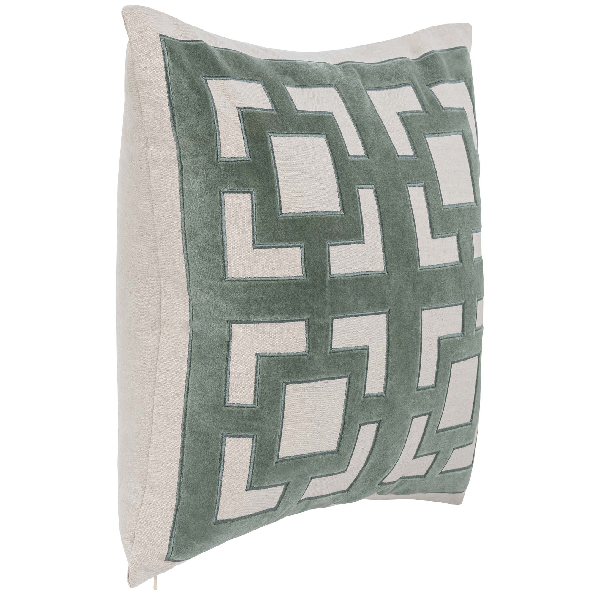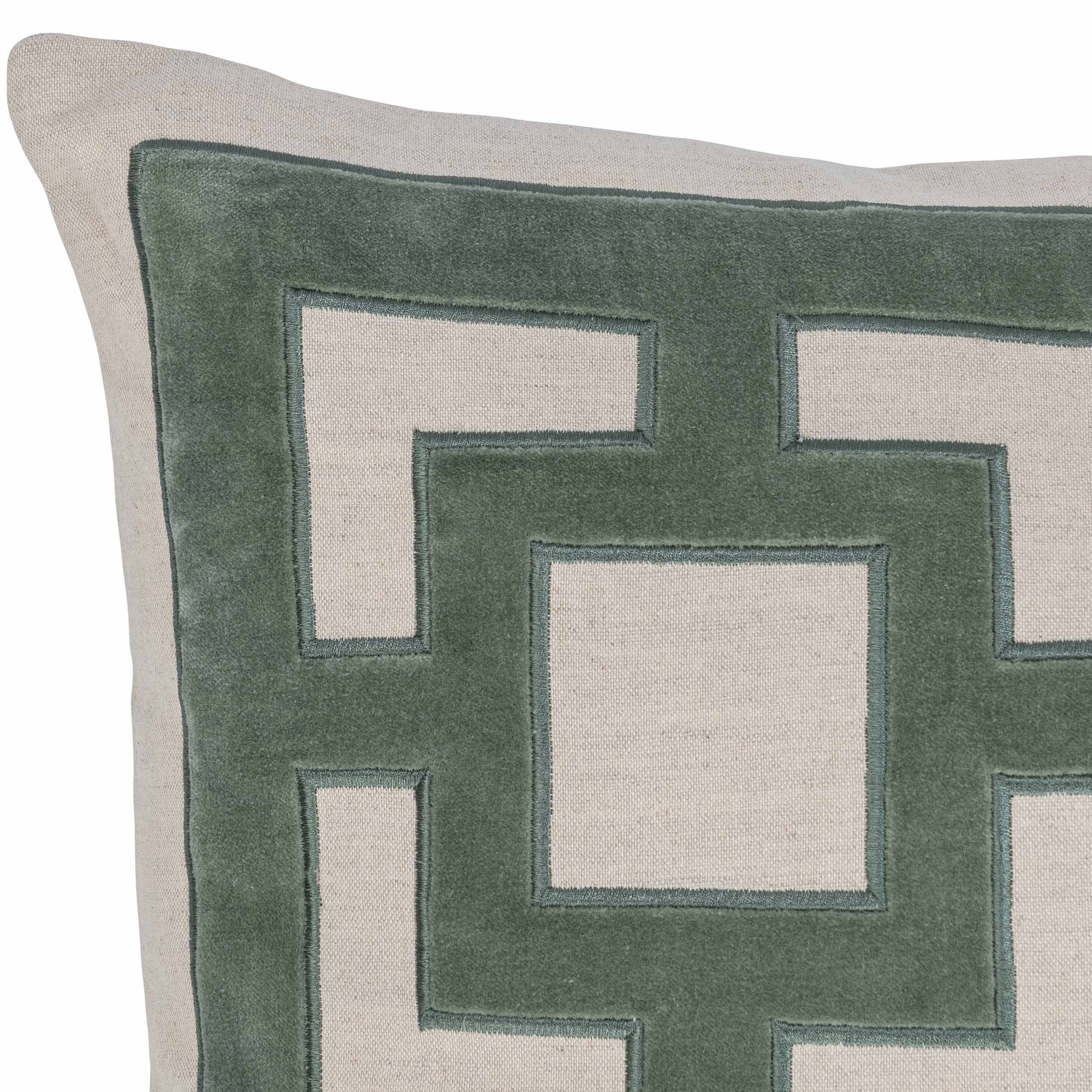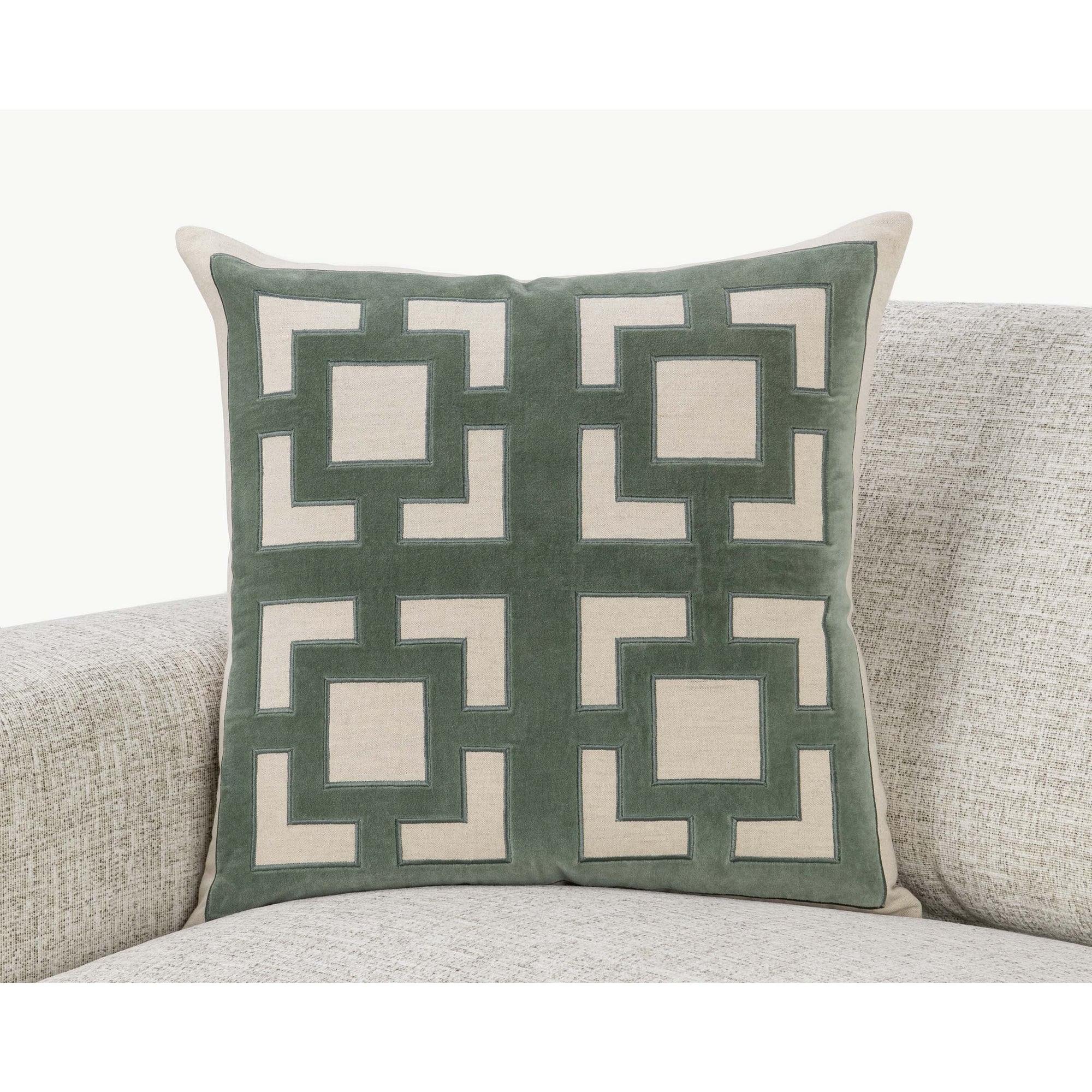 The Corbin Pillow blends cotton and linen with a velvet applique for a soft yet textured look. A hidden zipper and feather-and-down fill complete this elegant and versatile design.