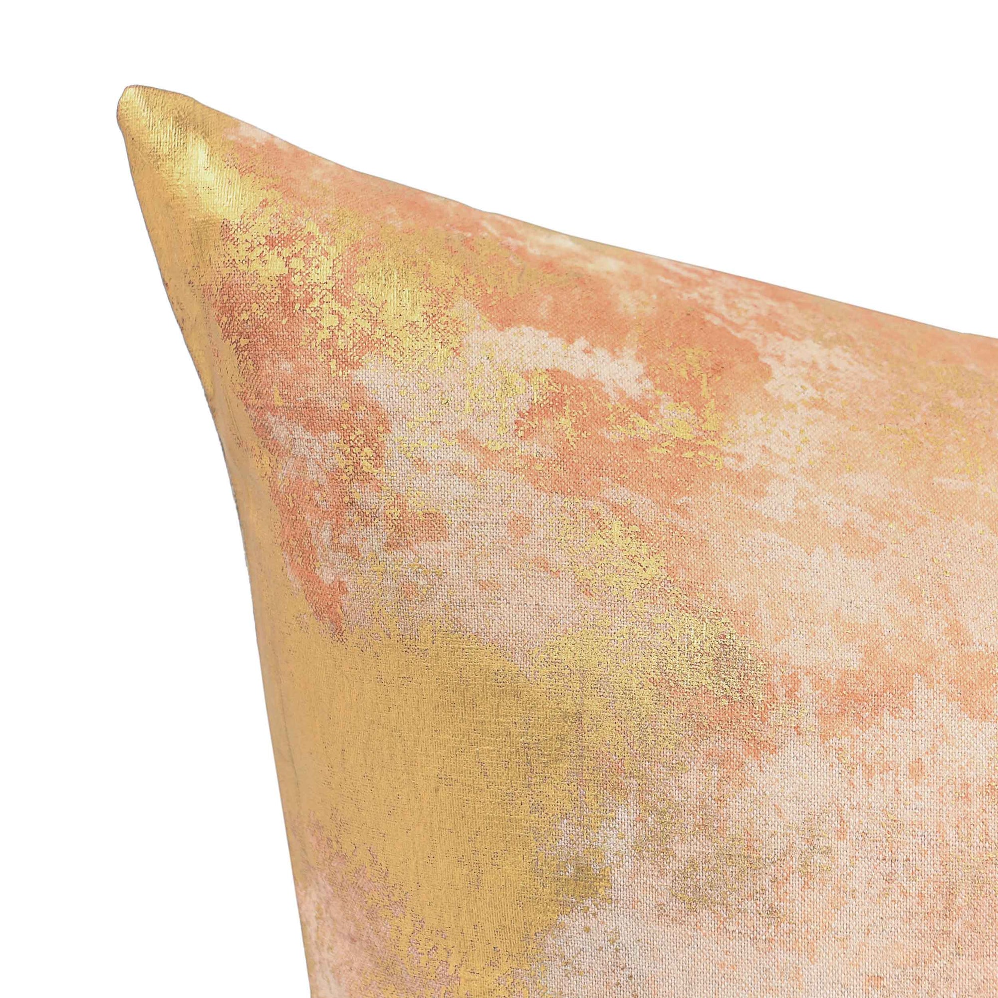 The Onara Pillow features a hand-painted abstract design with metallic accents, bringing a contemporary artistic touch to any room. A soft feather and down blend insert provides supportive comfort, making this pillow as functional as it is visually striking.