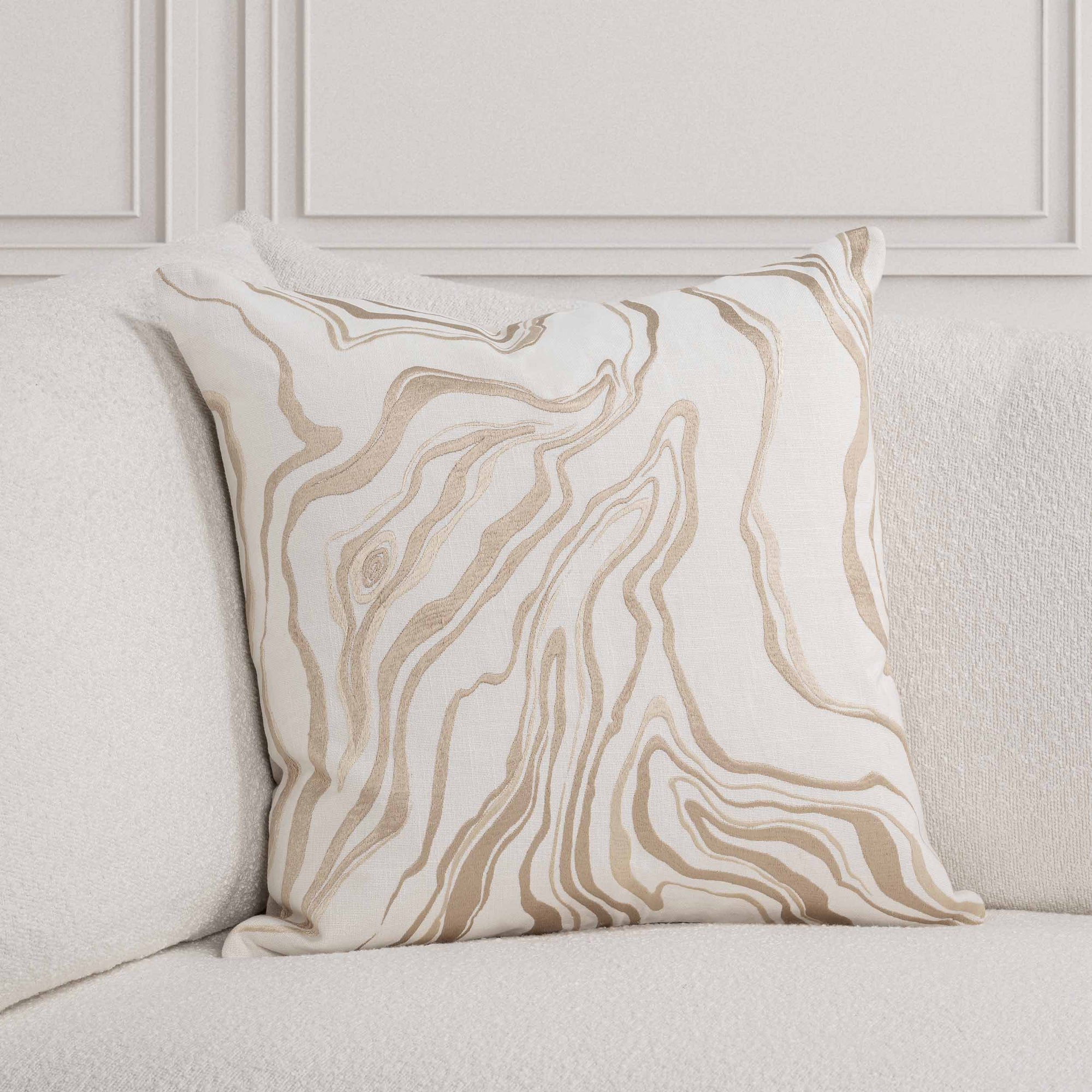 The Drift Pillow echoes the organic flow of natural stone with a light-reflective design that is understated yet impactful. Hand-guided embroidery layered over a textured cotton base blends casual style with a touch of luxury, creating a truly distinctive piece.