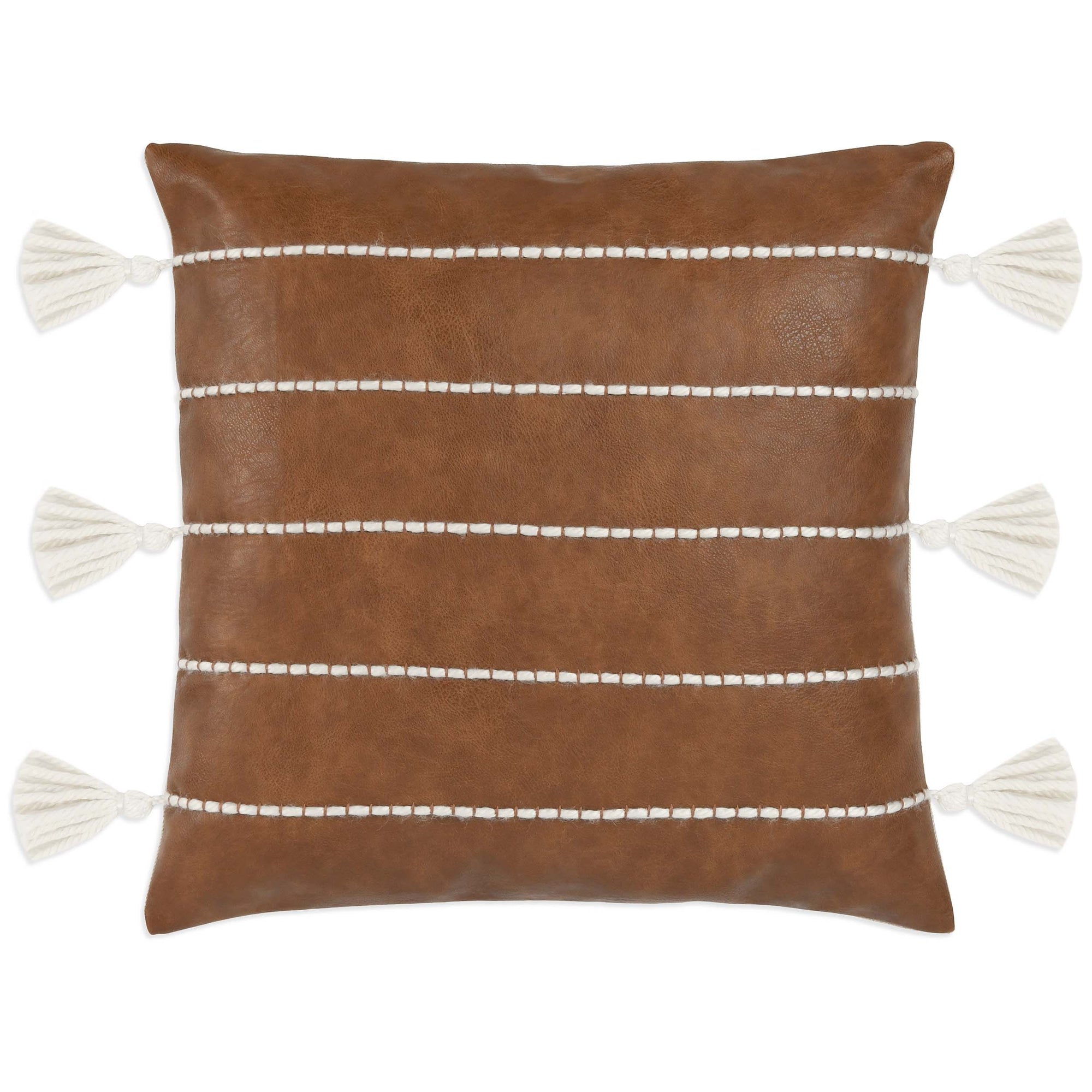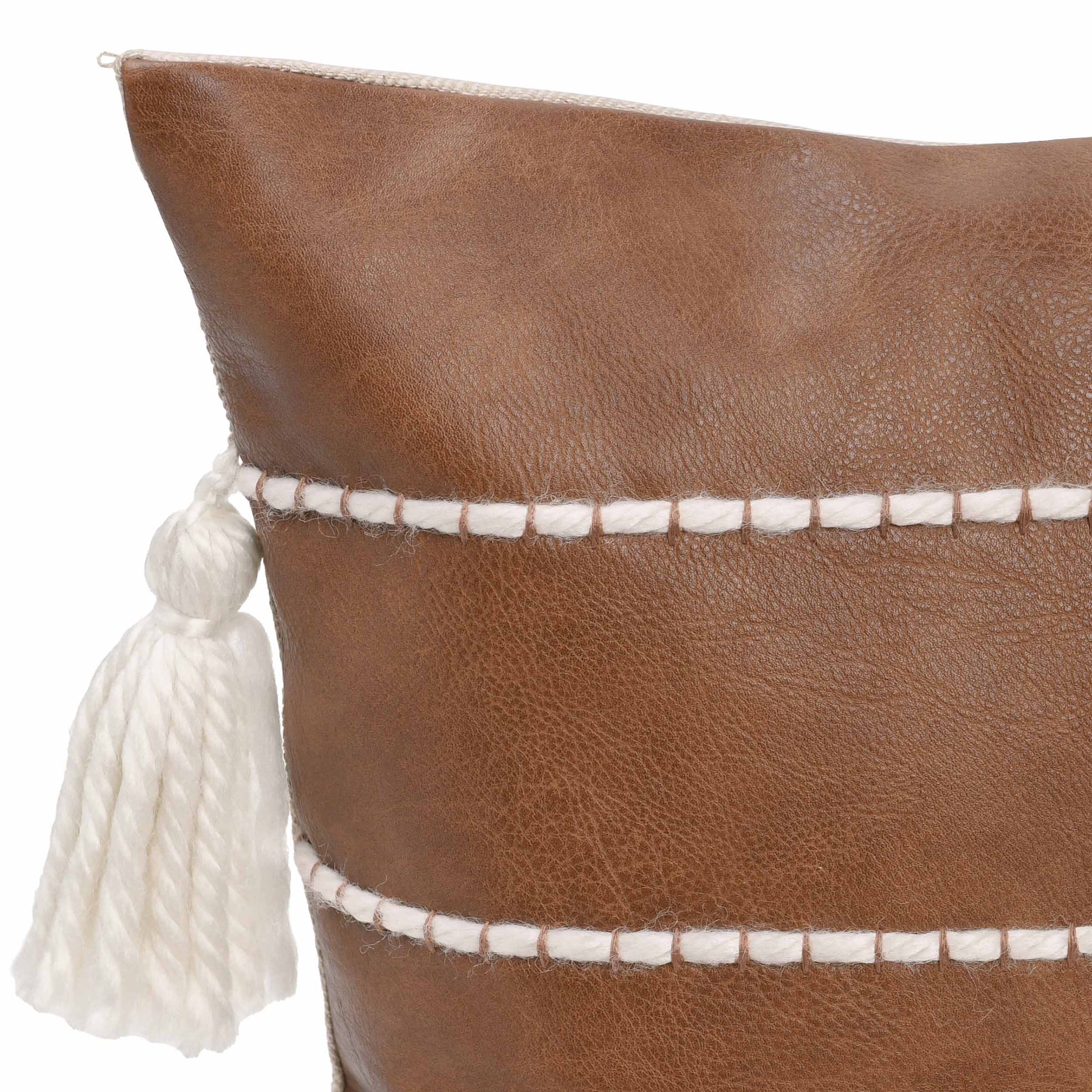 The Ezekiel Vegan Leather Pillow combines classic stripes with playful tassel accents for a charming touch. Hand embroidery adds artisanal character, while the vegan leather front and timeless neutral palette make it a versatile addition to any decor.
