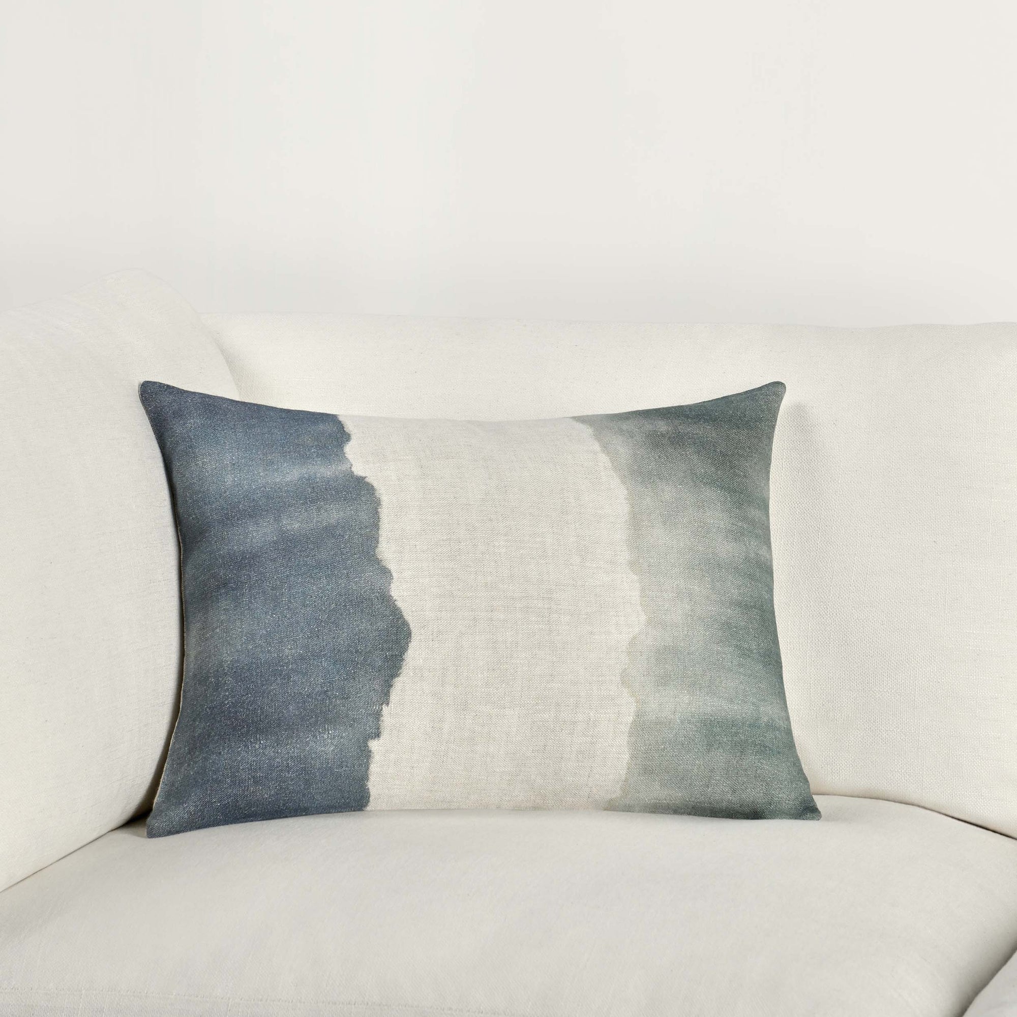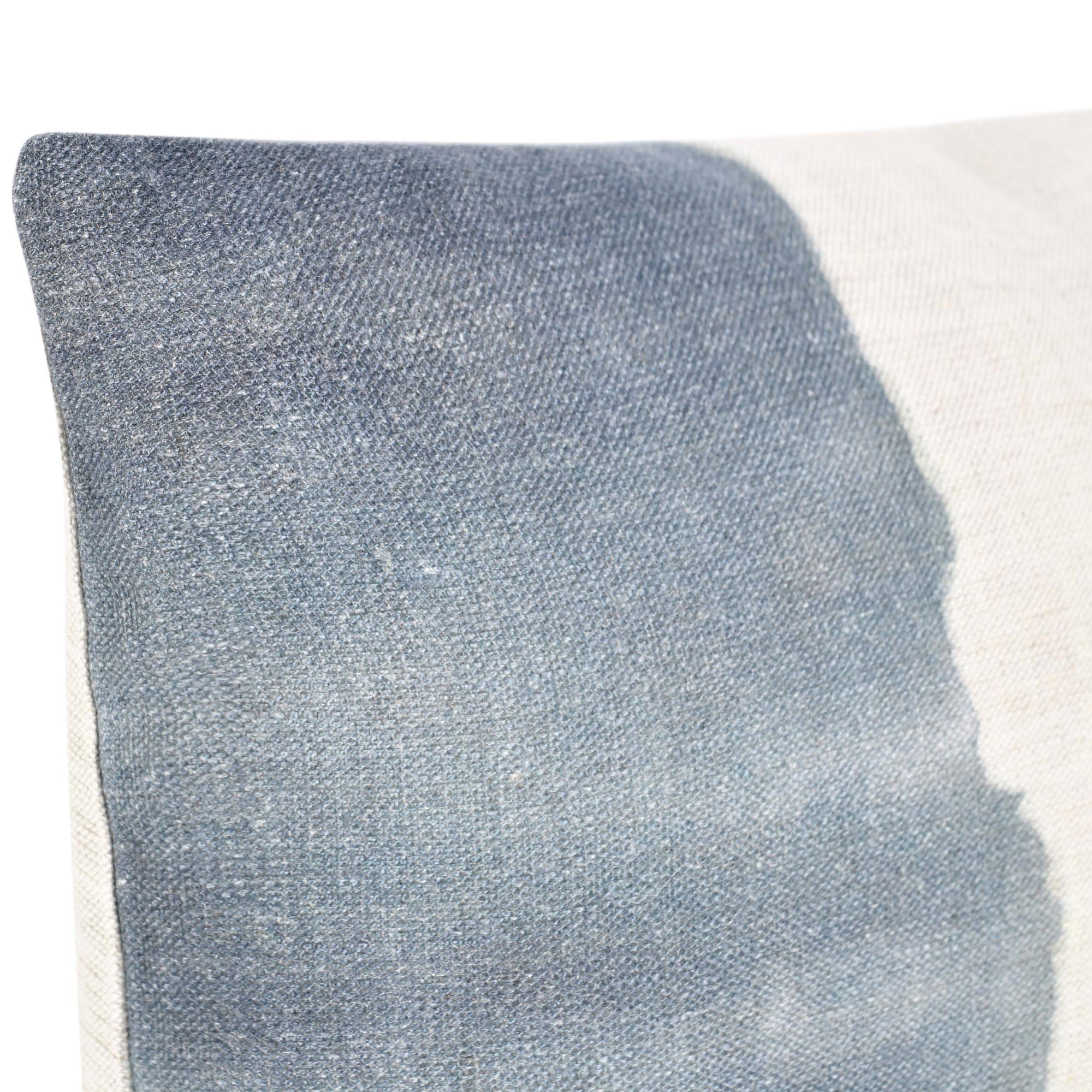 The Foundation Lumbar Pillow showcases soft blue and sage green tones flowing across a natural-hued base, adding a dynamic yet soothing accent to any space. Crafted from Belgian flax linen, it offers a soft texture and premium durability. The plush feather-down insert ensures lasting comfort and support.