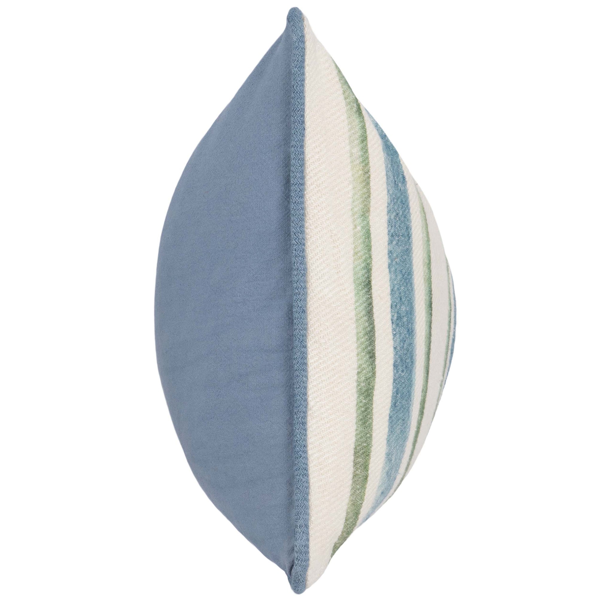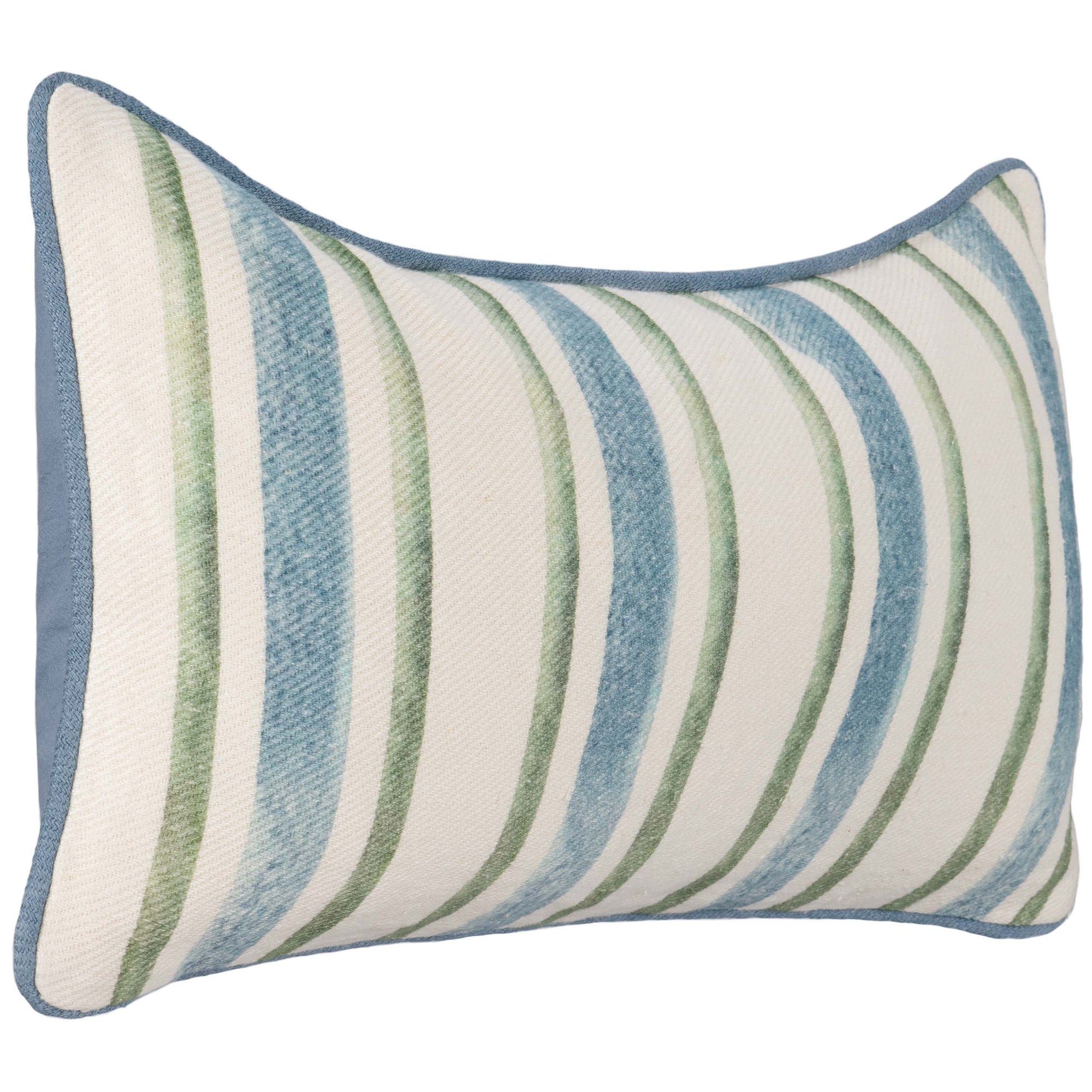 The Harbor Stripe Lumbar Pillow features a hand-painted design inspired by seaside pottery, capturing a relaxed, artisanal charm. Crafted from sustainable linen, its natural texture enhances the unique character of the artwork.
