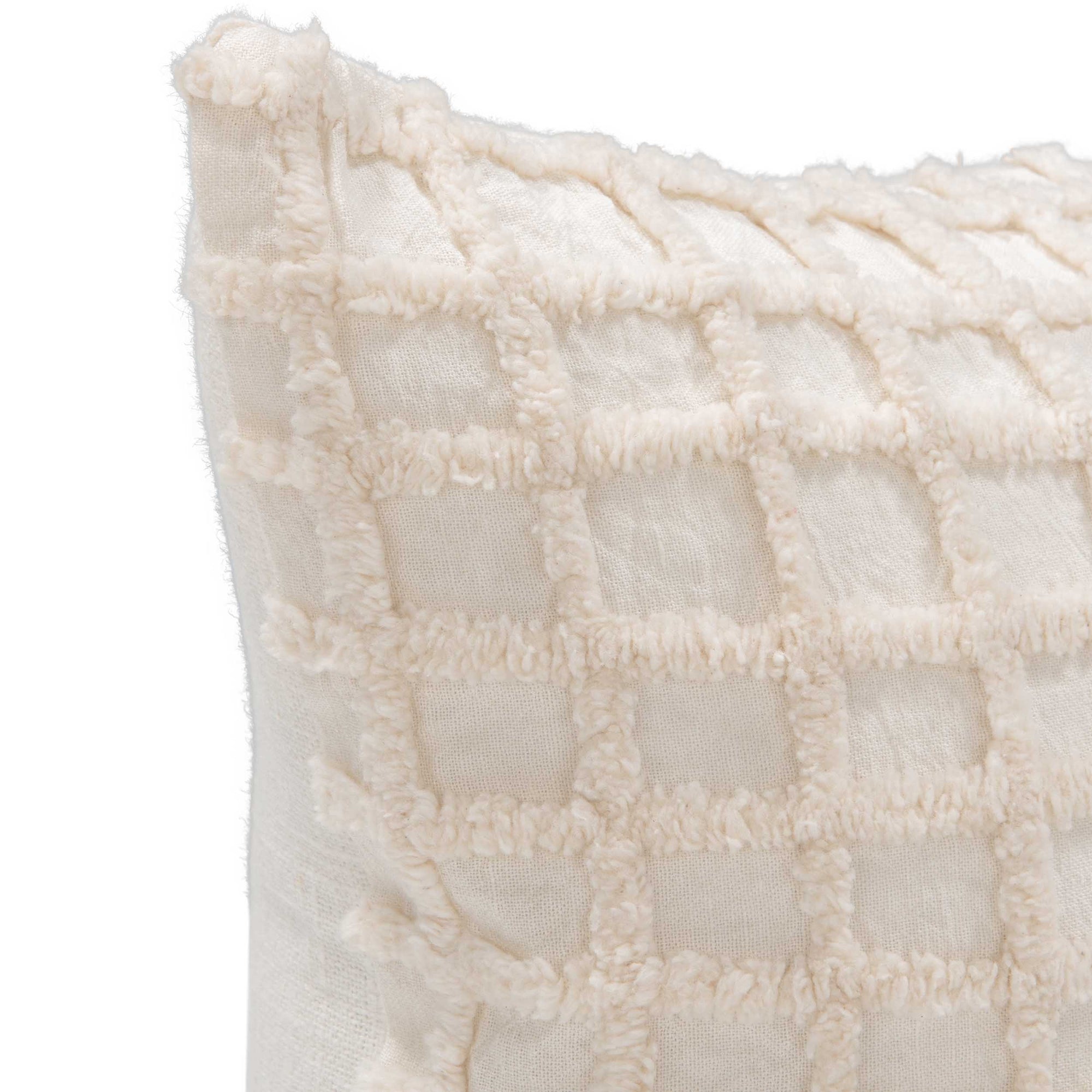 The Ion Lumbar Pillow features a soft cross-tufted and textured design that makes a statement on its own or layers beautifully with other patterned pillows.