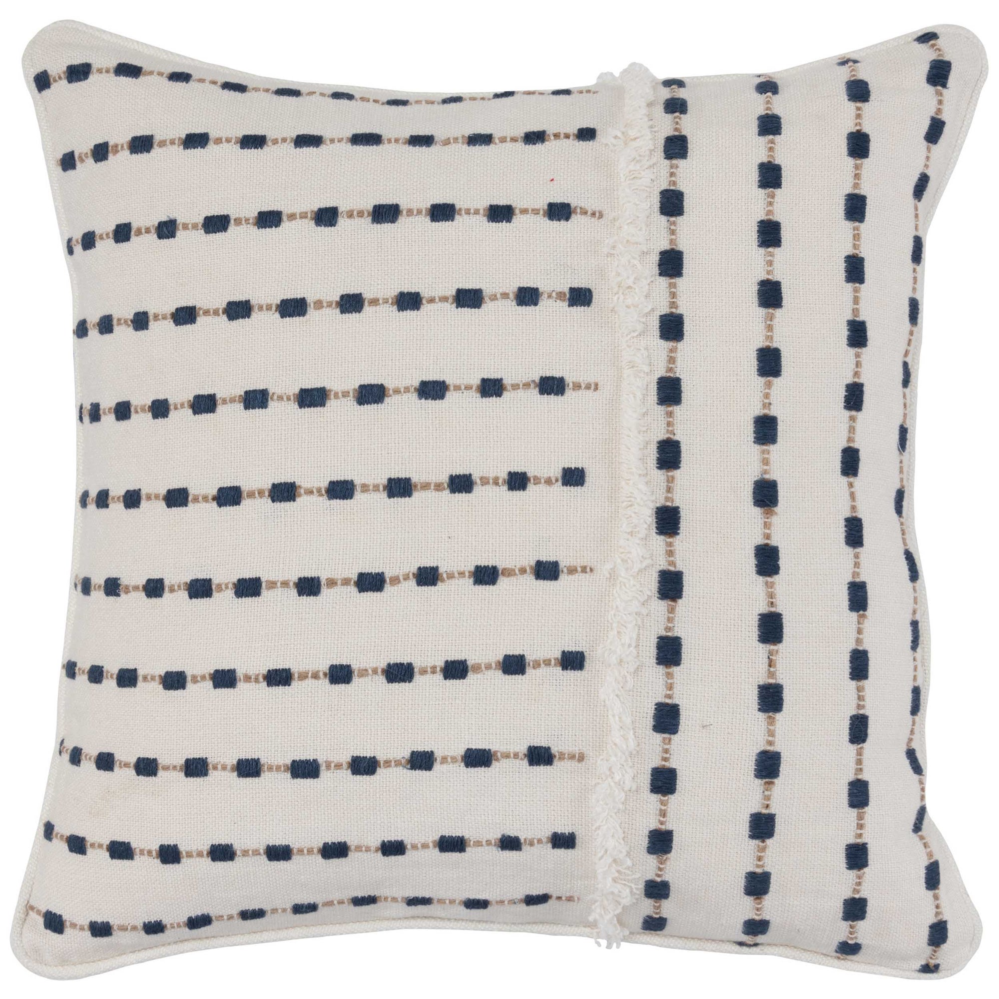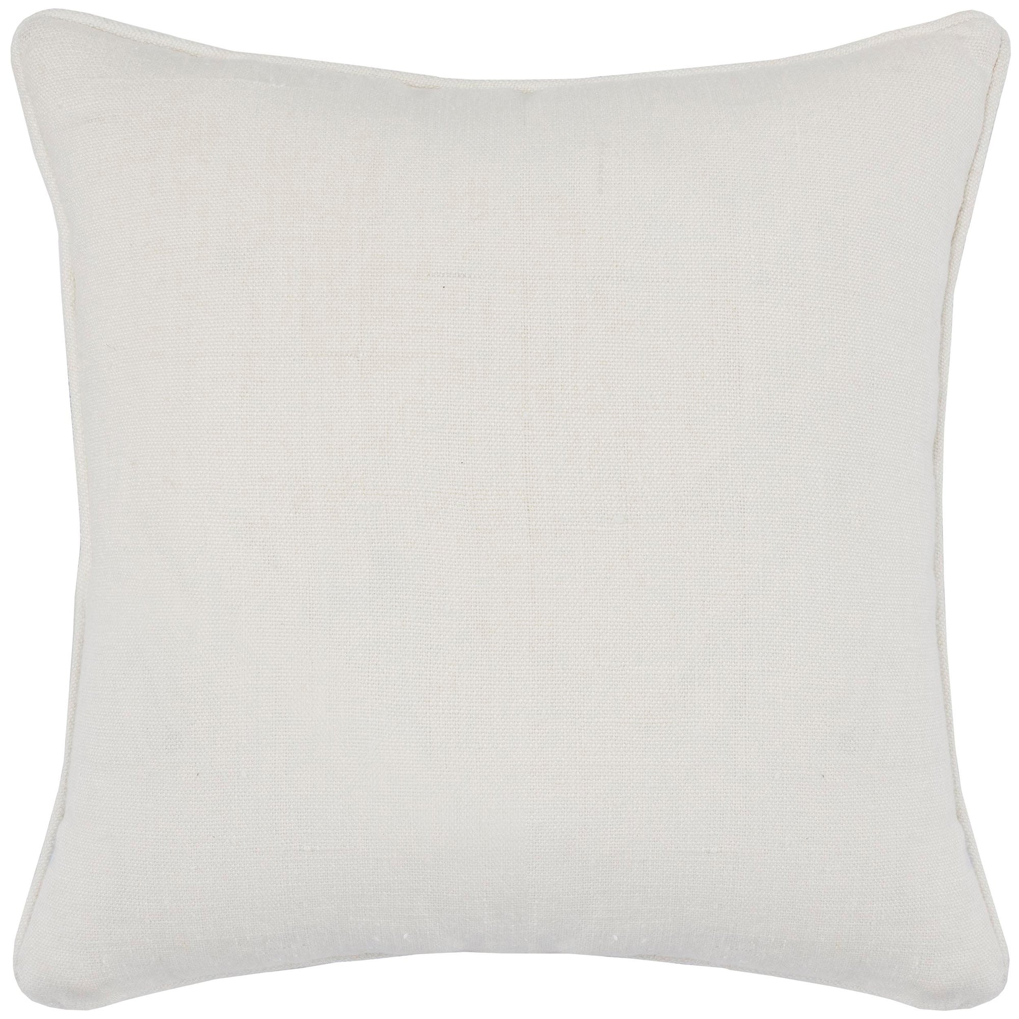 The Katia Pillow features blue embroidery adding color and texture to its geometric design. Crafted from 100% Belgian flax linen with a cotton-linen blend back, it combines softness and durability. Filled with a down and feather blend, this pillow provides lasting comfort.