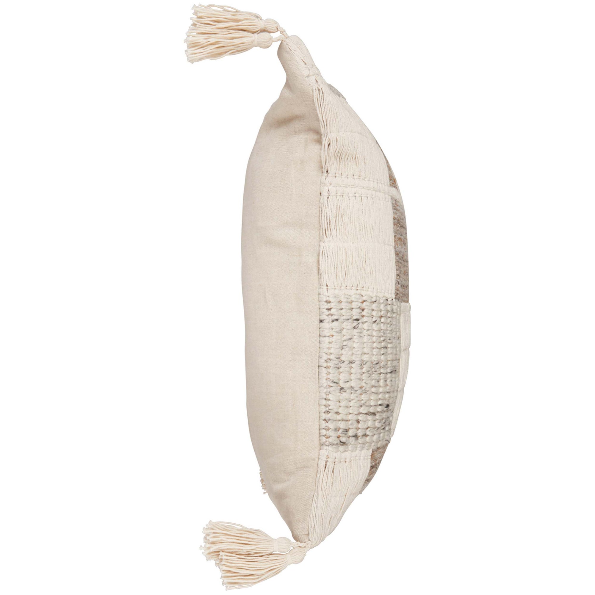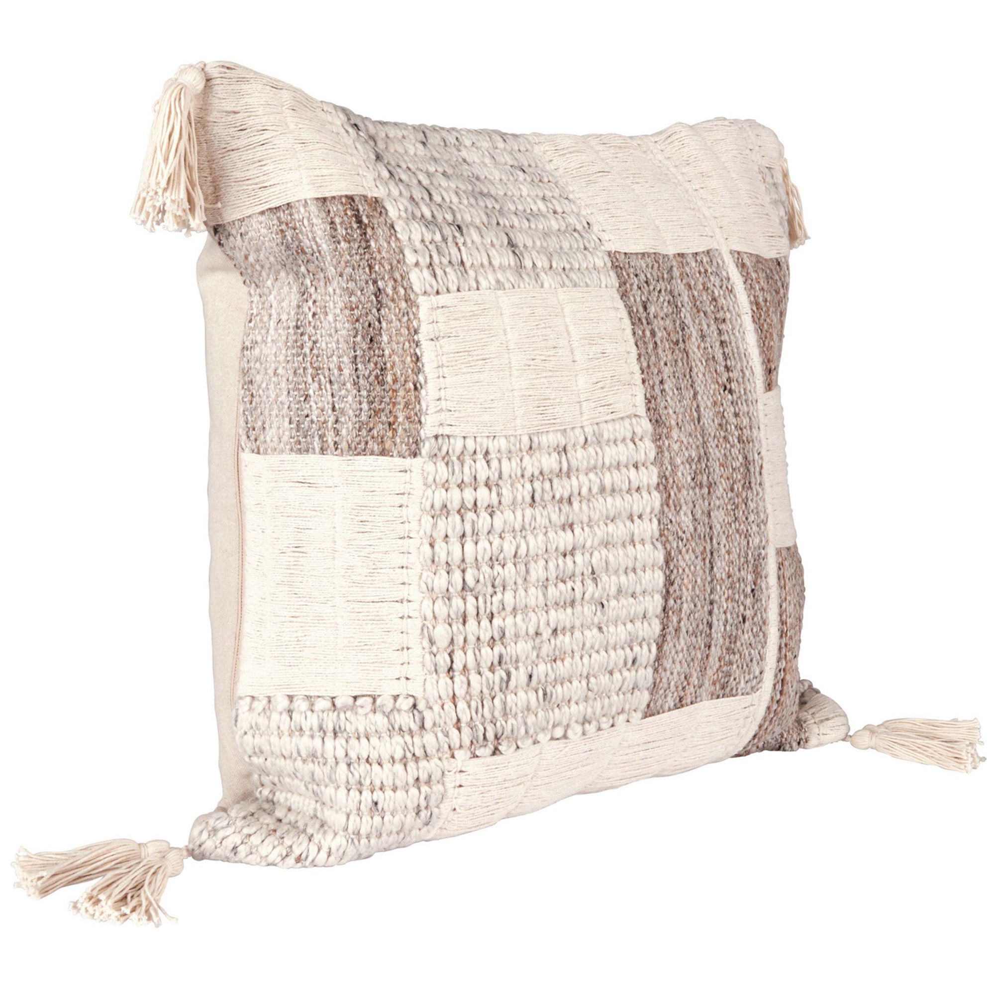 The Lamar Pillow, Gray/Ivory, combines airy neutral tones with a bold block design for a refined organic-modern look. Handcrafted with woven mélange yarns and embroidery, this pillow offers rich texture and a soft hand feel that both grounds and lightens any space with understated sophistication.