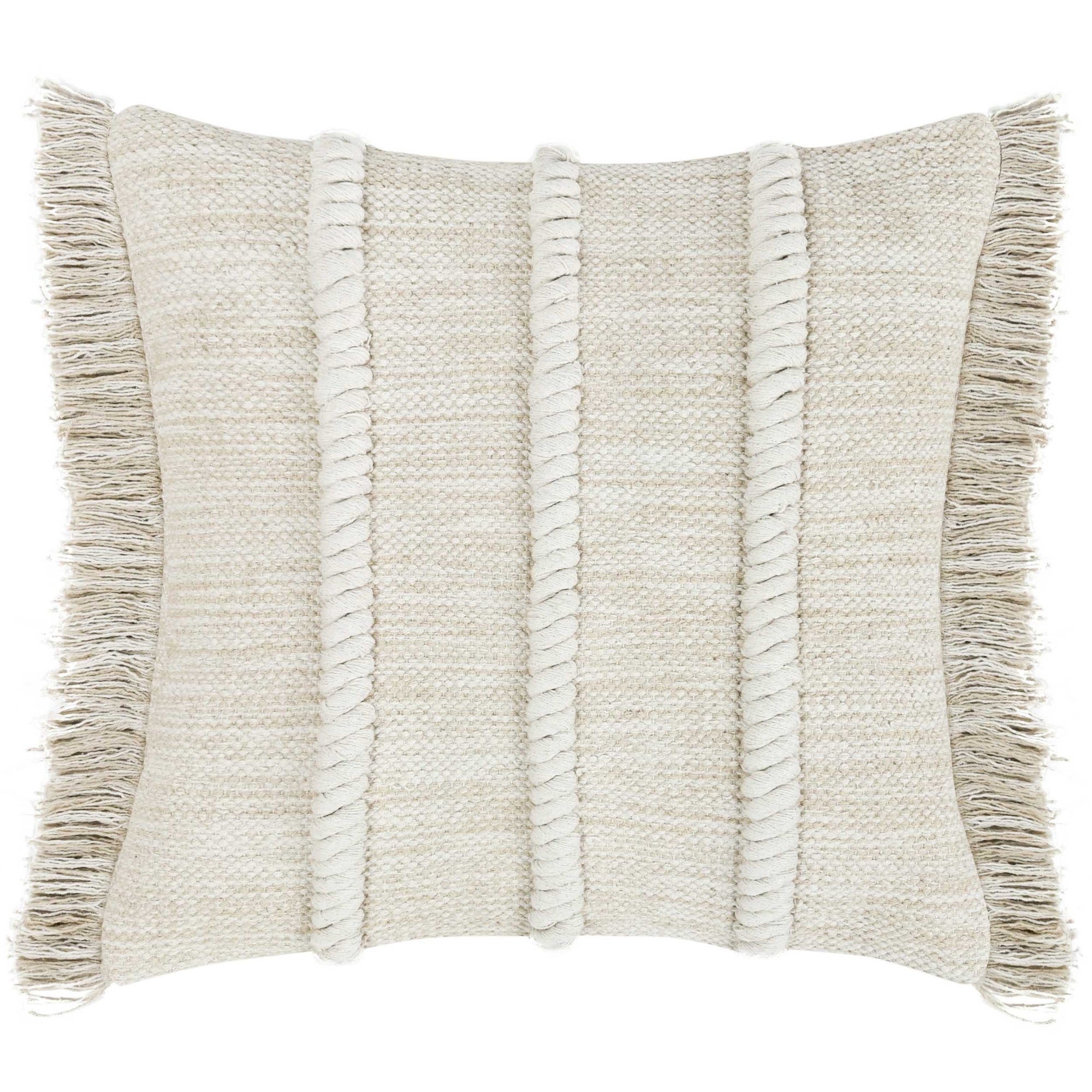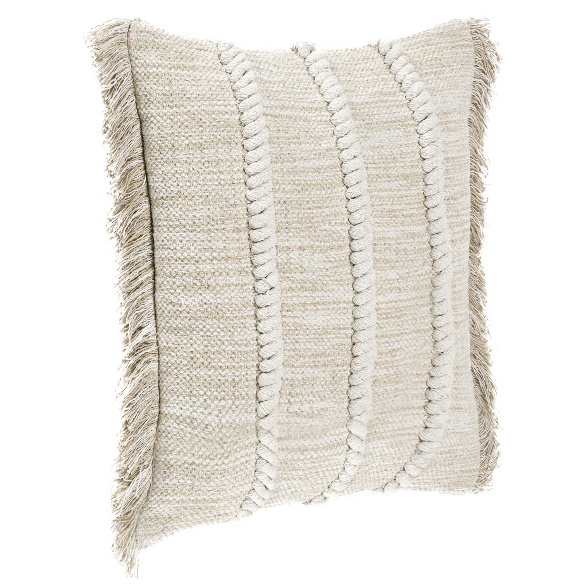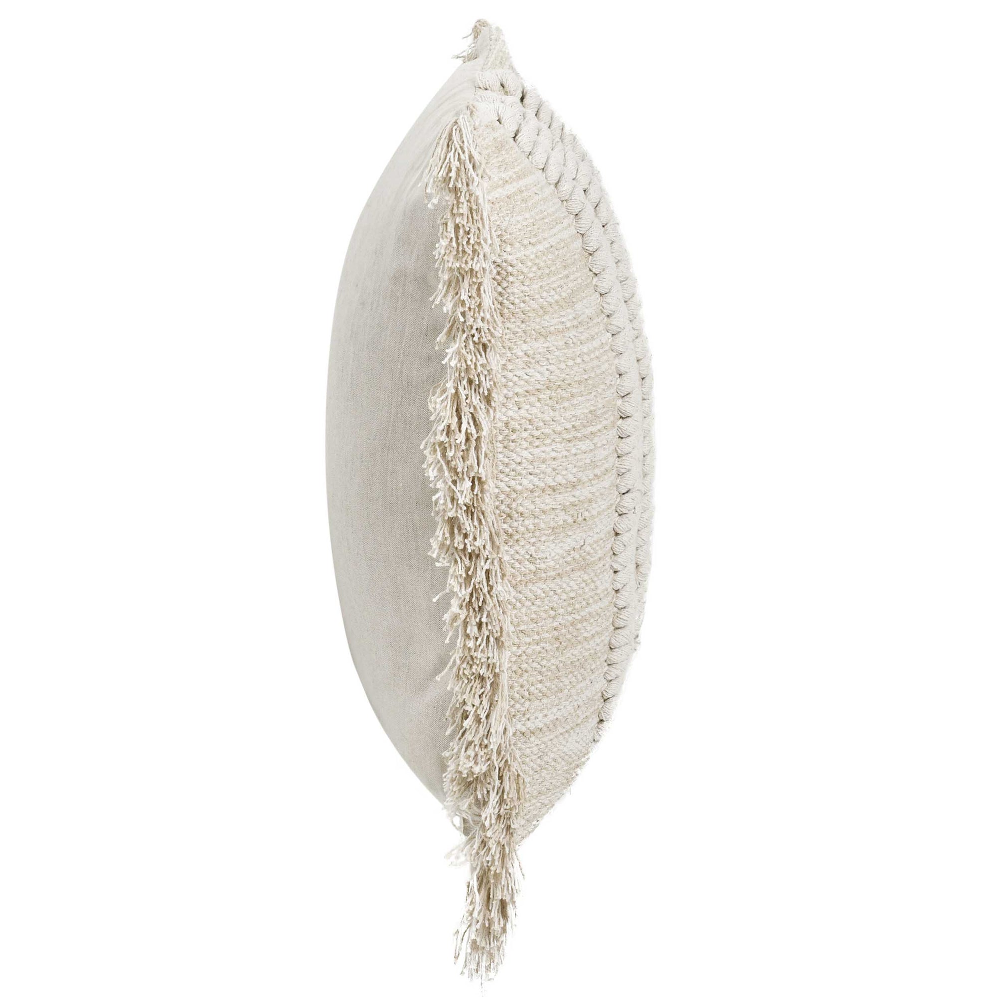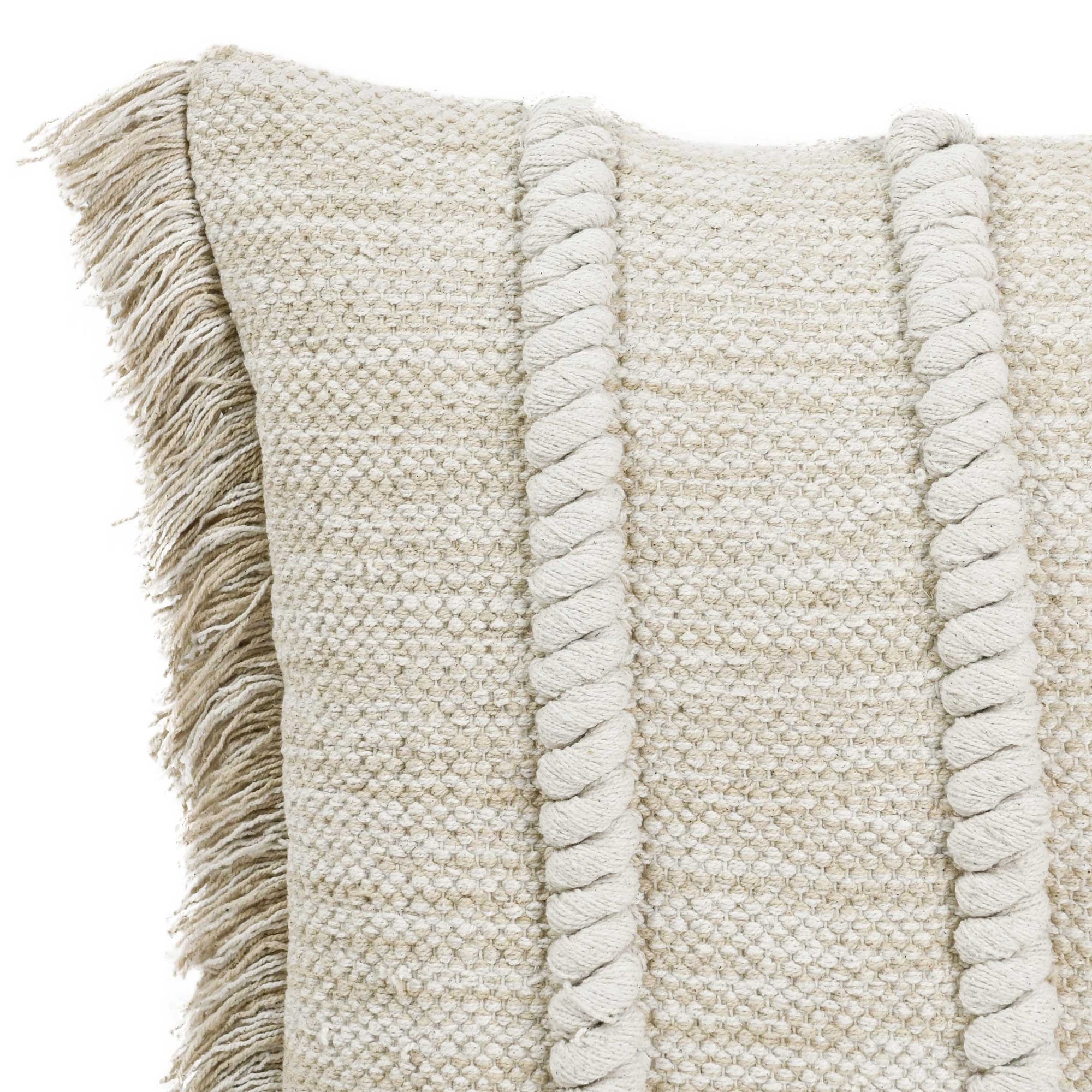 The Lucera Pillow is richly textured with an organic, tonal palette inspired by the look of a straw harvest bundle. Woven mélange fabric and rope details add visual interest, while fringe edges bring playful movement and touchable appeal to any space.