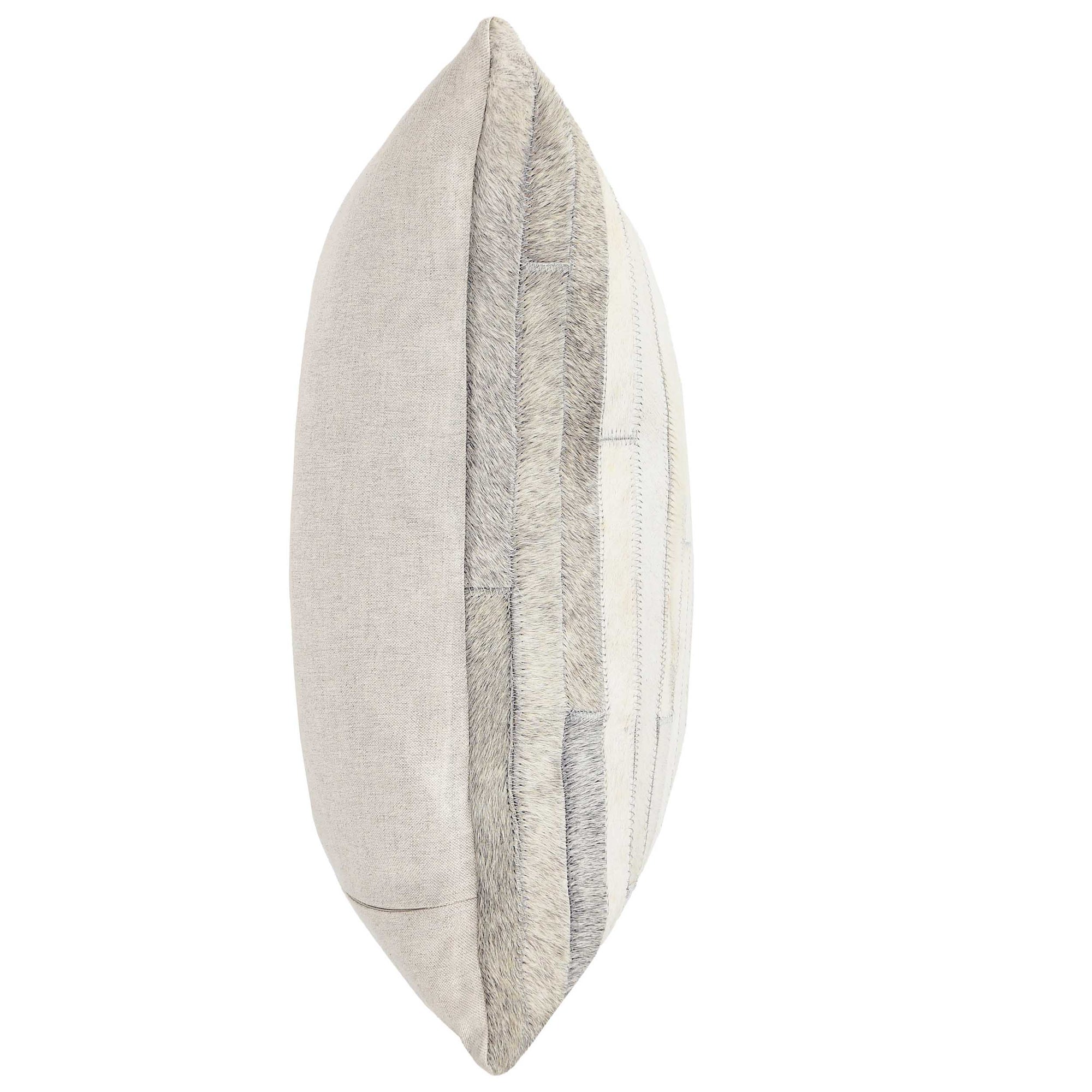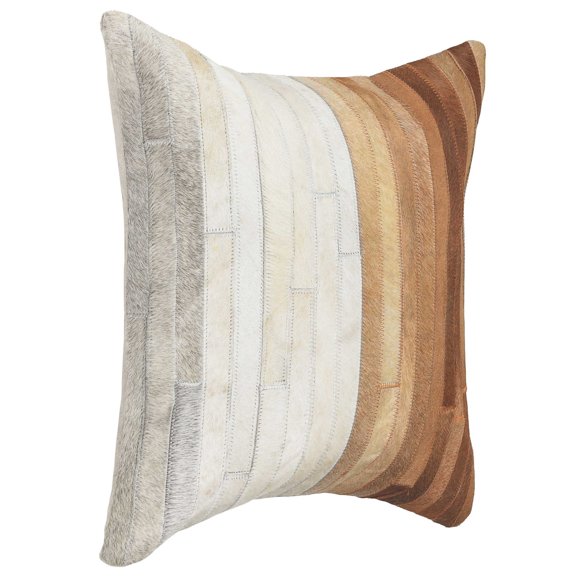 The Meru Hide Pillow features strips of genuine hair-on-hide pieced together to create a striking gradient effect. This handcrafted pillow embraces the natural variations in color and texture inherent to hide, making each one truly one of a kind. A feather and down insert provides plush, supportive comfort, making it both a decorative and functional addition to any space.