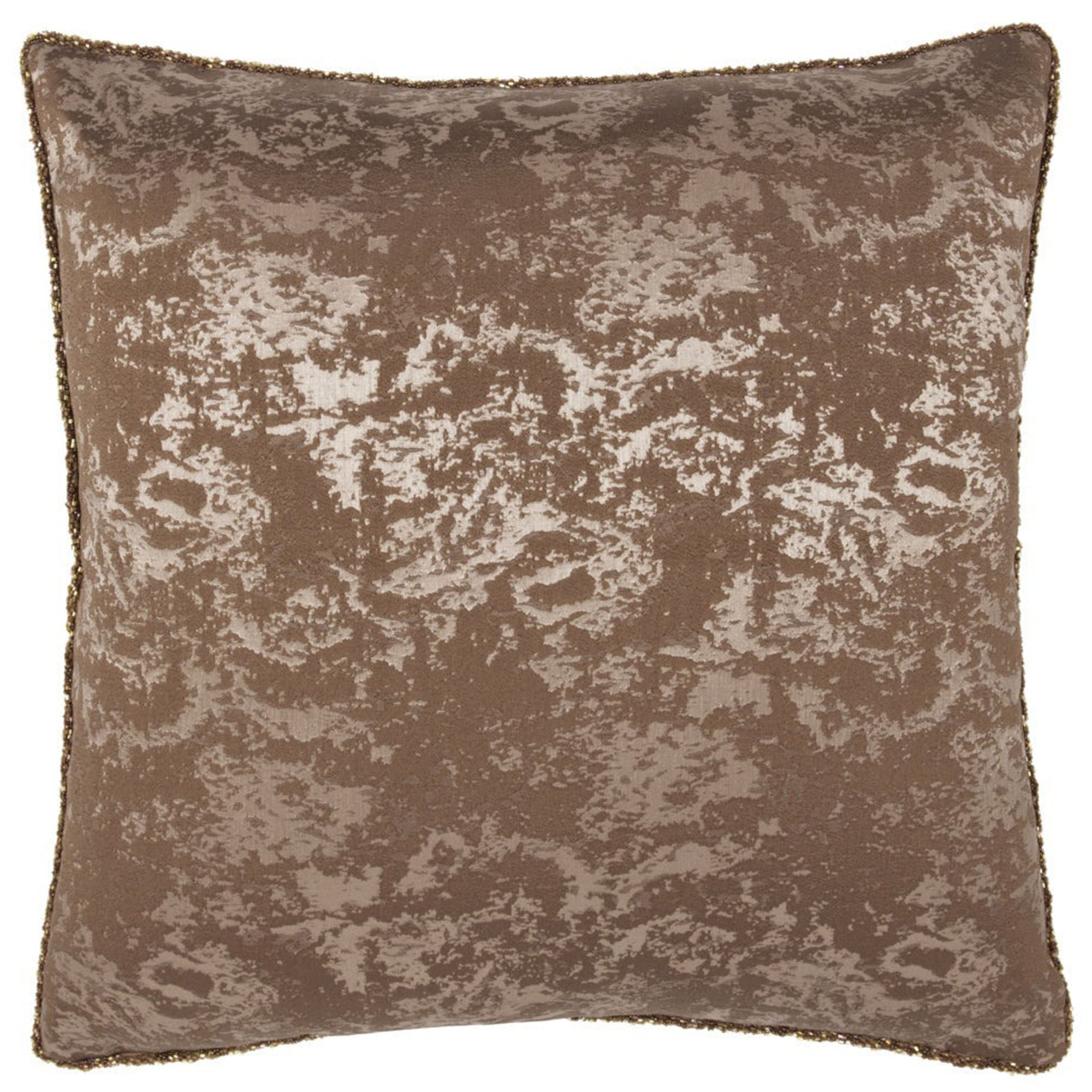 The Mica Pillow showcases a subtle patina-inspired woven design accented with elegant beaded trim for a sophisticated look. Its feather-and-down blend insert offers supportive comfort, making it as practical as it is beautiful.