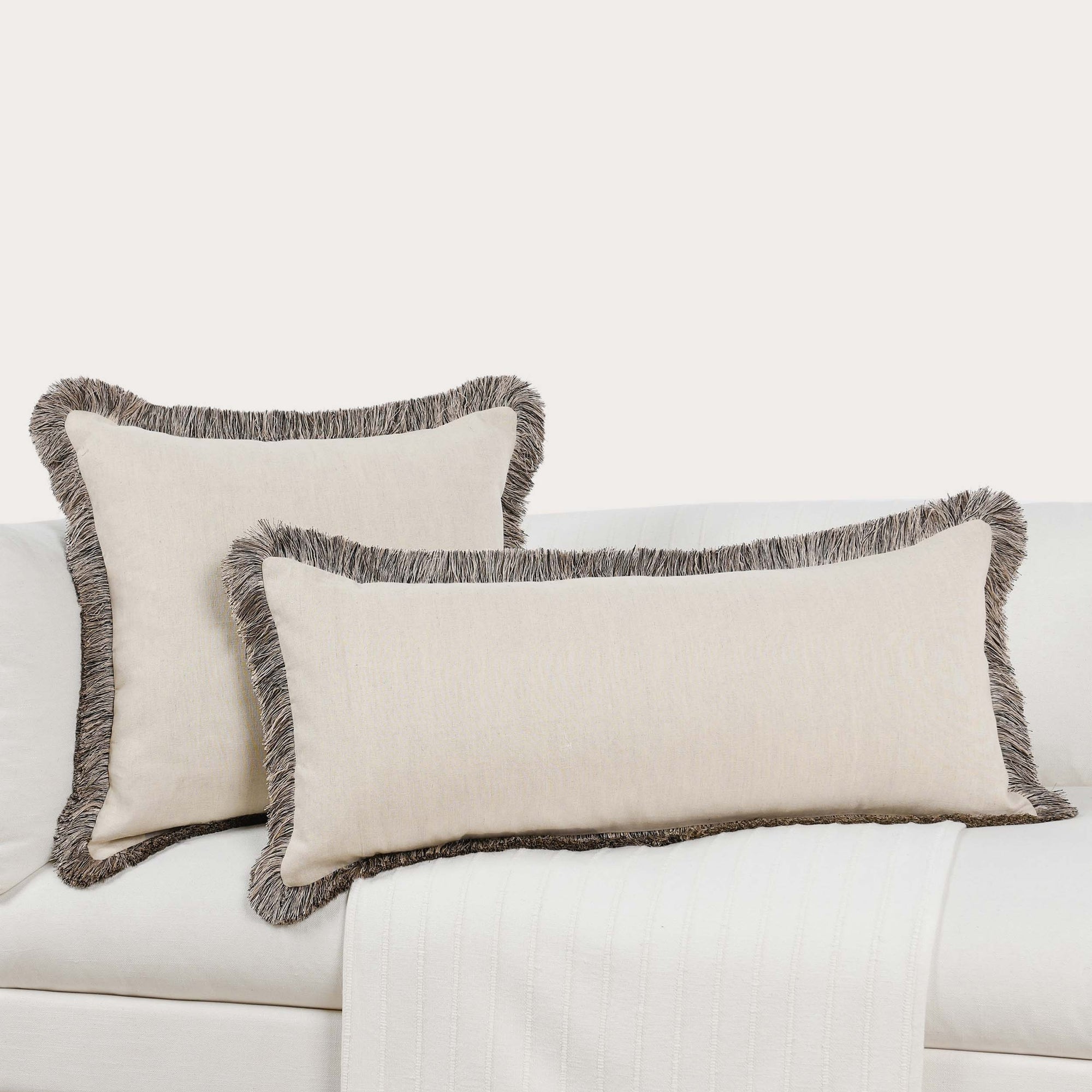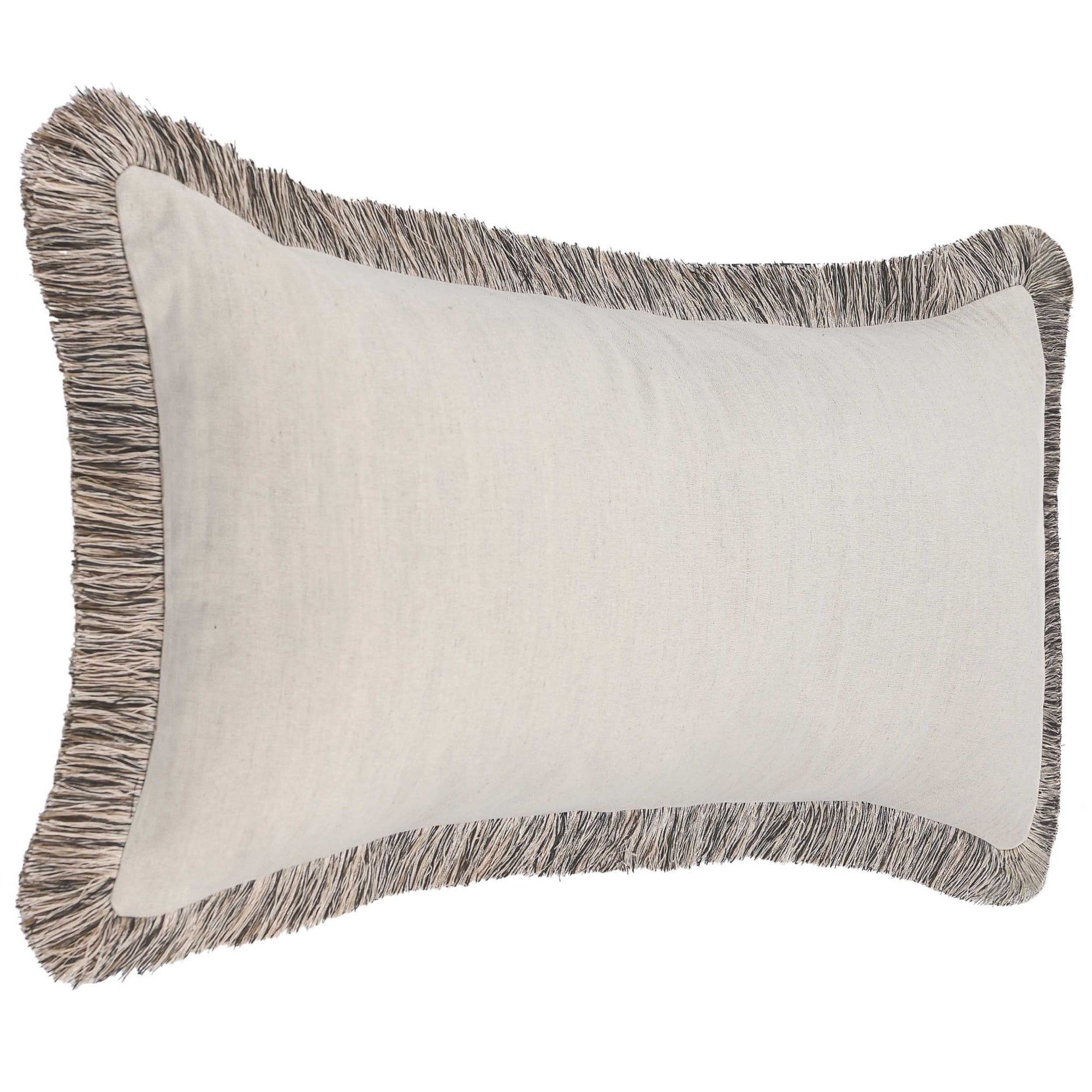 The Nola Lumbar Pillow features a grounded cotton and linen textured fabric that highlights the lush texture of fringe around its design. A perfect pillow for layering, its soft feather and down blend insert provides a lavishly supportive feel, making it as comfortable as it is beautiful.