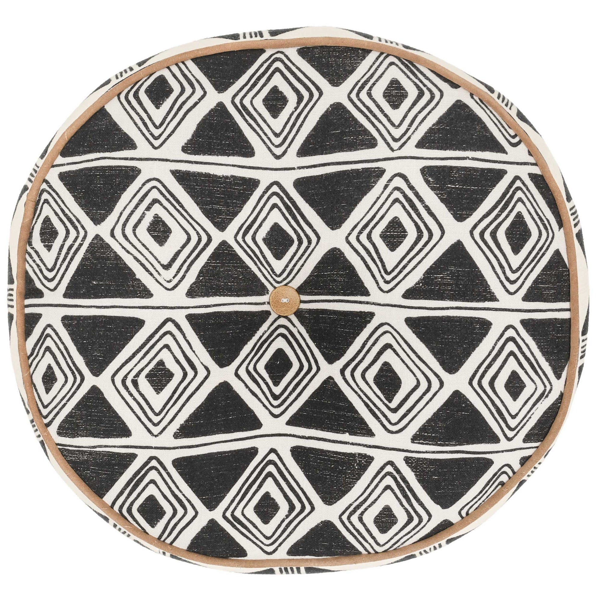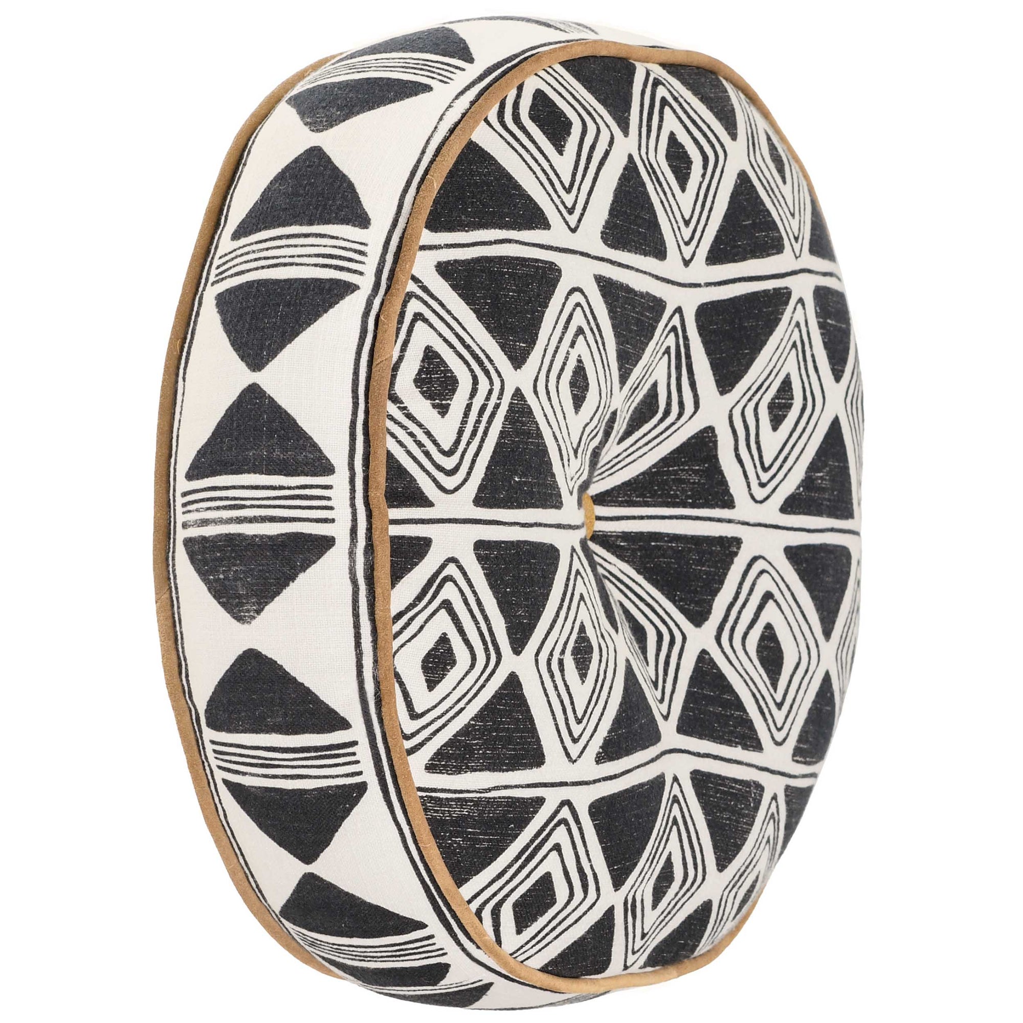 The Nubia Round Pillow features an artisanal block print design with a unique circular shape that brings a creative accent to your décor. Its prefilled structure offers soft support without the need for a removable insert, making it both stylish and convenient.