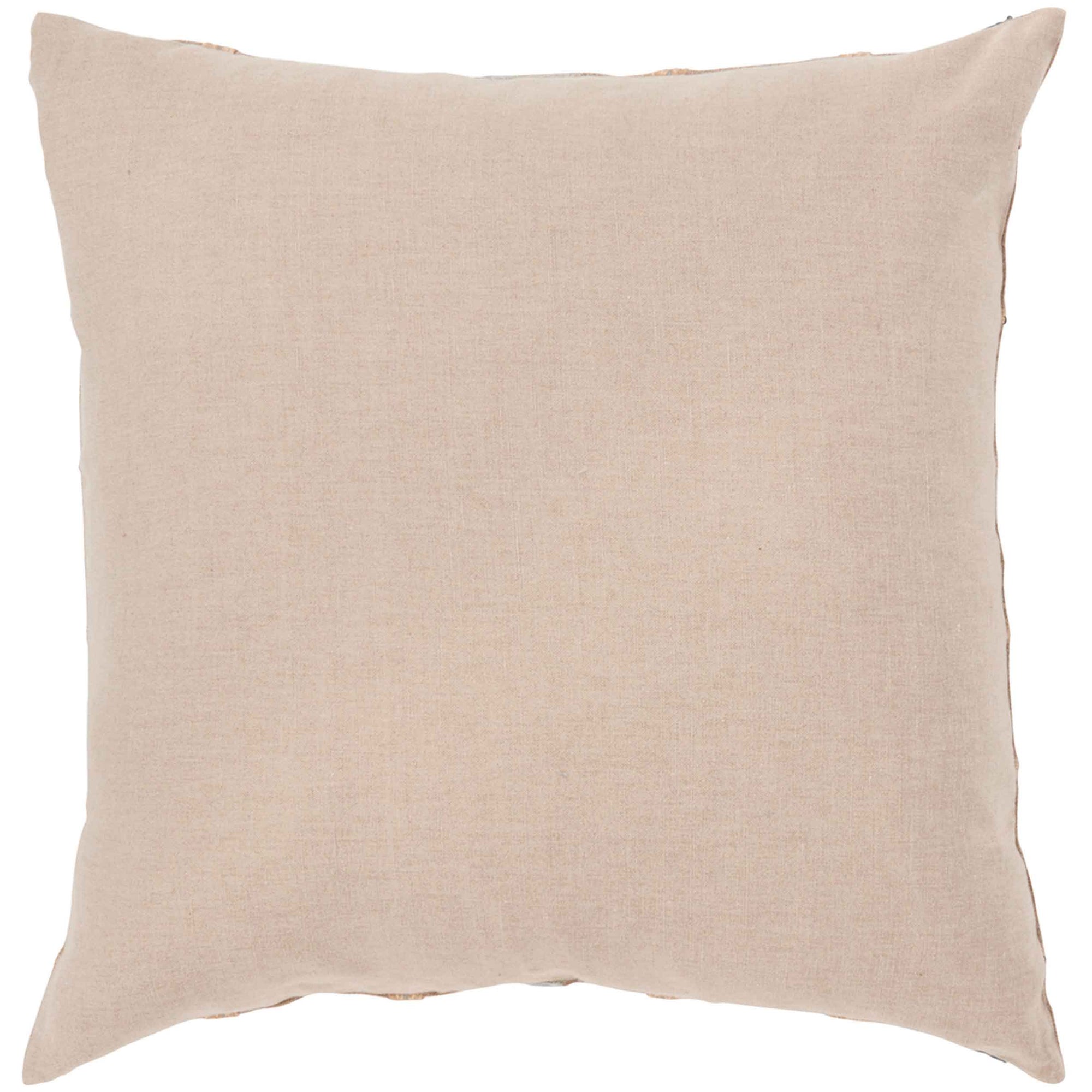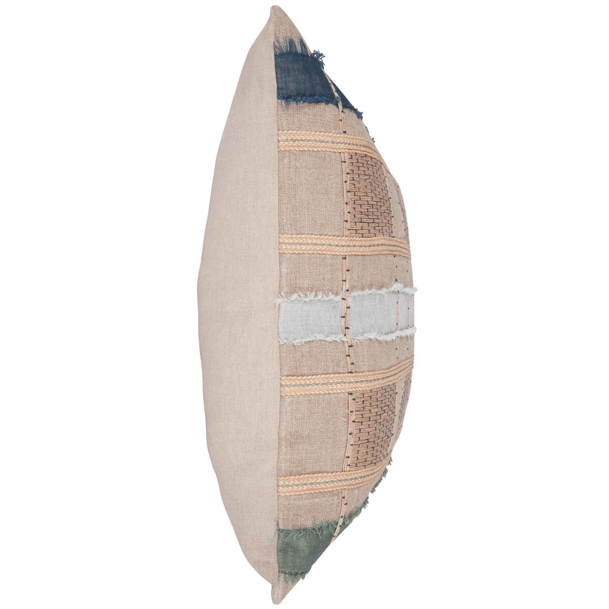 The Stratton Pillow features hand-cut and appliqued linen with frayed edging, softening the geometric stripes and squares in its multicolored design. Embroidery and rope detailing add an extra layer of texture, perfect for enhancing a coastal-inspired space.