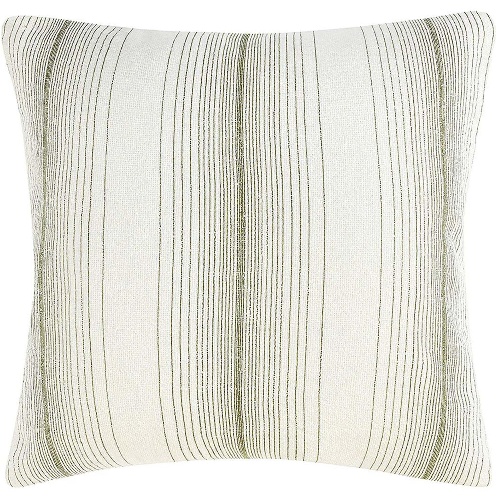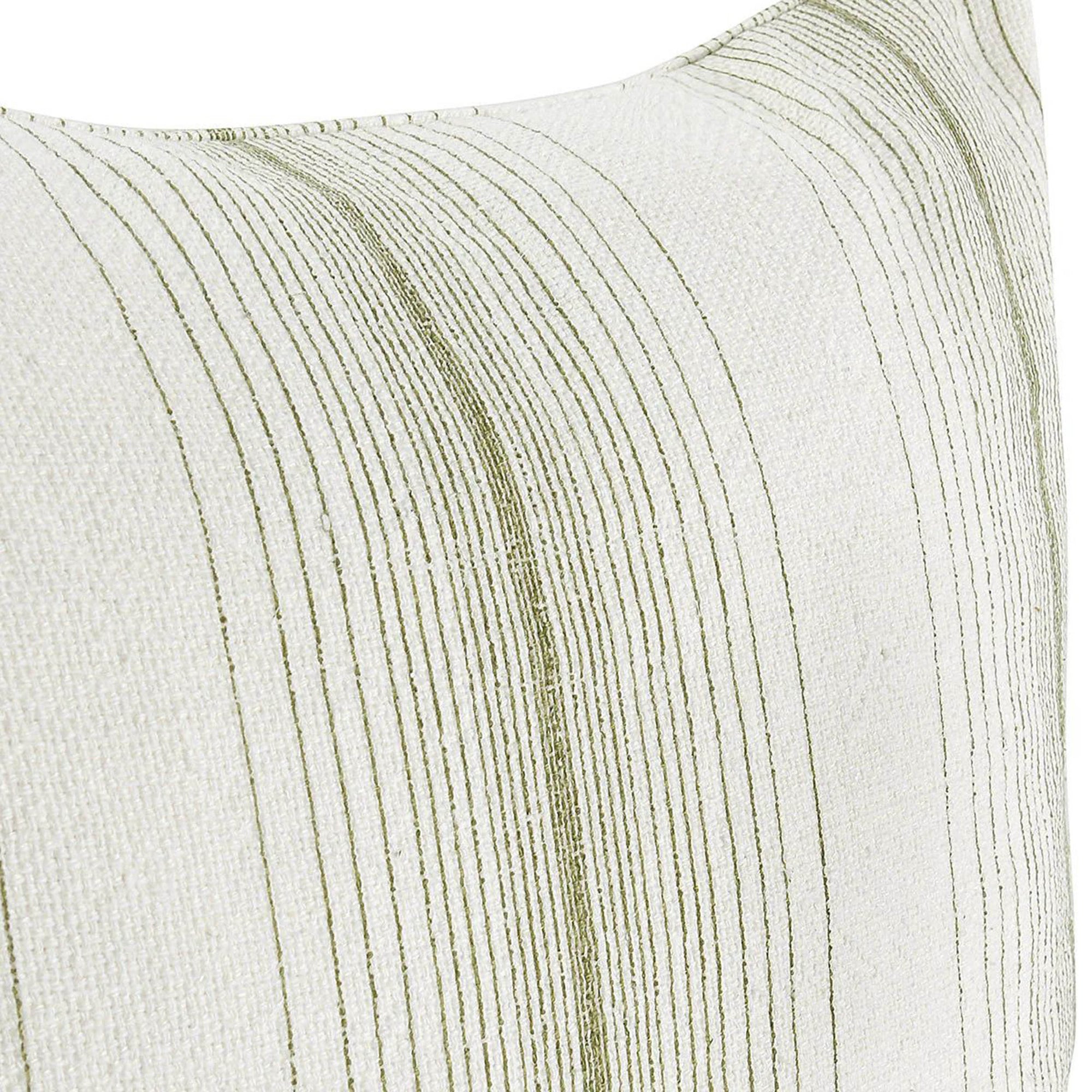 The Theta Pillow is screen printed by hand atop a delicately textured cotton linen blend, offering a crisp, versatile look that enhances any design from coastal to modern.
