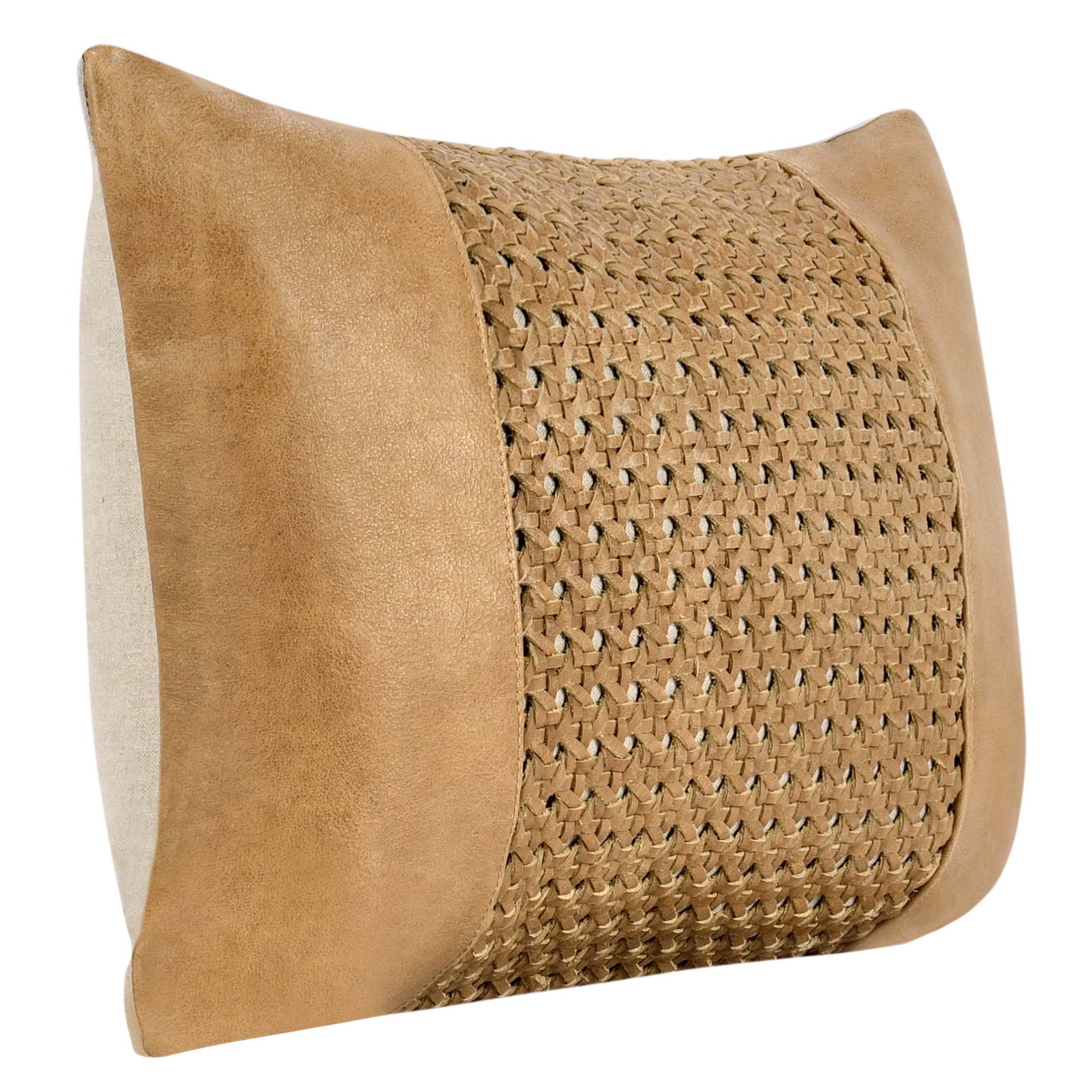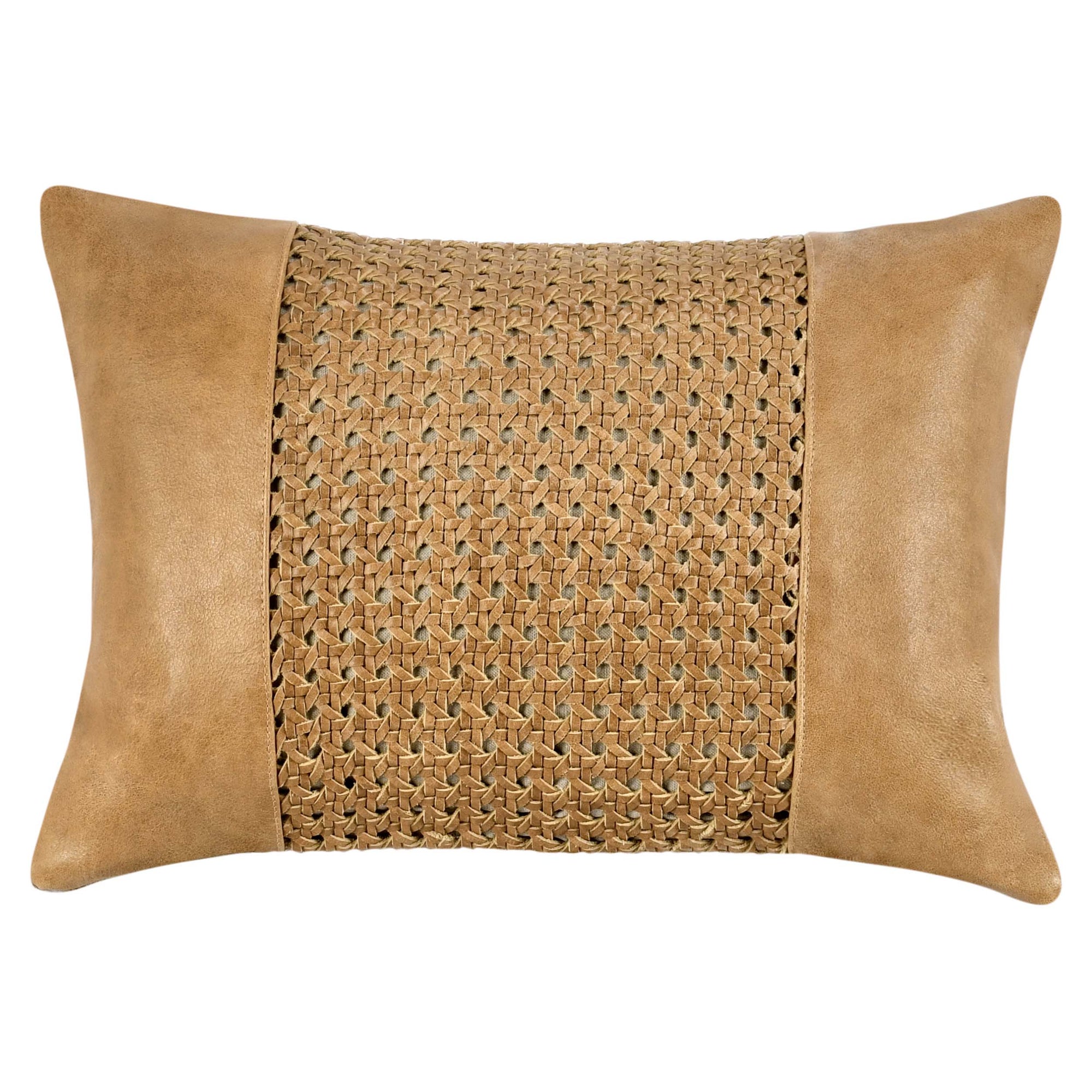 The Tolcano Leather Pillow is hand-woven from 100% genuine leather, forming an intricate pattern that adds rich texture and visual interest. Its supple hand feel and masculine elegance make it a striking accent for any room. A cotton lining and back complete the design for comfort and durability.