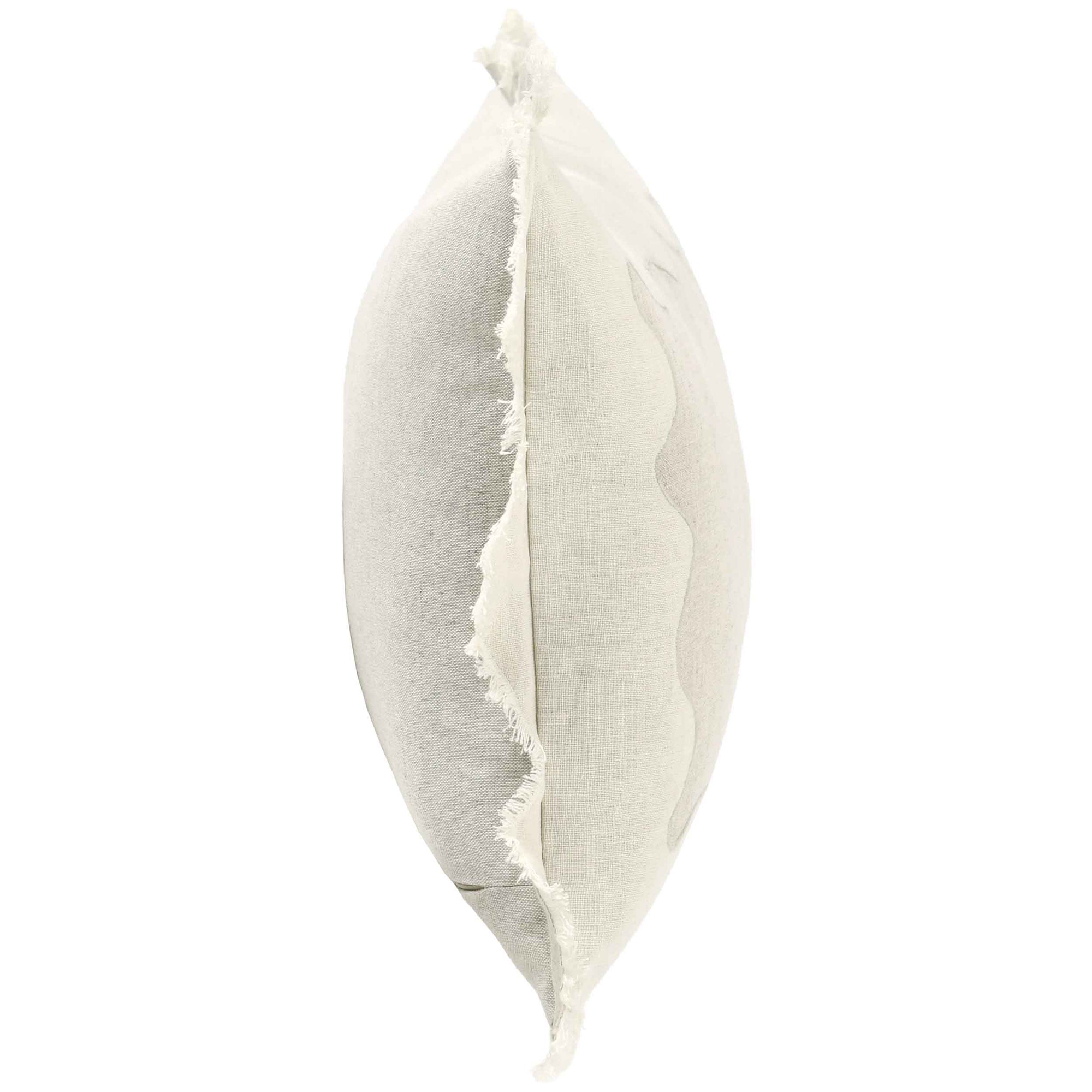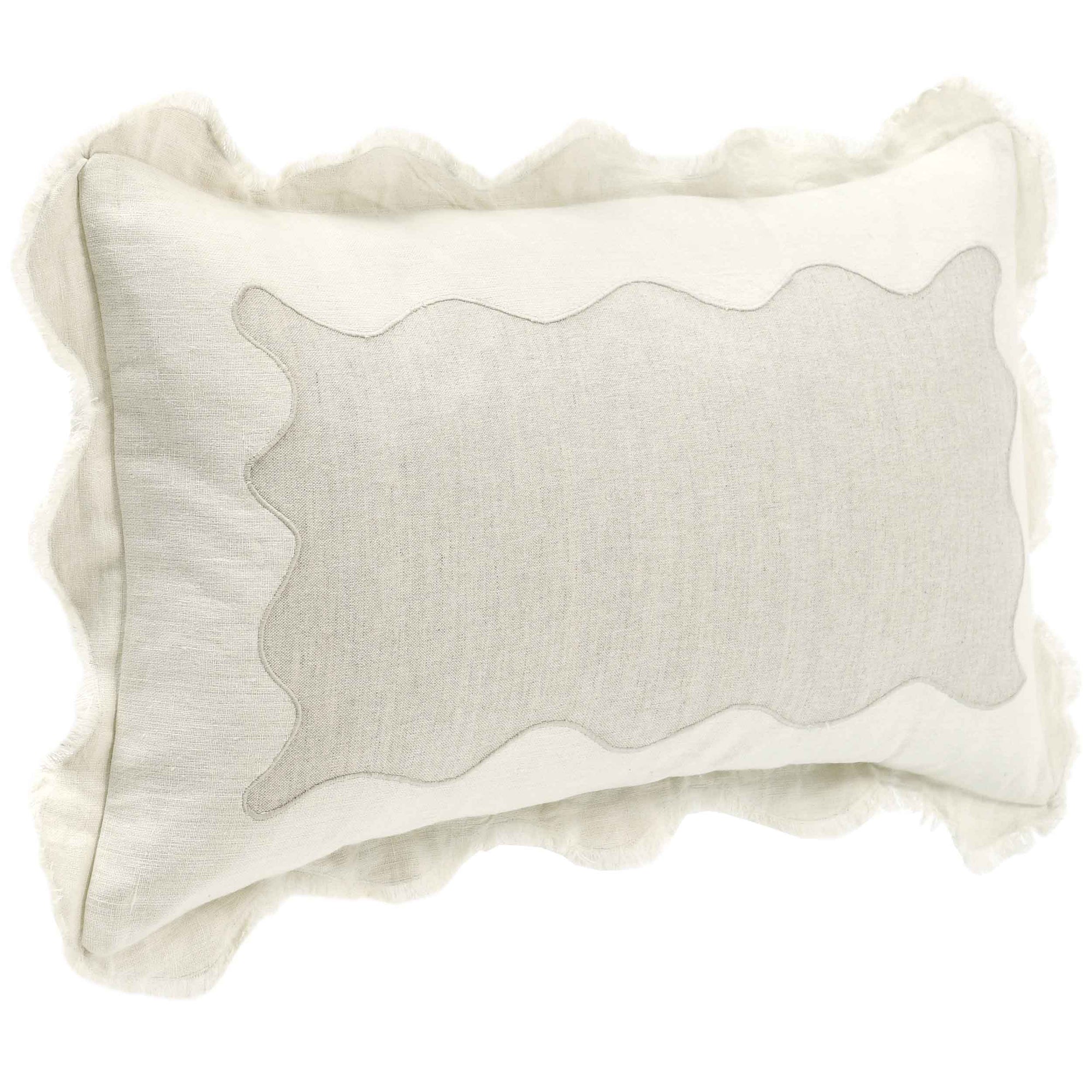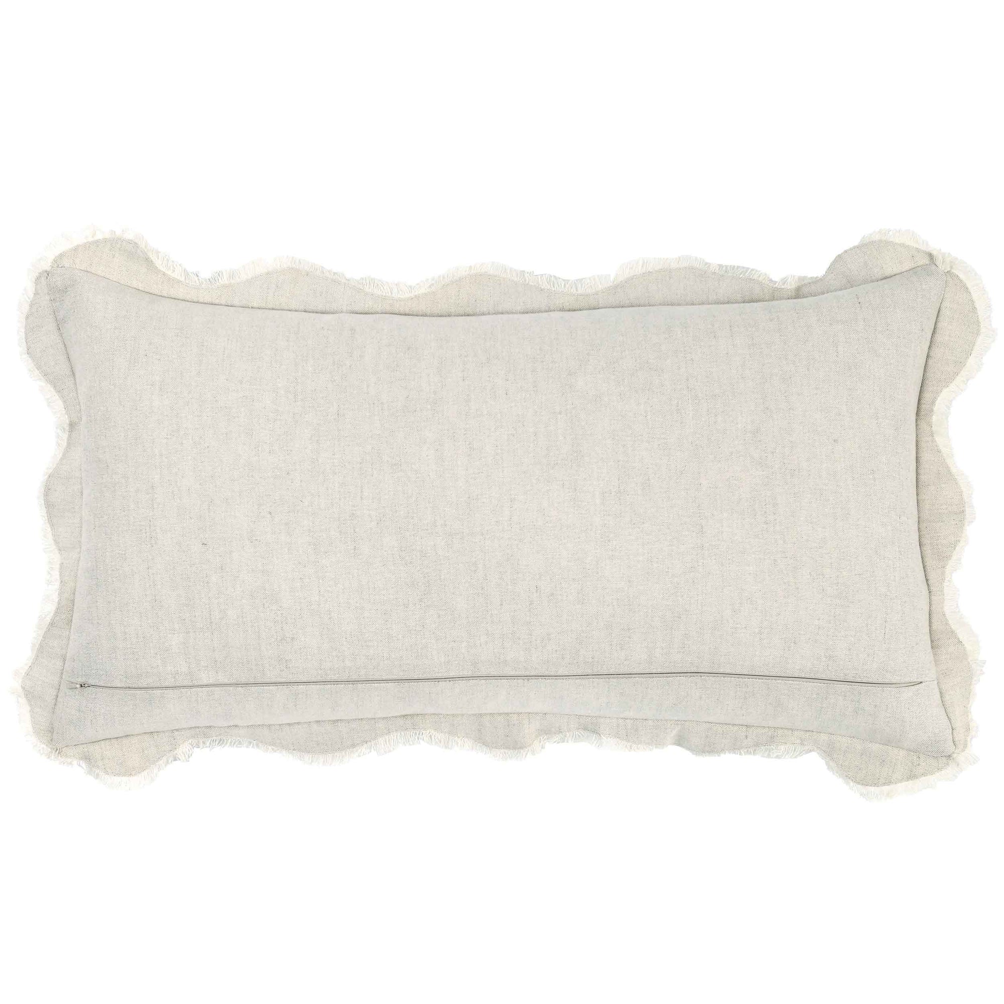 The Tollo Lumbar Pillow showcases scalloped curves in soft linen with hand-applied applique, accented by a delicate embroidered outline. A flange edge with self-fringe adds extra texture, while the tonal design complements most color palettes. A plush feather blend insert ensures premium comfort.
