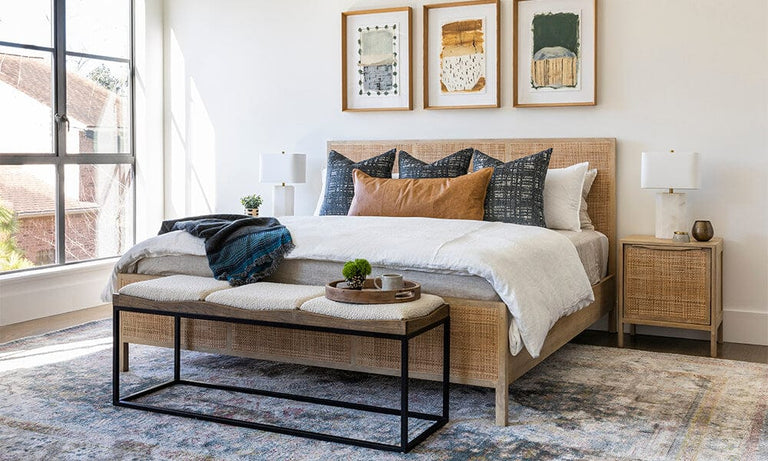 dream in airy, woven cane and cool, blonde wood. An iron-and-oak
