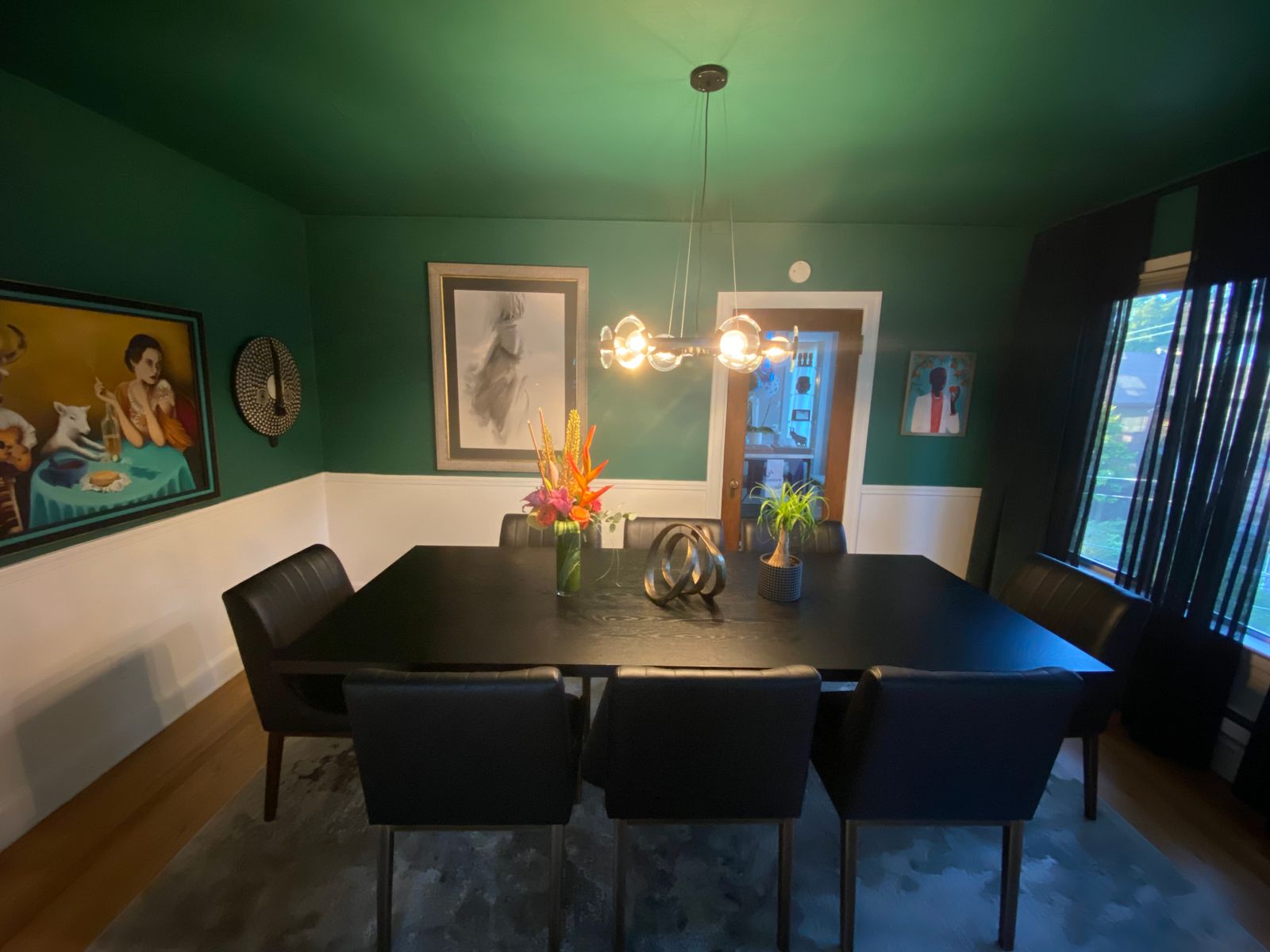We love these dining chairs! At first glance when trying them out, I thought they might be too wide. But they actually fit just right and provide enough elbow room for people to be next to each other. They are really comfy too, and are really close if not exact to the website image. My only negative feedback is on the legs of the chair. I believe they may be spray painted brass instead of powder coated or some other method for applying a finish that is more durable. The reason I say this is because the finish on the bottom legs of a few chairs were chipping when they arrived. Barely noticeable as it was at the very bottom but still a quality control issue.