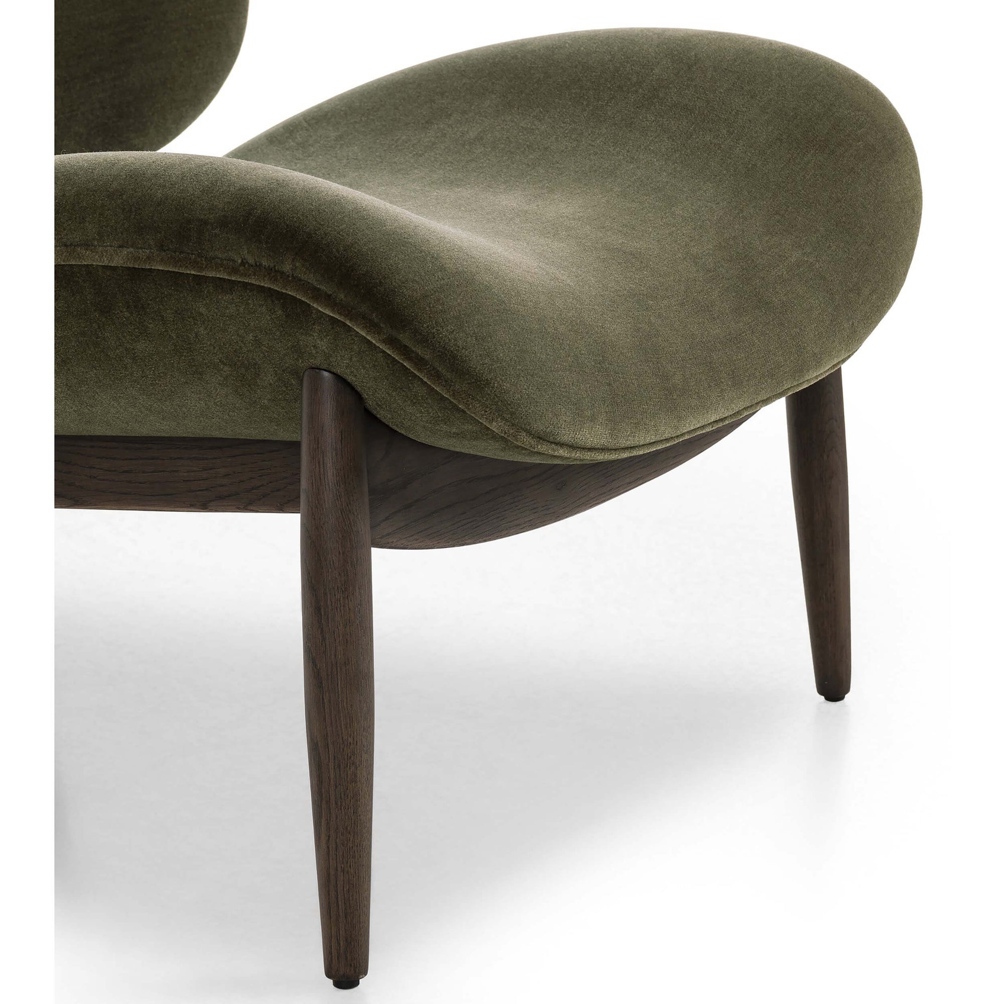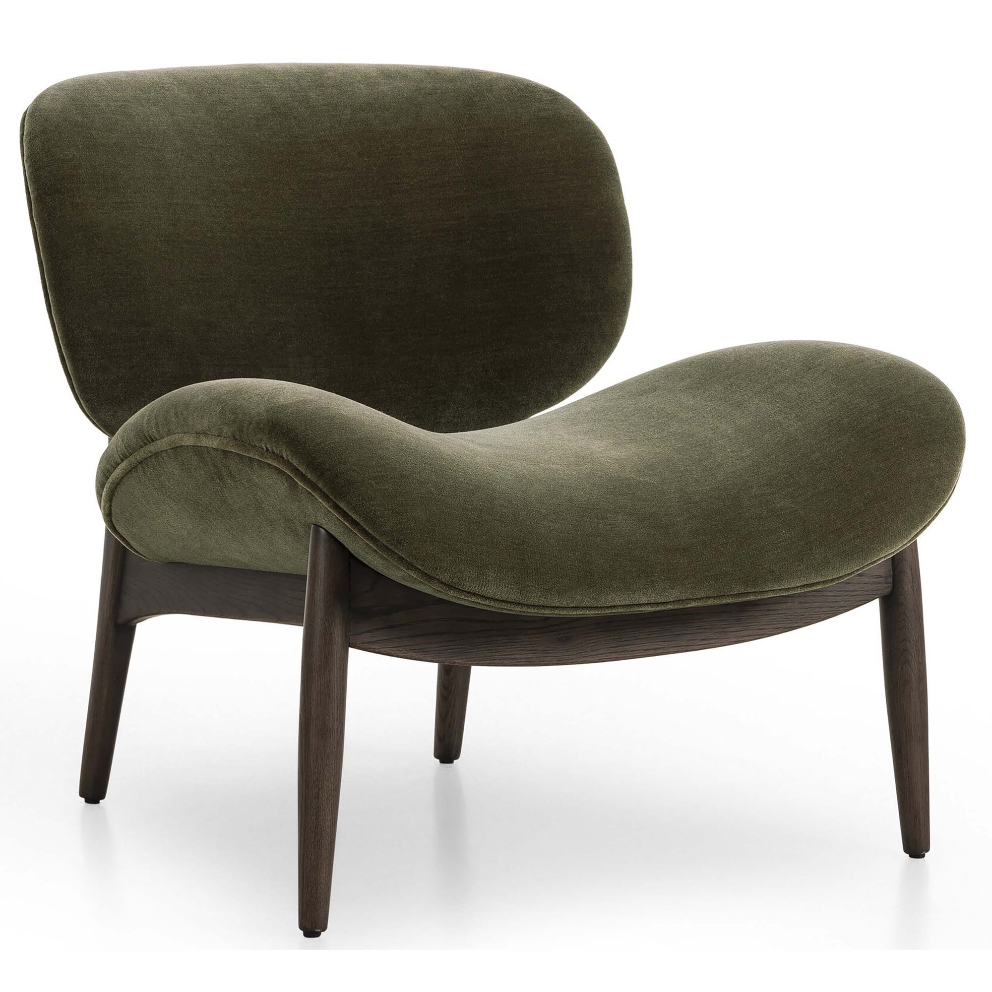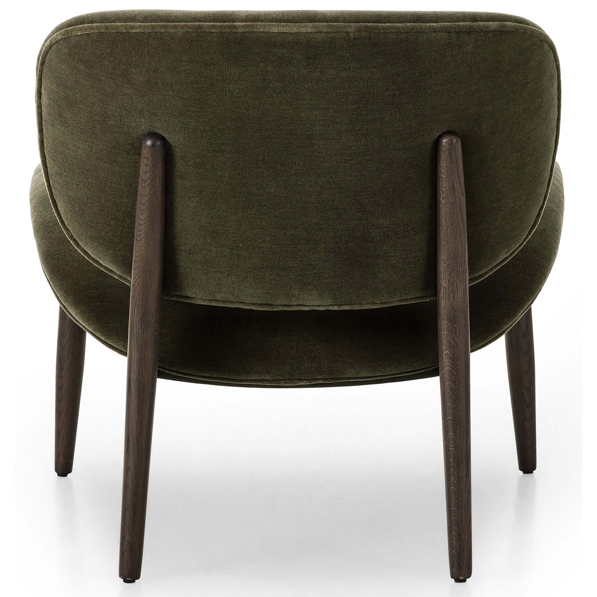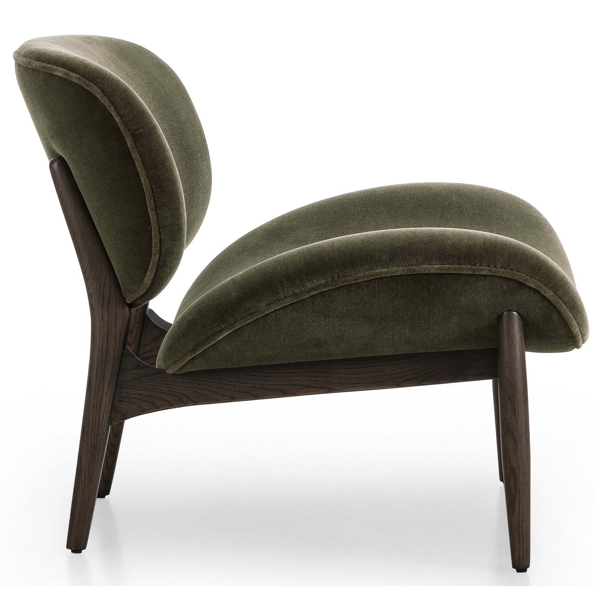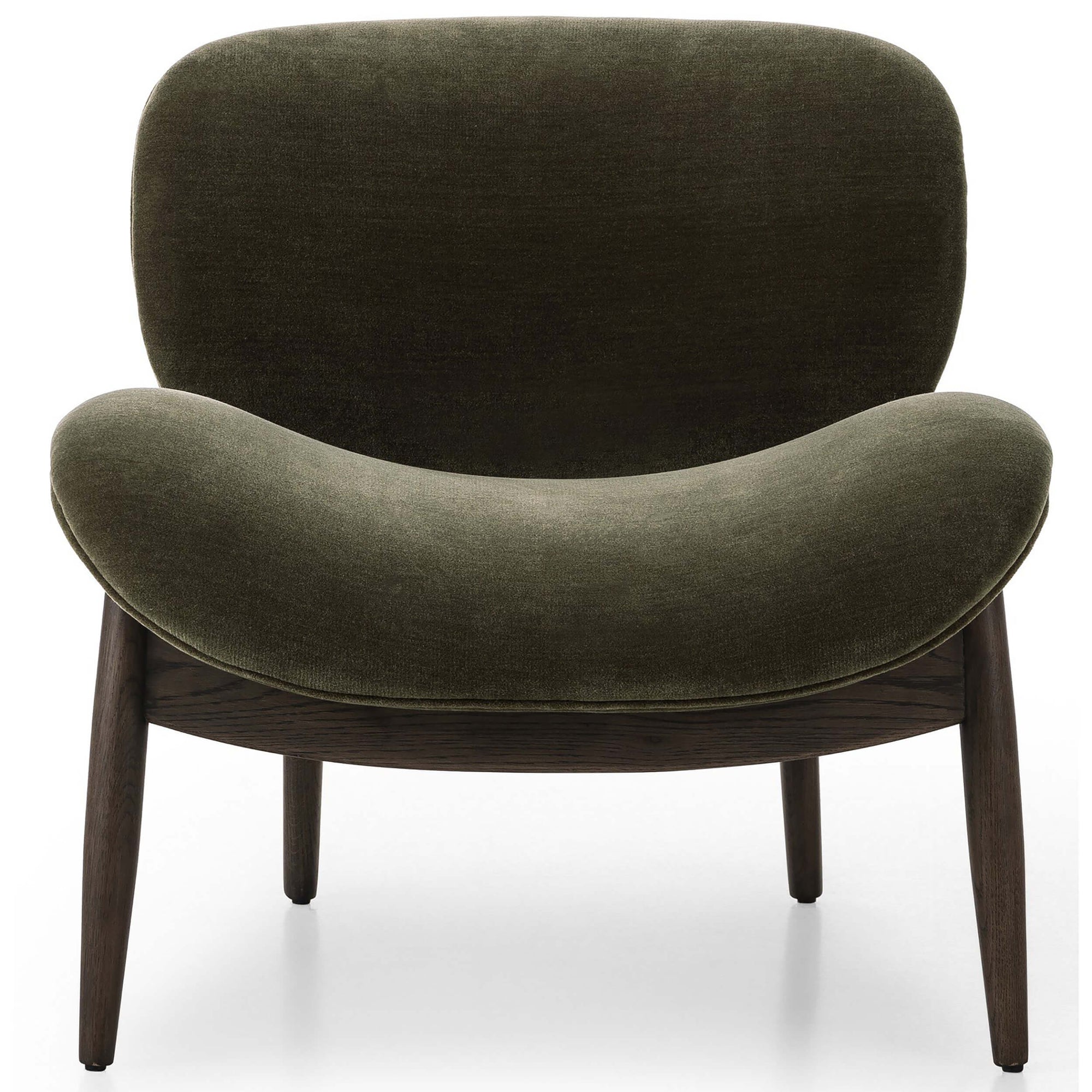 The Celine Chair is designed for ultimate relaxation with its wide proportions and cozy, curved cushioning. Upholstered in velvety olive chenille made from recycled materials, it combines sustainability with comfort. Slim, tapered wooden legs complete the look, offering a balanced, stylish accent piece perfect for unwinding in any room.