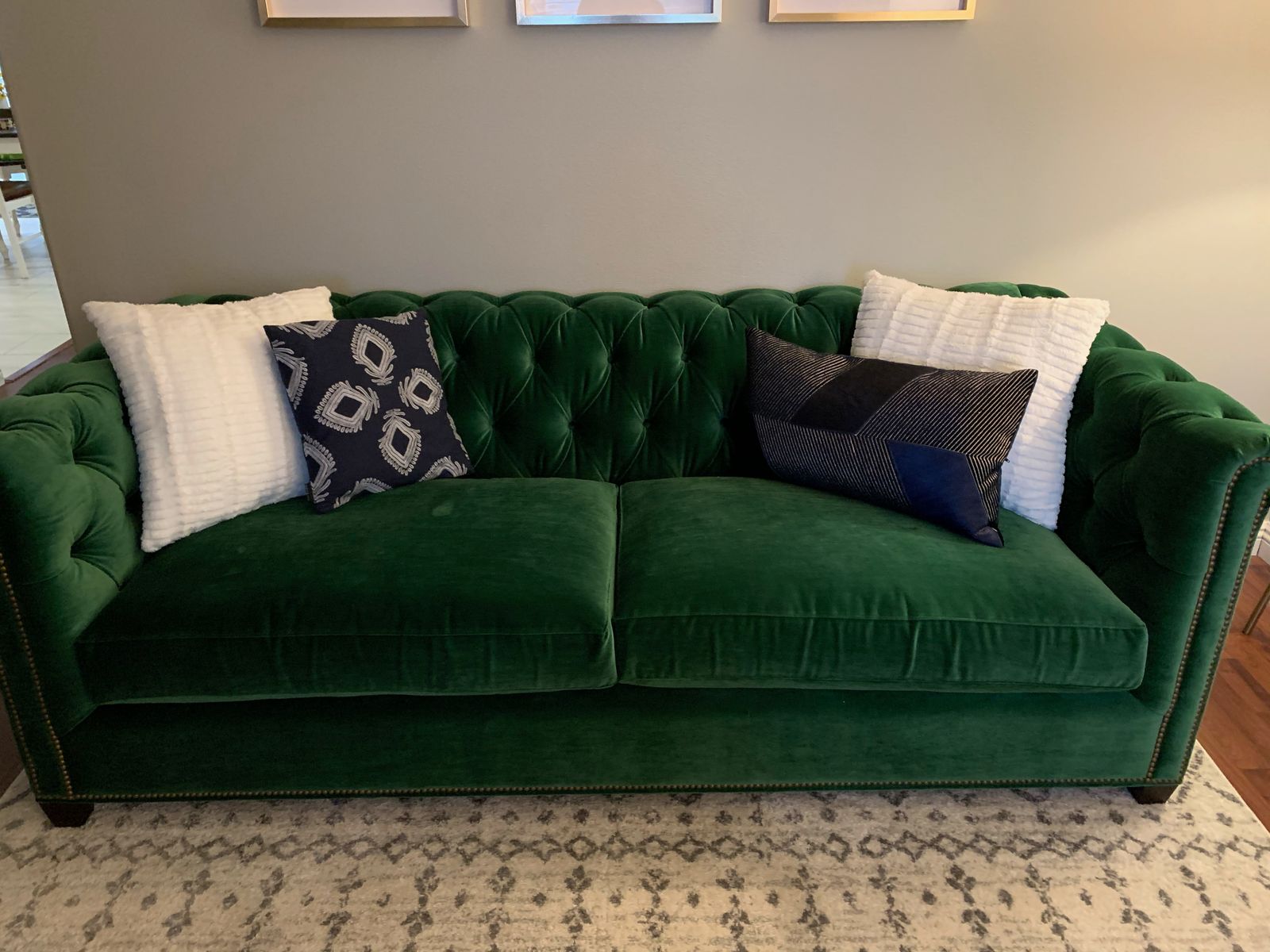 I love this sofa! It's stylish and comfortable! The emerald green color is beautiful!