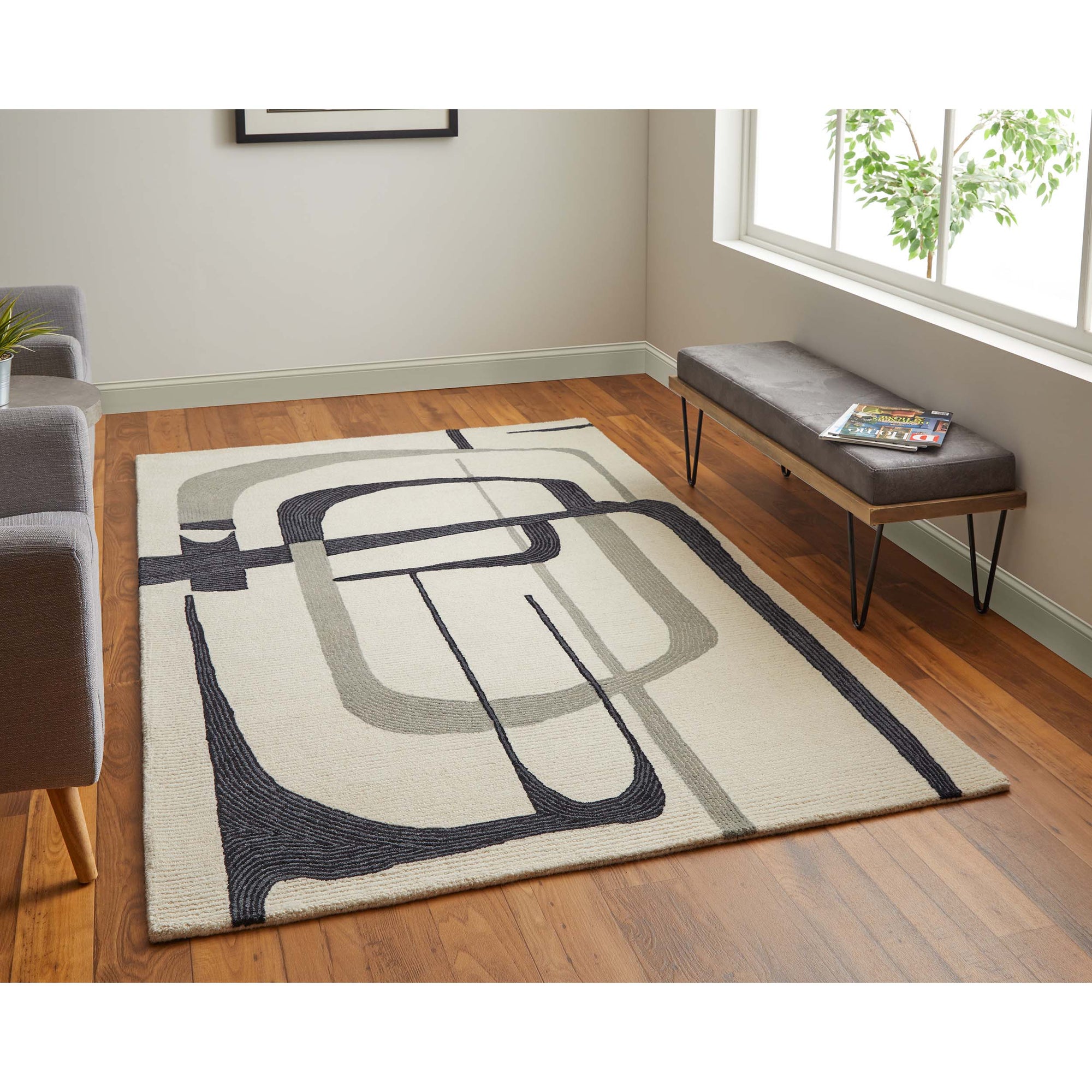 The Maguire Collection makes a bold statement with striking geometric patterns and a high-contrast palette of ivory and black. Hand-tufted in India from durable wool, each rug offers natural resistance to stains, water, and fading-ideal for high-traffic areas and pet-friendly homes. The graphic design adds a modern edge to any room, blending style and functionality with ease. Soft underfoot yet tough enough for everyday living, Maguire is a standout piece that elevates gathering spaces with its contemporary flair and easy-care appeal.
