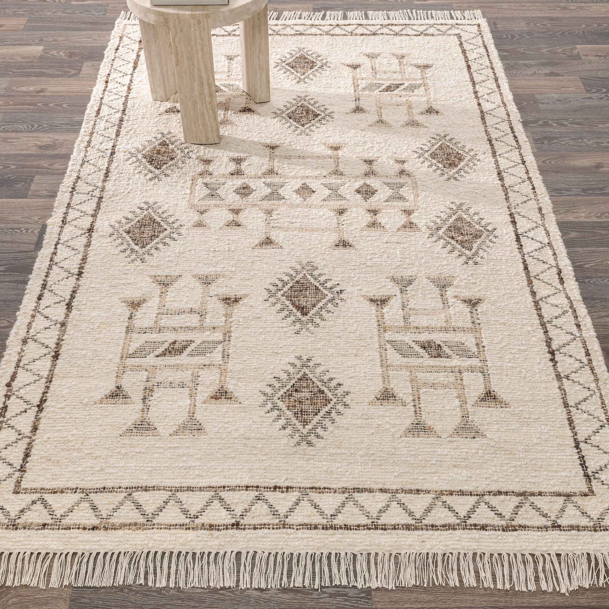 Handwoven from a wool, jute, and cotton blend, the Gazi Rug blends organic texture with earthy tones for an effortlessly grounded look. Its subtle striping and neutral palette bring a warm, versatile aesthetic to any space, while the artisanal weave provides natural charm and depth.
