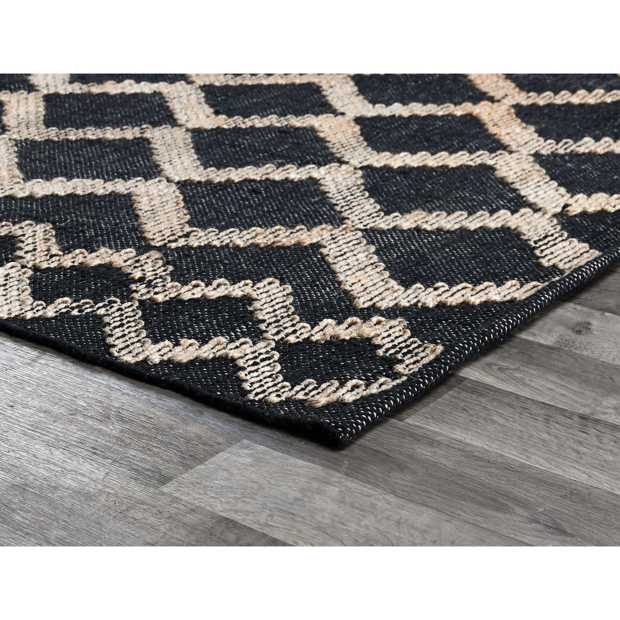 The Gobi Rug offers bold contrast and textural depth with its striking diamond pattern handwoven from jute and cotton fibers. Designed for medium-traffic areas, this sustainable rug balances graphic appeal with artisanal craftsmanship. Its flatwoven construction and neutral tones make it a versatile statement piece for a variety of interiors.
