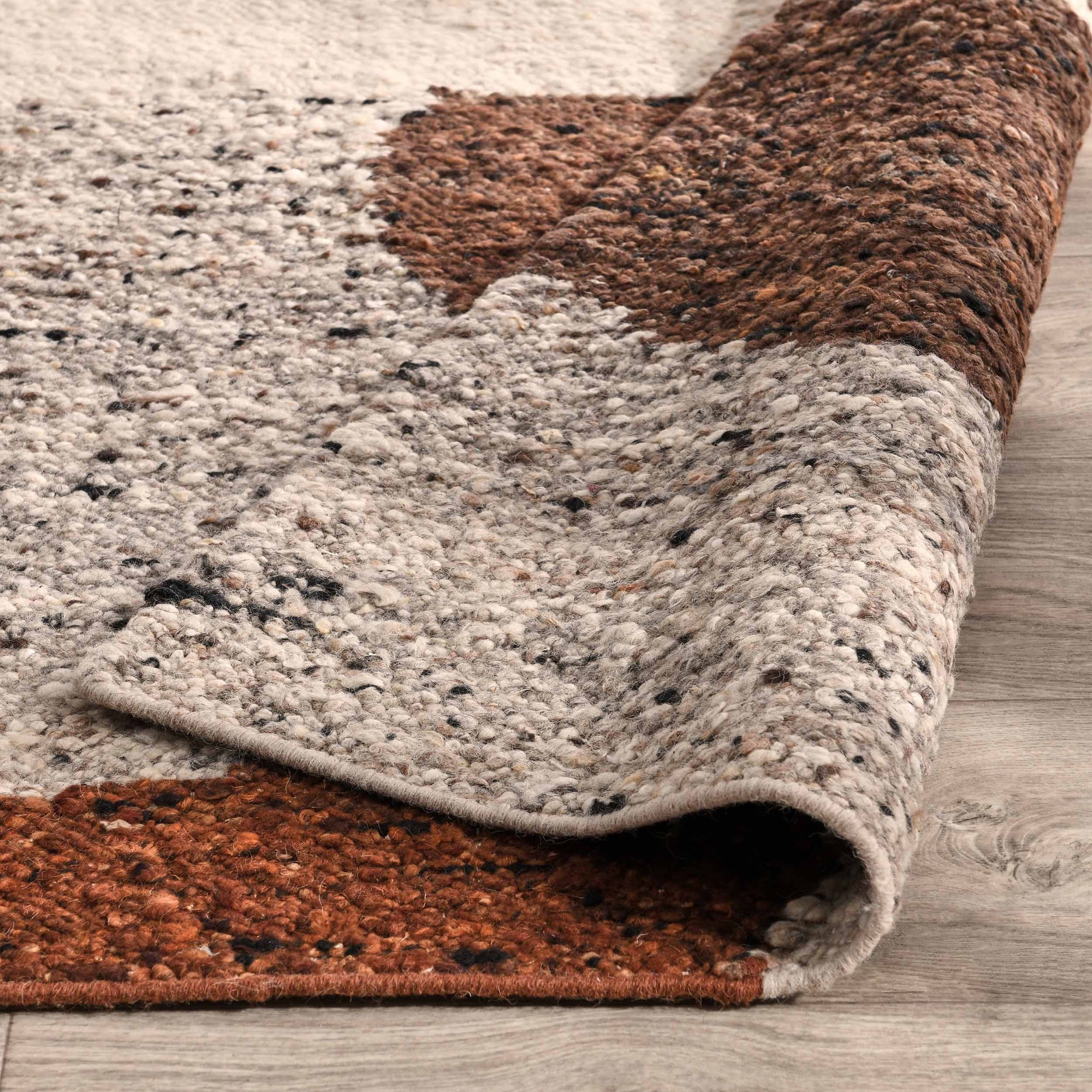 The Hesperia Rug is full of visual energy, a handwoven rug featuring a modern abstract pattern accentuated with rich texture and contrast. Hand-carded wool fabric gives this artisanal rug a lofty look and feel, while also imparting a variegated tonal effect that complements most palettes. Wool ensures lasting durability while also making this rug an eco-friendly, sustainable choice.