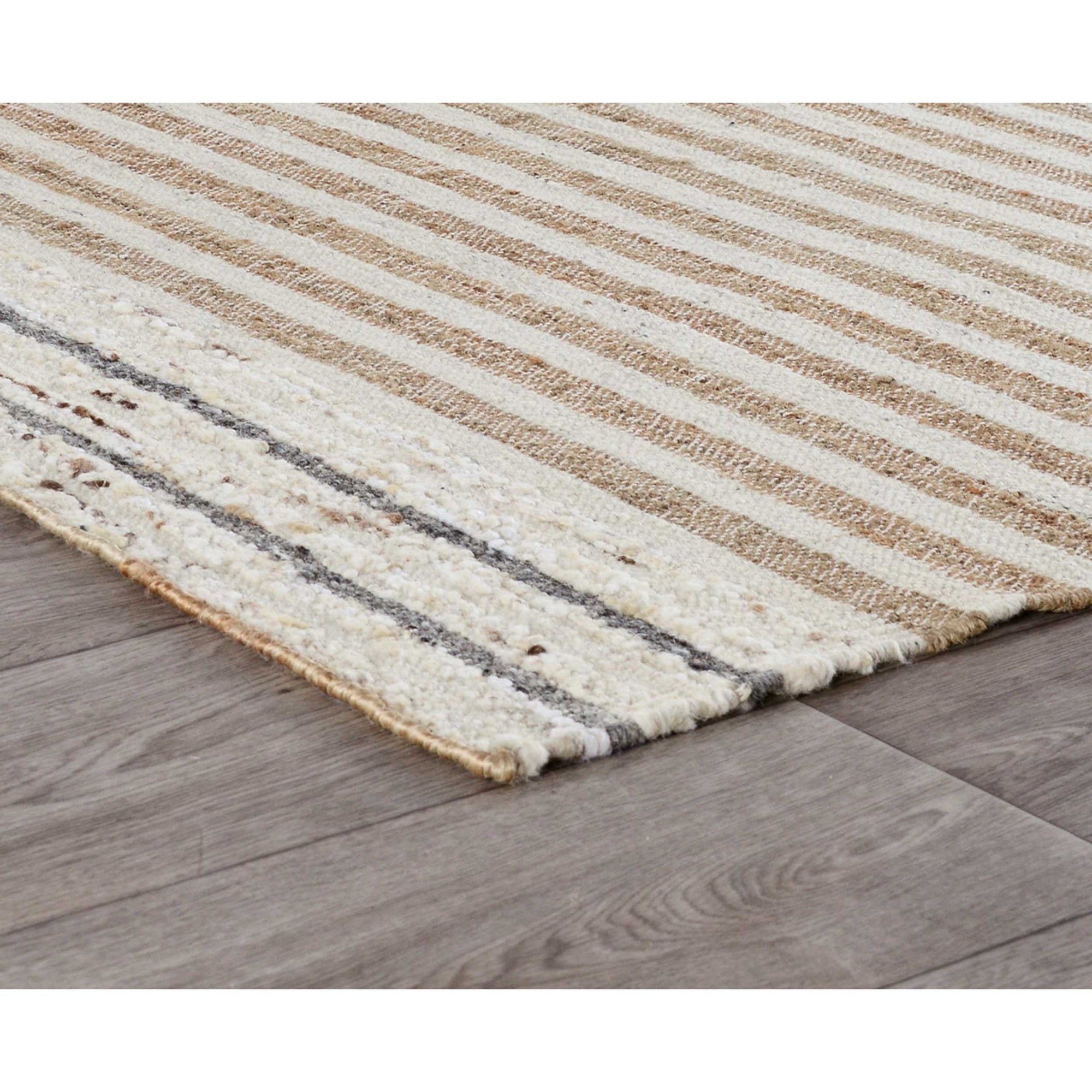 The Pego Stripe Rug celebrates artisanal craftsmanship with a casual striped pattern in earthy tones. Handwoven from a sustainable blend of jute, wool, and cotton, this flatweave rug evokes the charm of coastal villages while bringing organic warmth to any interior. Ideal for low- to medium-traffic areas, its durable construction and timeless design make it a versatile addition to living spaces.