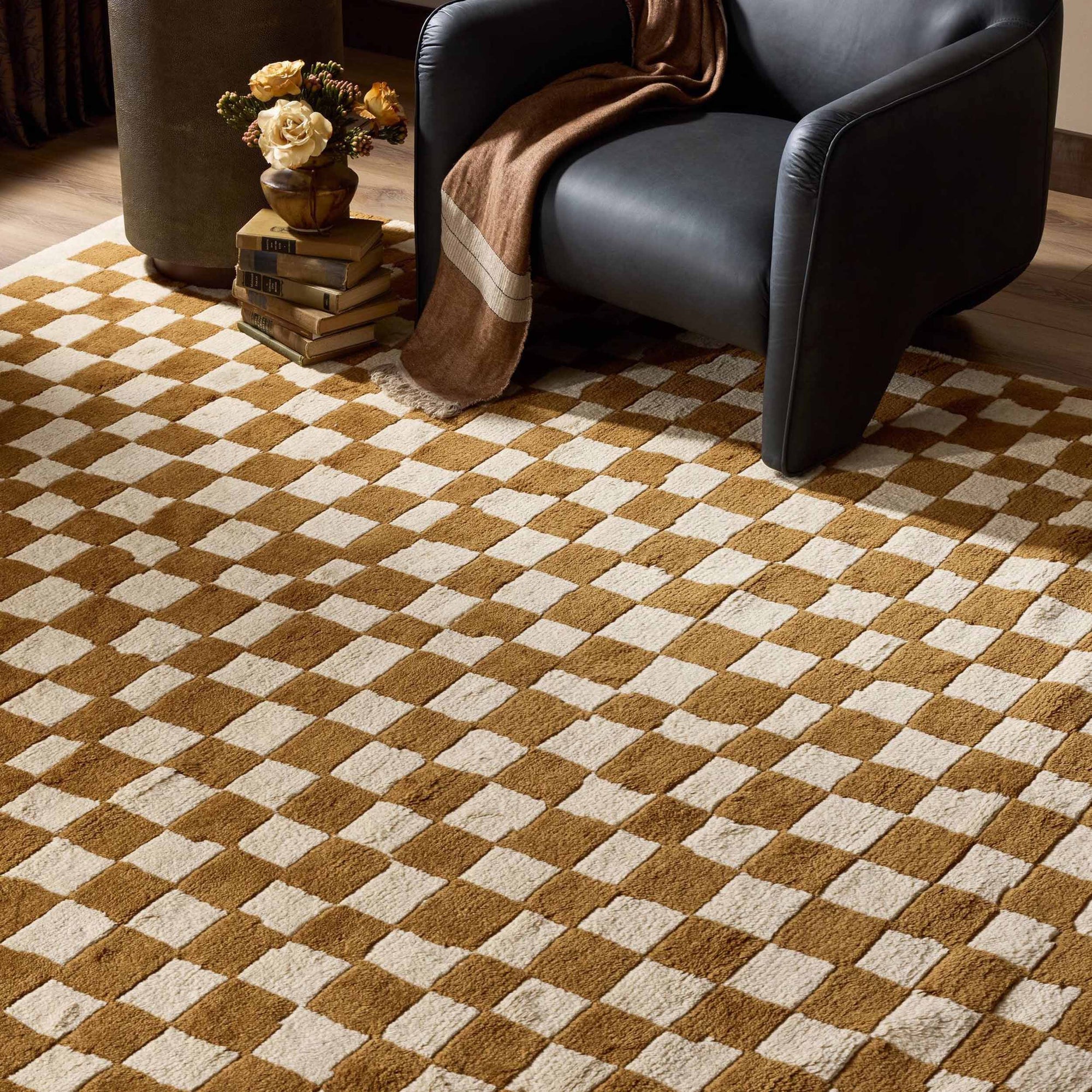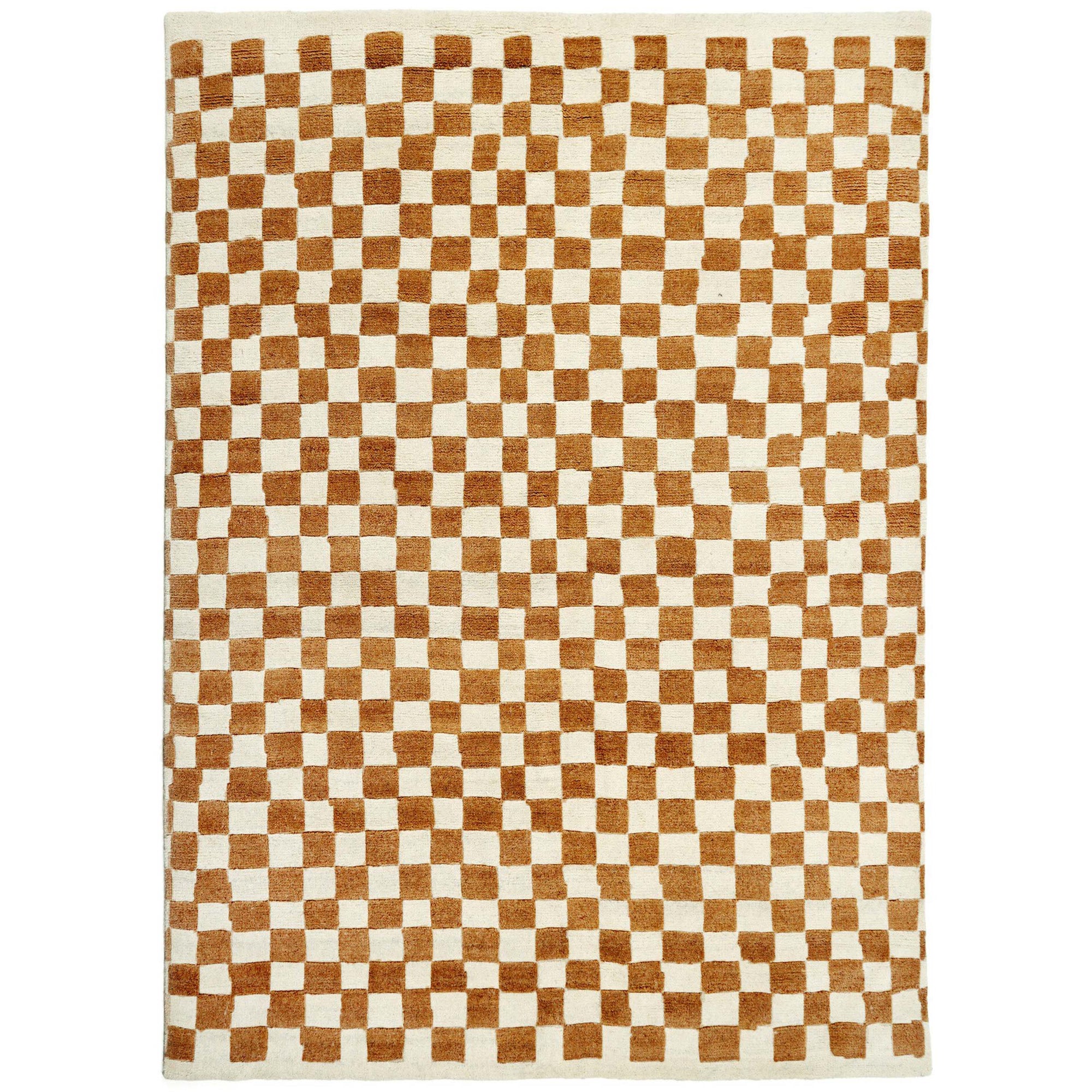 The Sinead Rug features an organic checkered pattern hand-knotted in tonal wool. Crafted using a centuries-old technique, each rug takes master weavers several weeks to complete, resulting in a durable and heirloom-quality piece designed to wear beautifully over time.