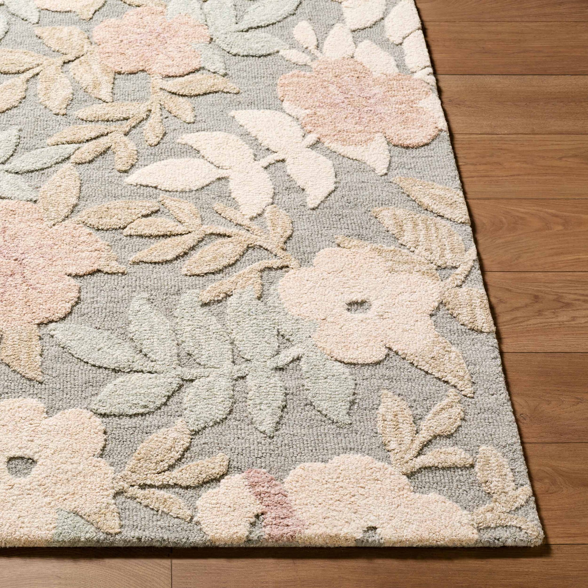The Fabian Rug brings refined style and comfort to any interior with its hand-tufted construction from 100% wool. Its medium-pile design offers soft, inviting texture underfoot, making it ideal for living rooms, bedrooms, or other high-traffic areas. Expertly crafted in India, this floral multicolor rug adds warmth, sophistication, and subtle elegance to your home. Spot clean with mild detergent to maintain its beauty and longevity.