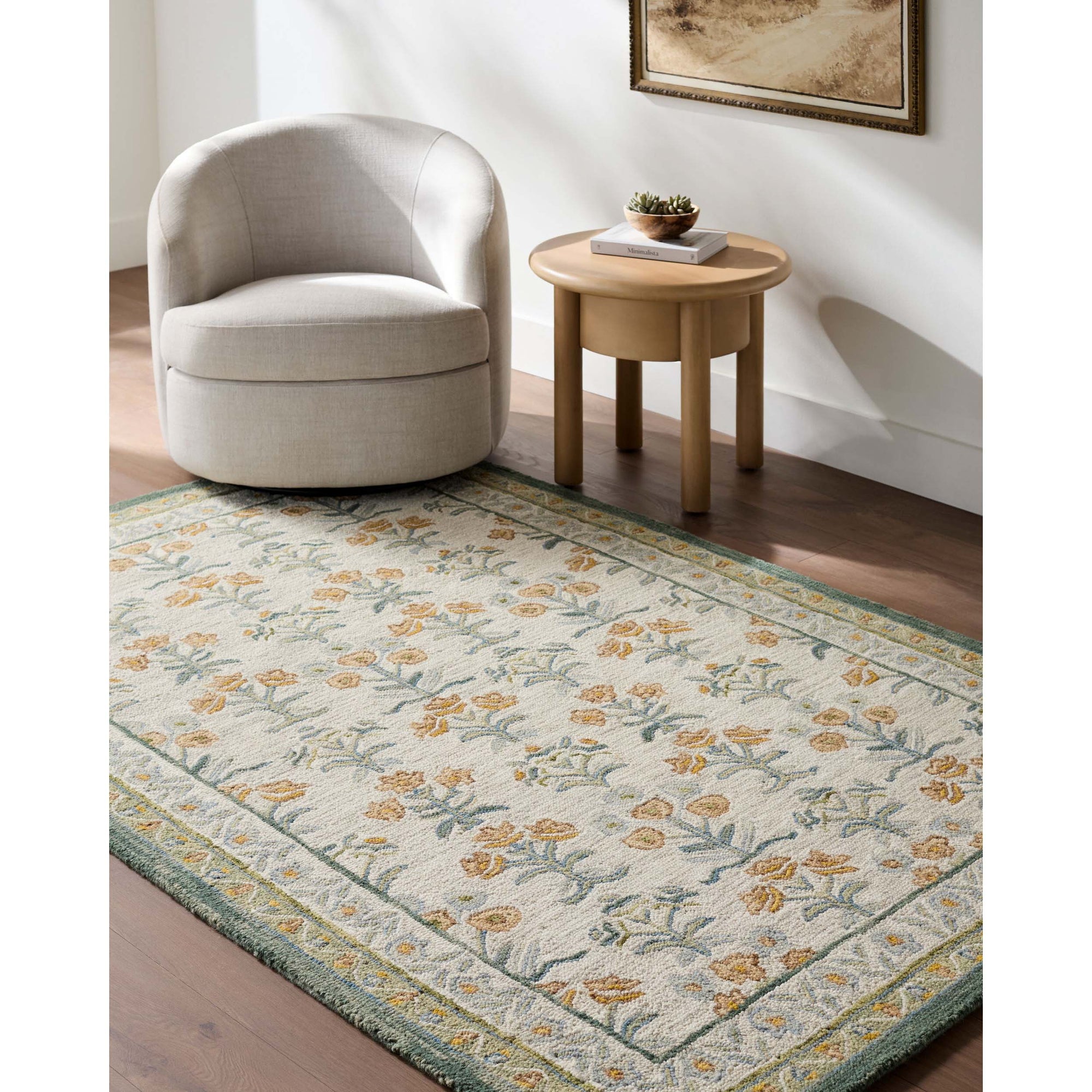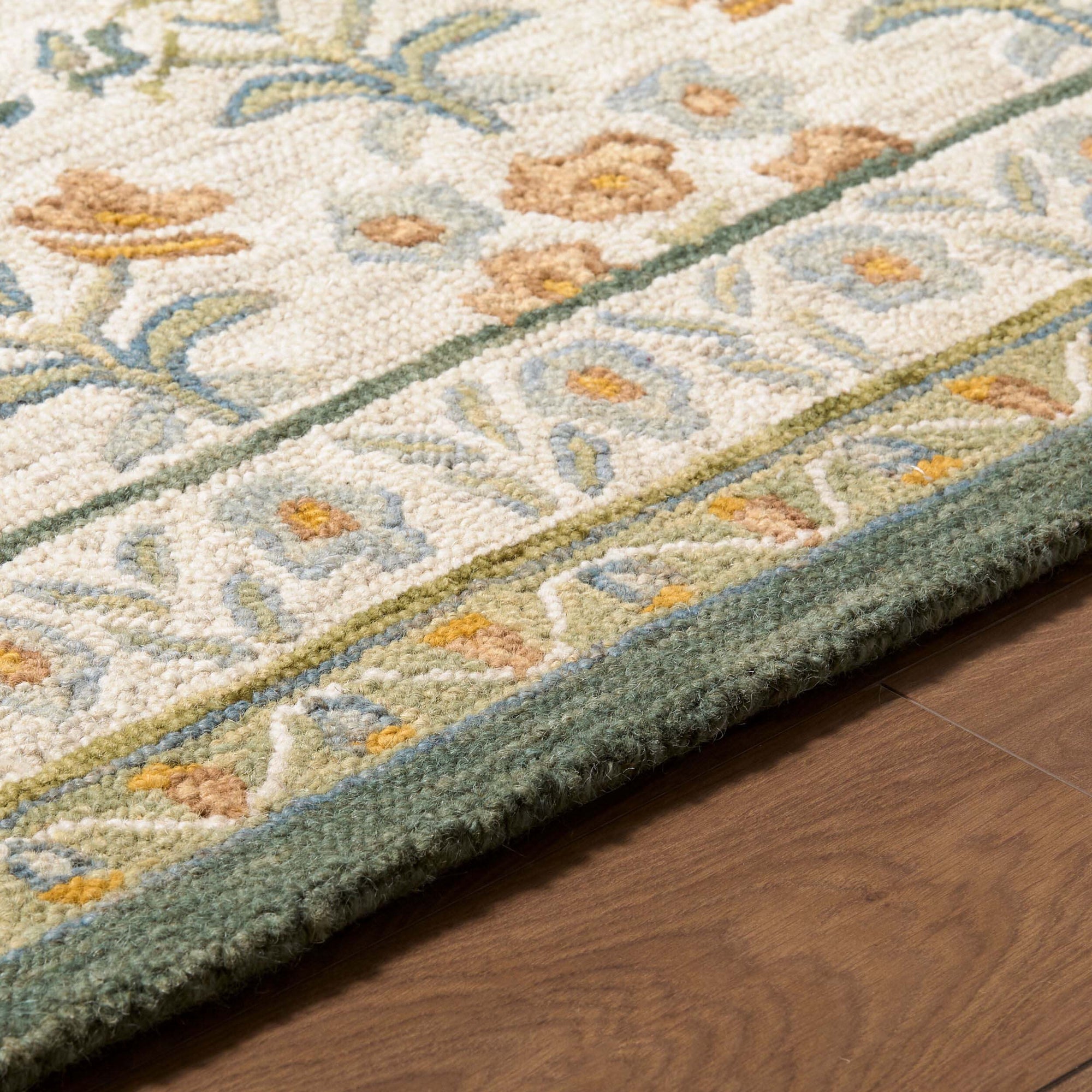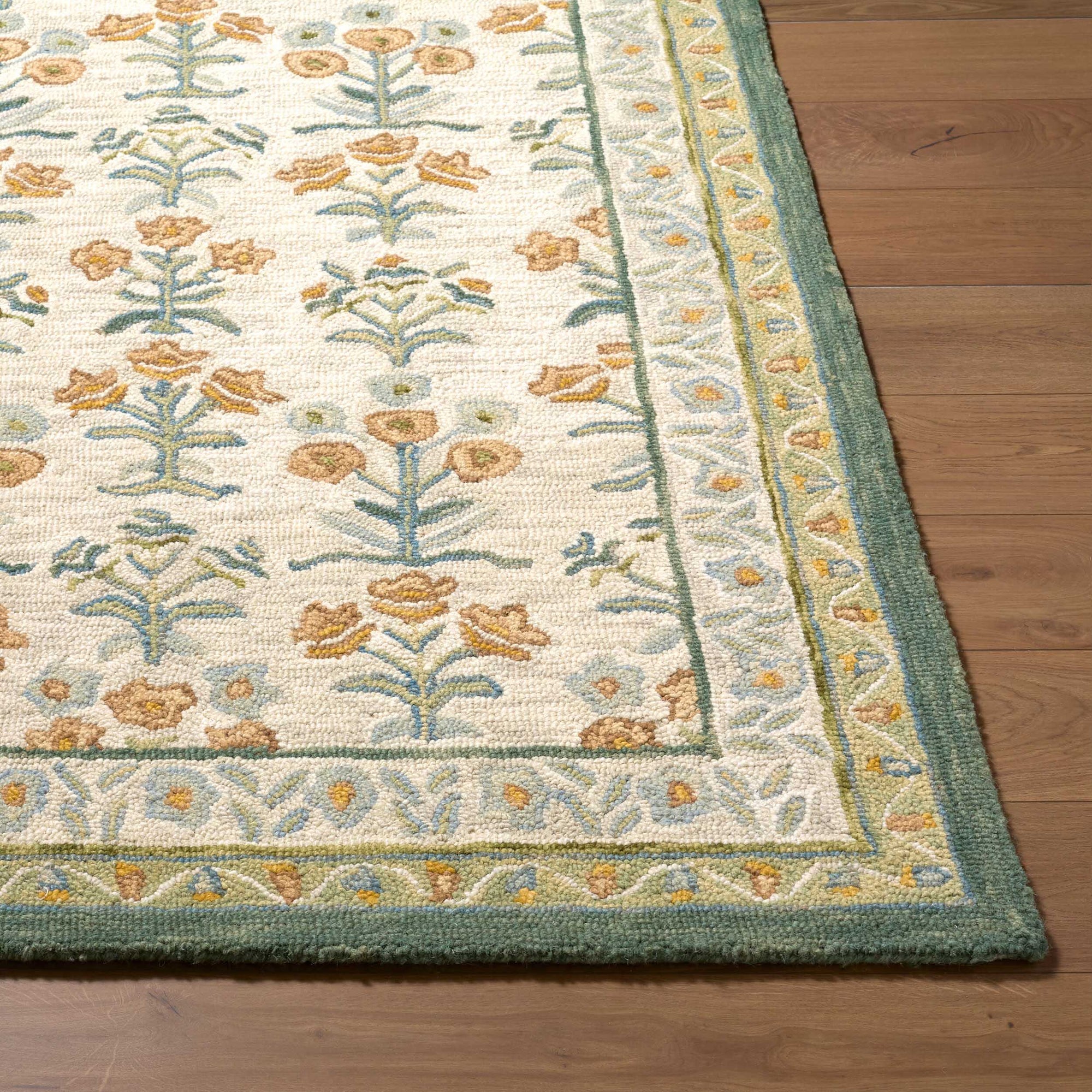 The Fairfax Rug brings timeless elegance to any space with its hand-tufted construction from 100% wool. Its low-pile design offers a soft, inviting texture underfoot while remaining durable enough for high-traffic areas. Expertly crafted in India, this floral multicolor rug adds warmth and character to living rooms, bedrooms, or offices. Spot clean with water only to maintain its beauty and texture.