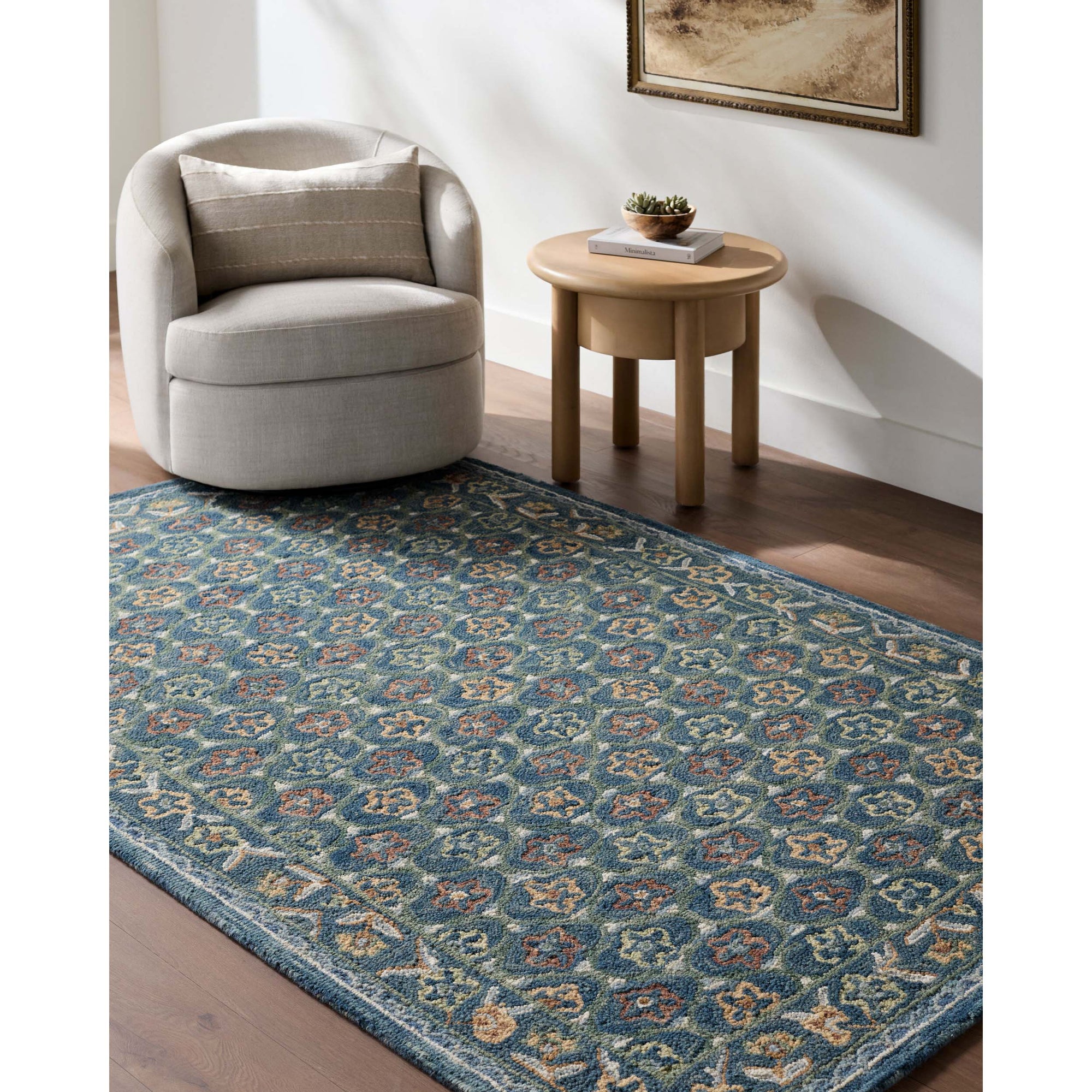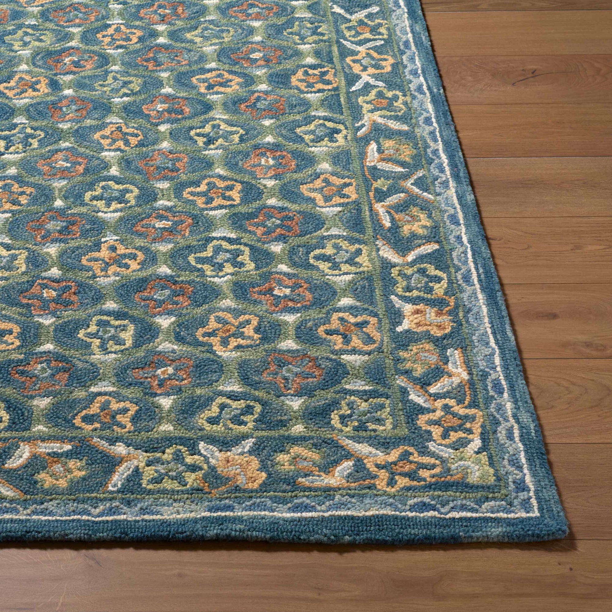 The Fairfax Rug brings timeless elegance to any space with its hand-tufted construction from 100% wool. Its low-pile design offers a soft, inviting texture underfoot while remaining durable enough for high-traffic areas. Expertly crafted in India, this floral multicolor rug adds warmth and character to living rooms, bedrooms, or offices. Spot clean with water only to maintain its beauty and texture.