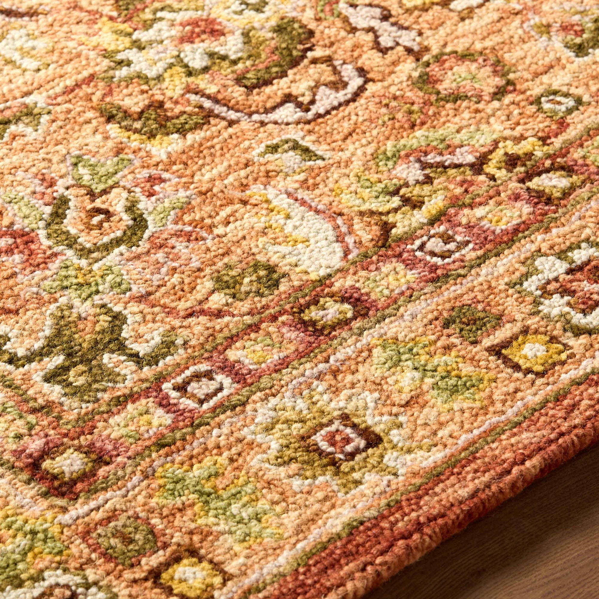 The Fairfax Rug brings timeless elegance to any space with its hand-tufted construction from 100% wool. Its low-pile design offers a soft, inviting texture underfoot while remaining durable enough for high-traffic areas. Expertly crafted in India, this floral multicolor rug adds warmth and character to living rooms, bedrooms, or offices. Spot clean with water only to maintain its beauty and texture.