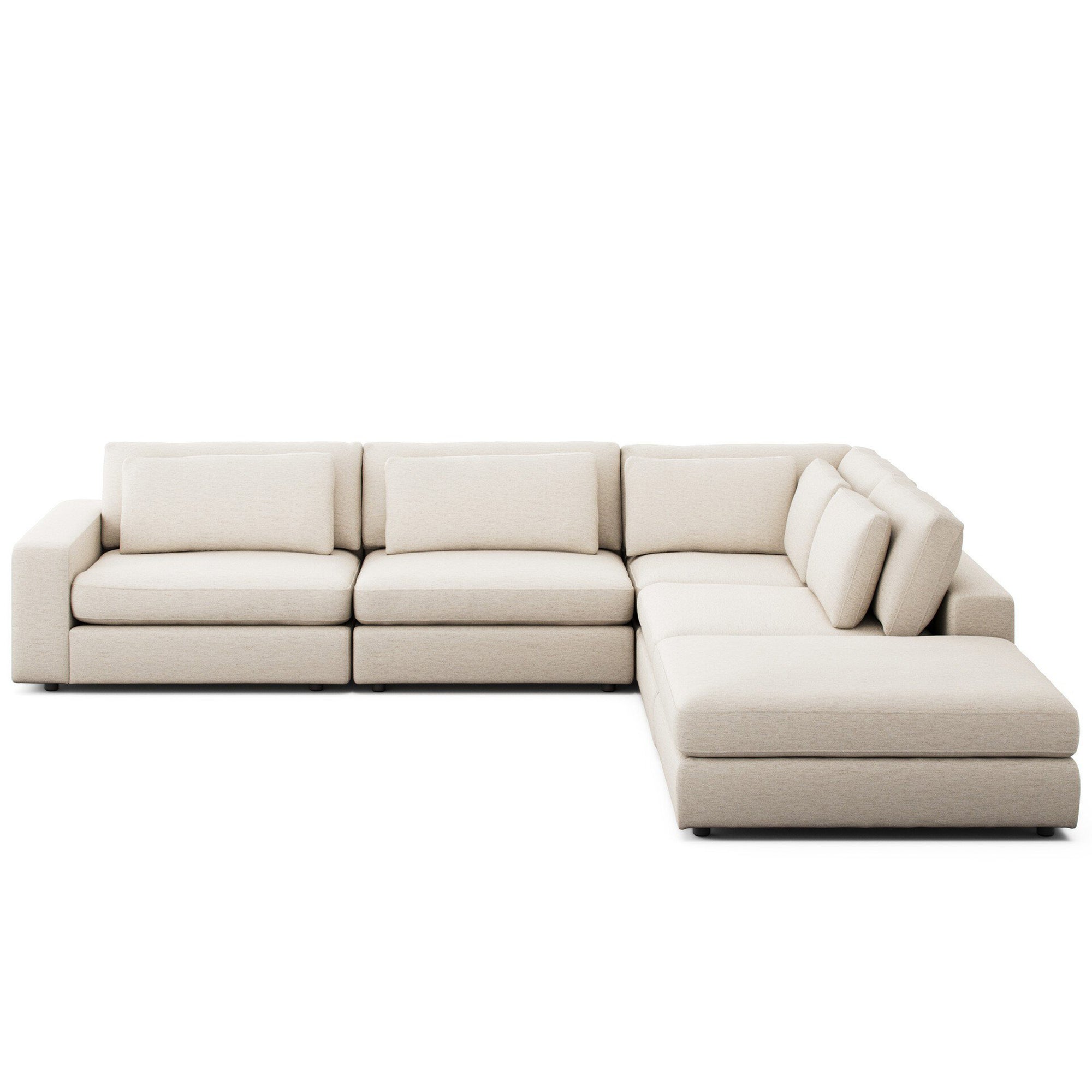 Bloor 4 Piece Sectional w/ Ottoman, Nomad Snow by Four Hands