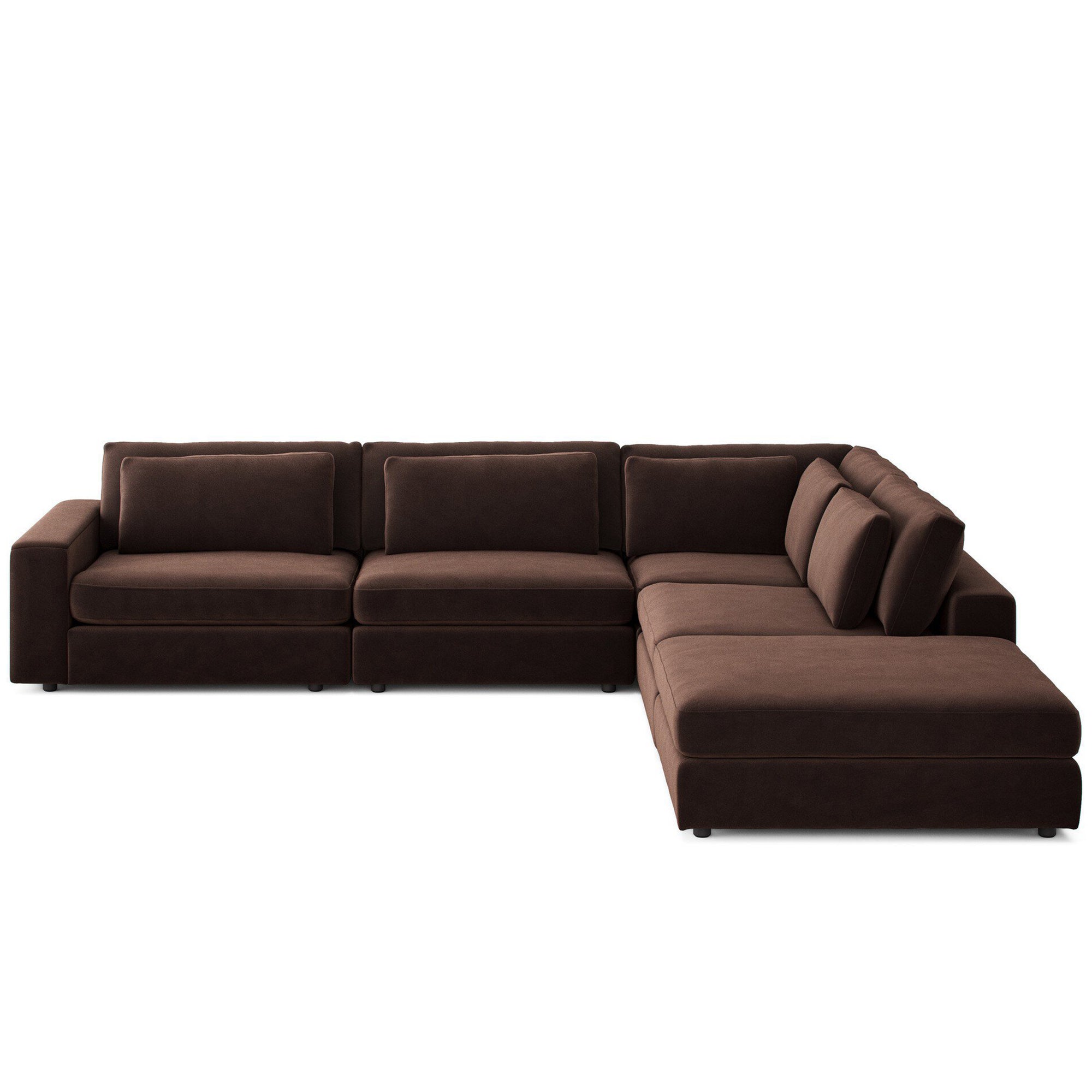 Bloor 4 Piece Sectional w/ Ottoman, Surrey Cocoa by Four Hands