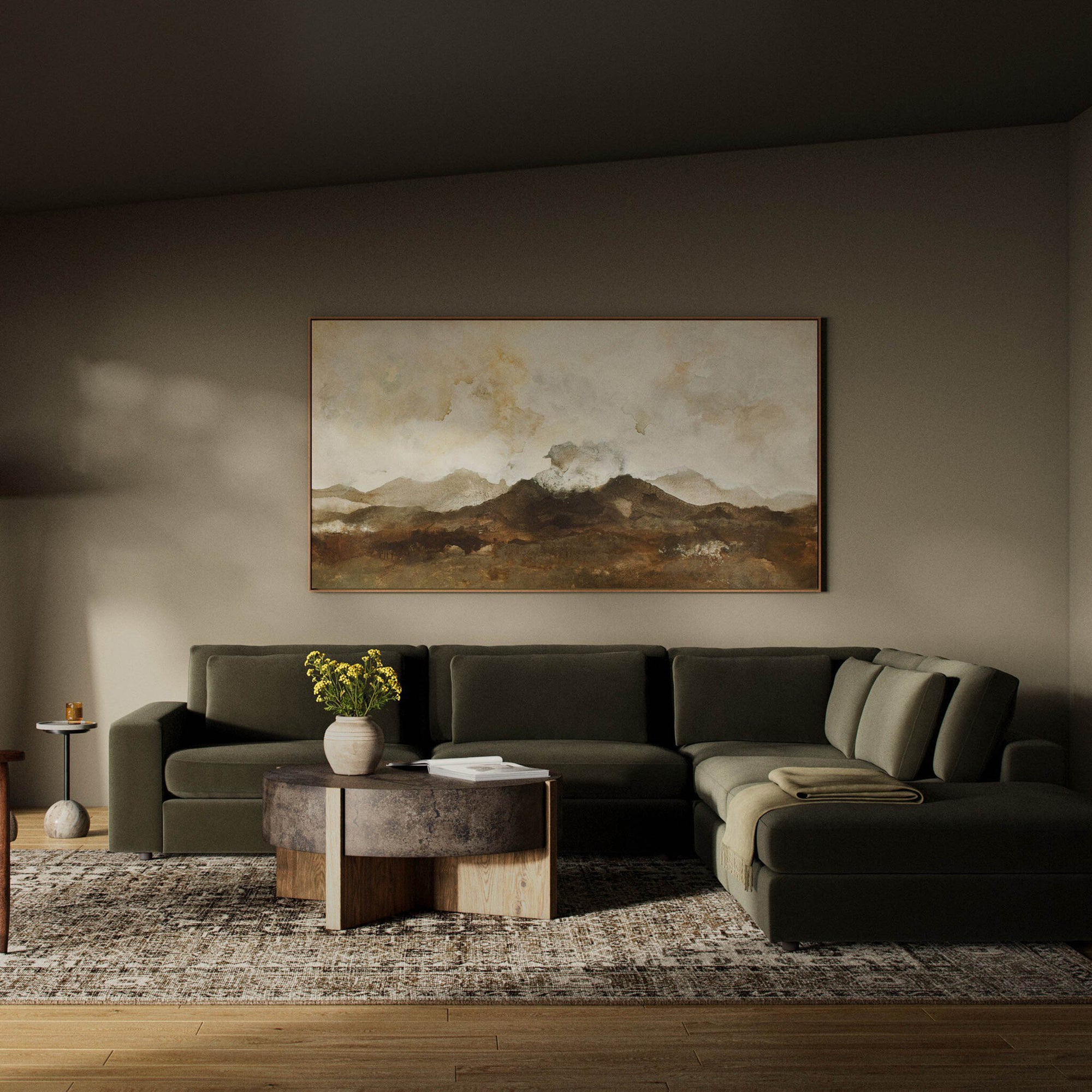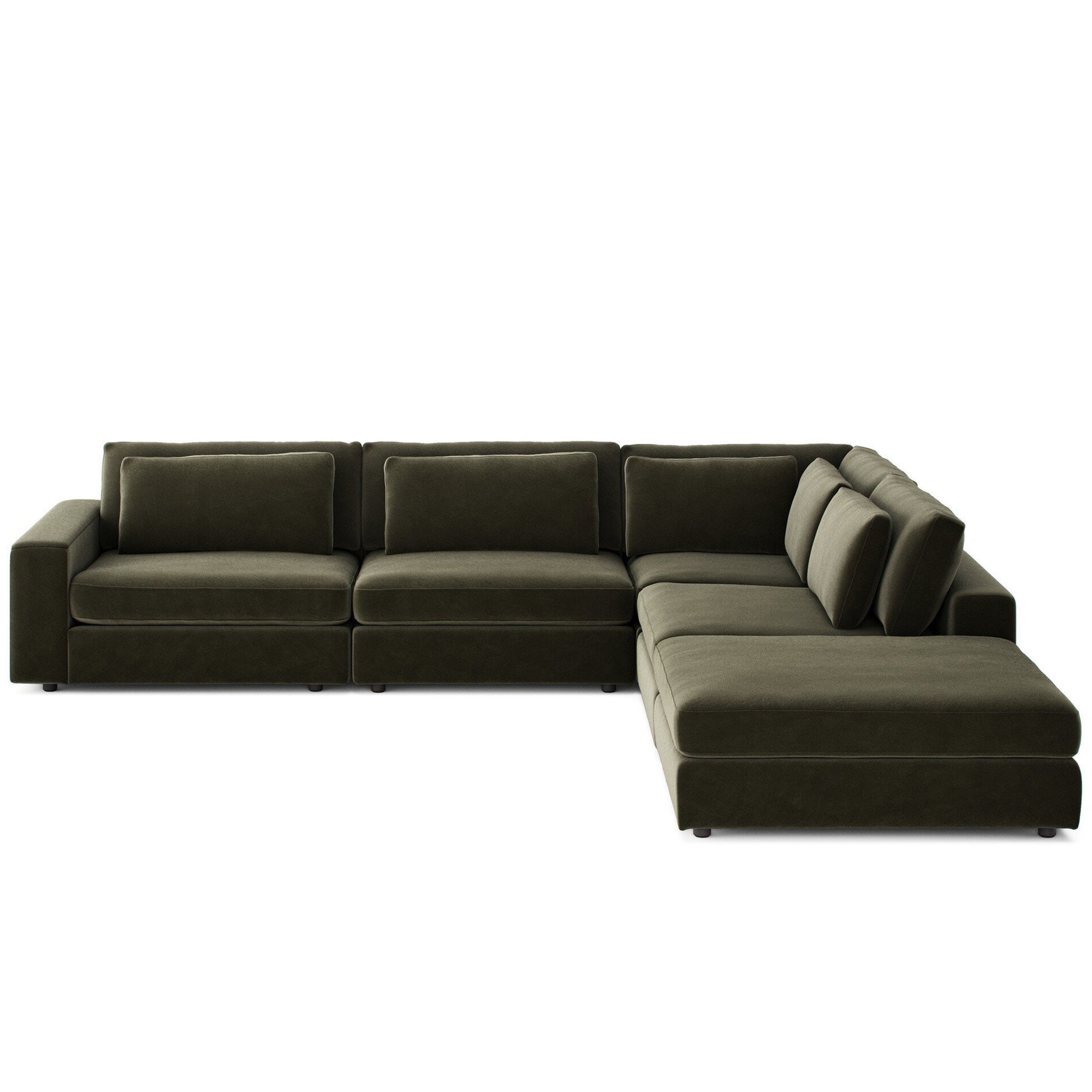 Bloor 4 Piece Sectional w/ Ottoman, Surrey Olive by Four Hands